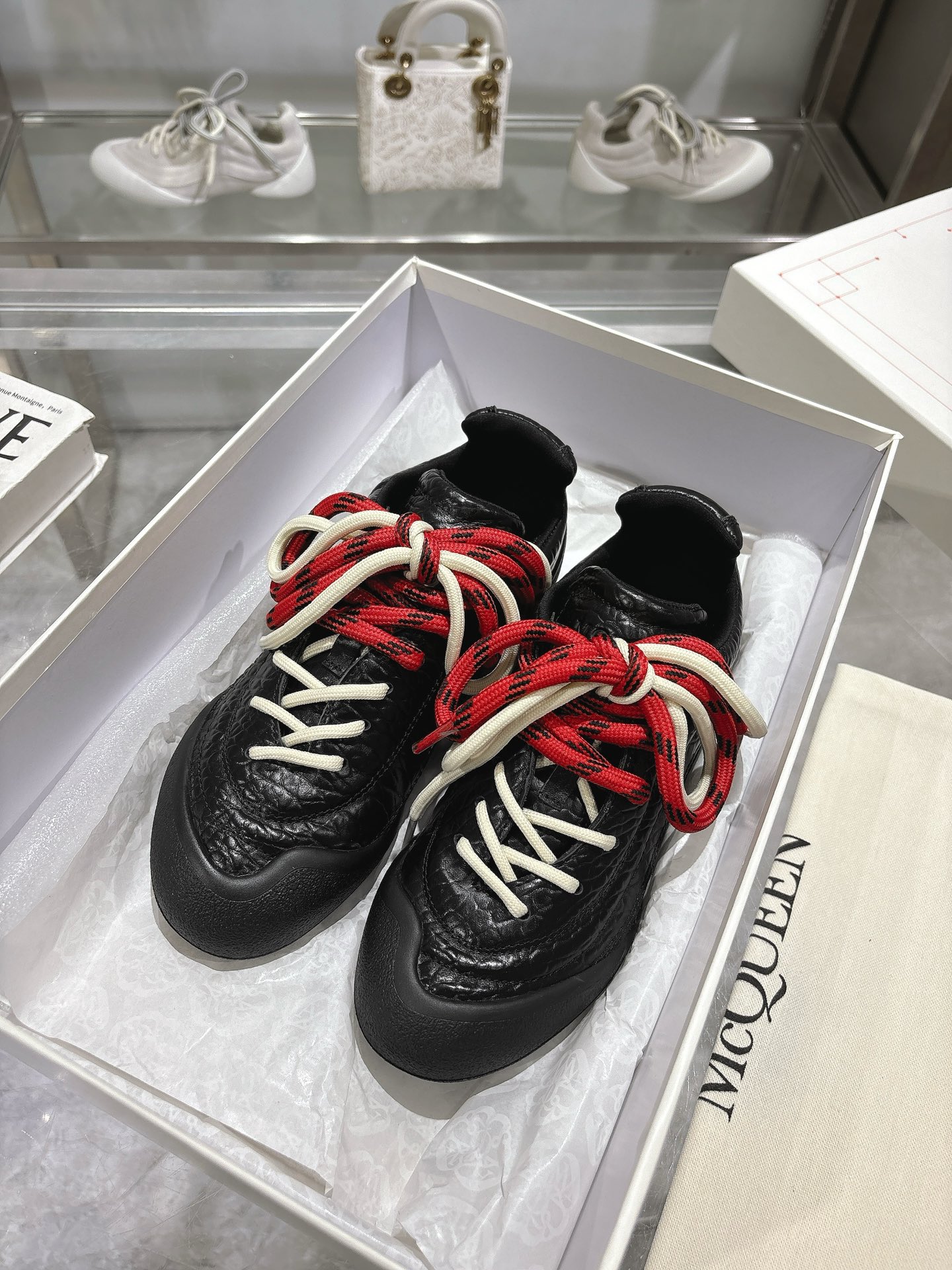 这款鞋子是AAAAA 1:1 质量 (非常棒). 使用了和原版一模一样的材料. 商标部分也保持了和亚历山大·麦昆/McQueen一样. 图片拍摄是实物鞋子拍摄, 您所收到的实物保证和我们图片一模一样.