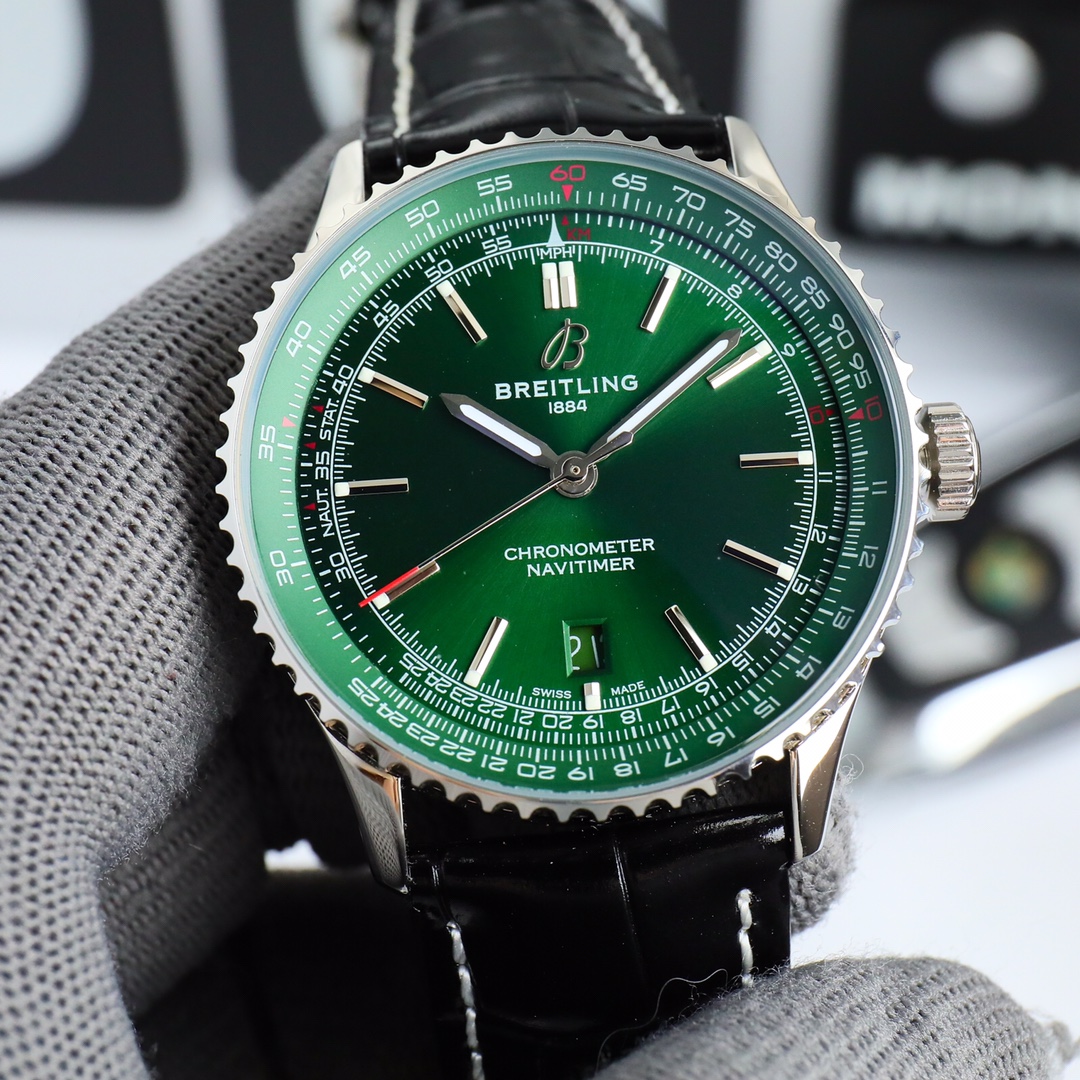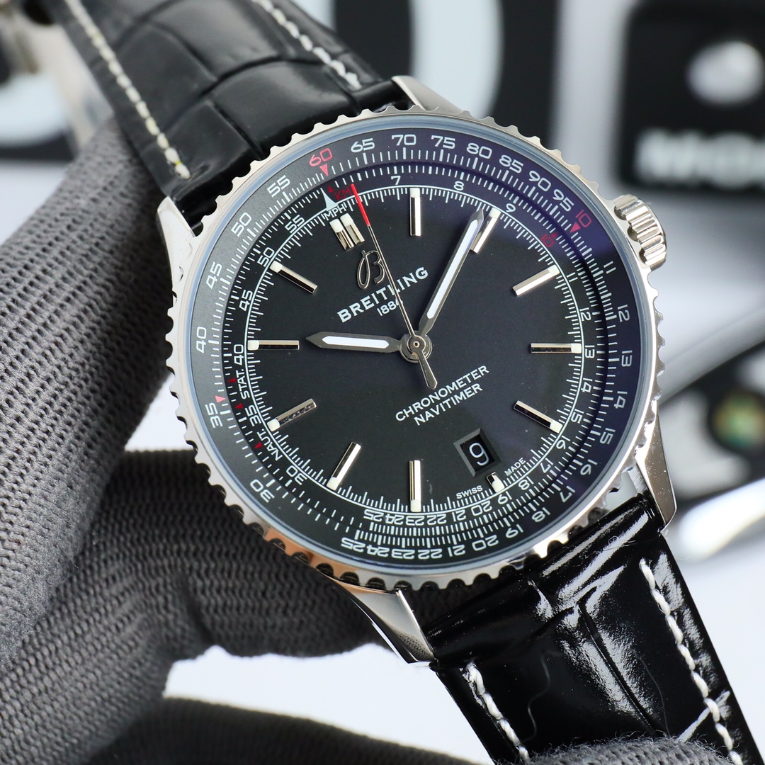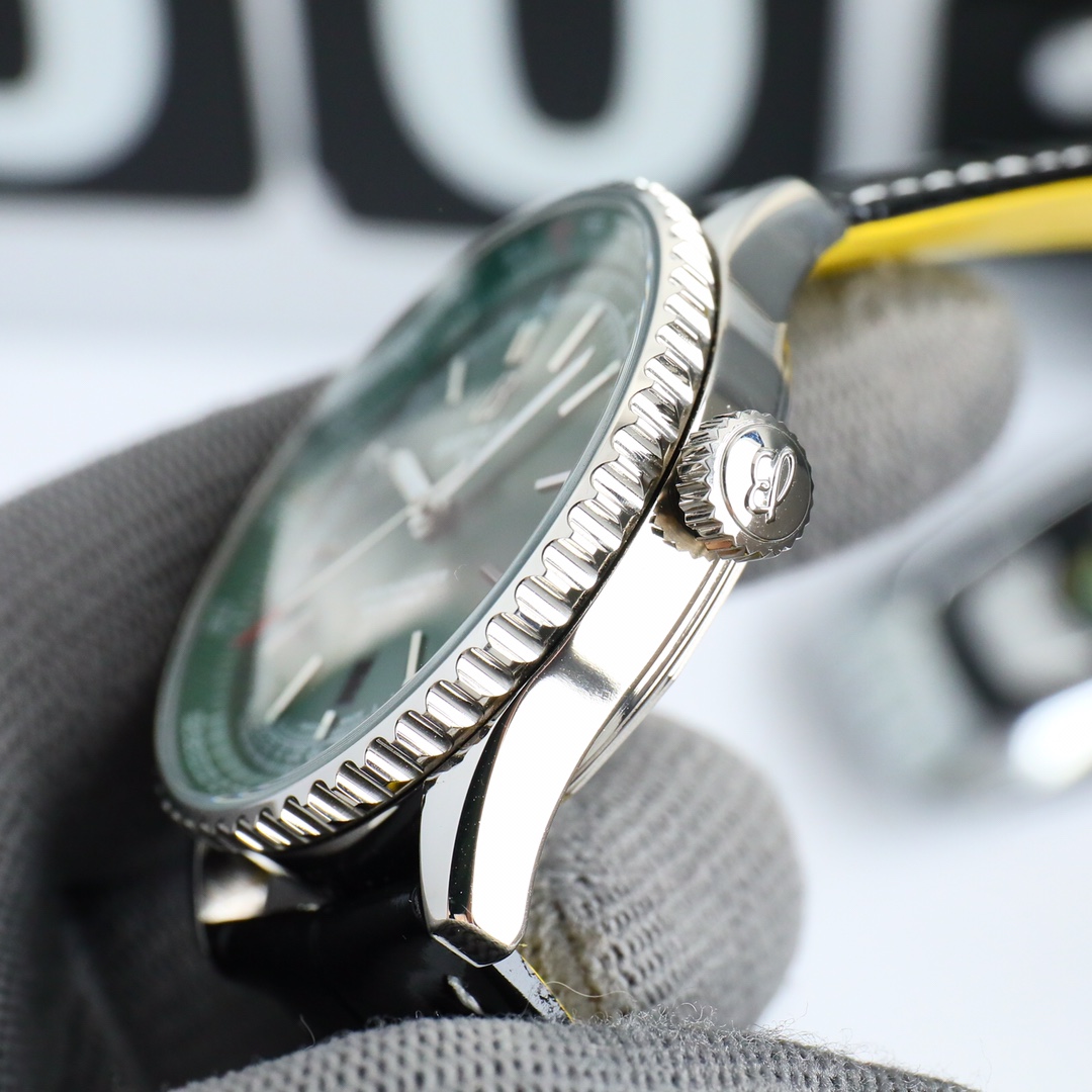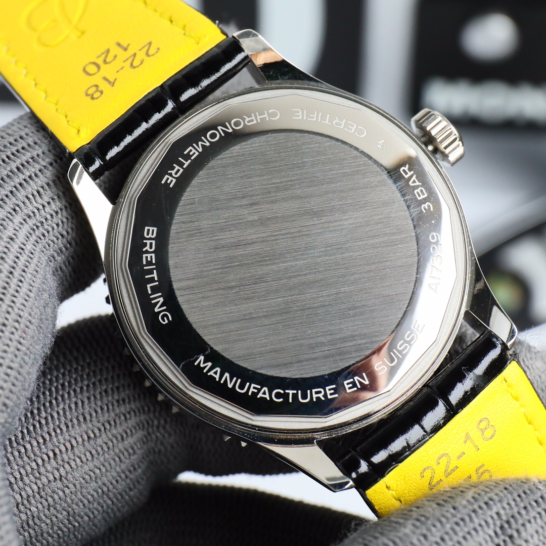 这款手表是AAAAA 1:1 质量 (非常棒). 使用了和原版一模一样的材料. 商标部分也保持了和Breitling一样. 图片拍摄是实物手表拍摄, 您所收到的实物保证和我们图片一模一样.