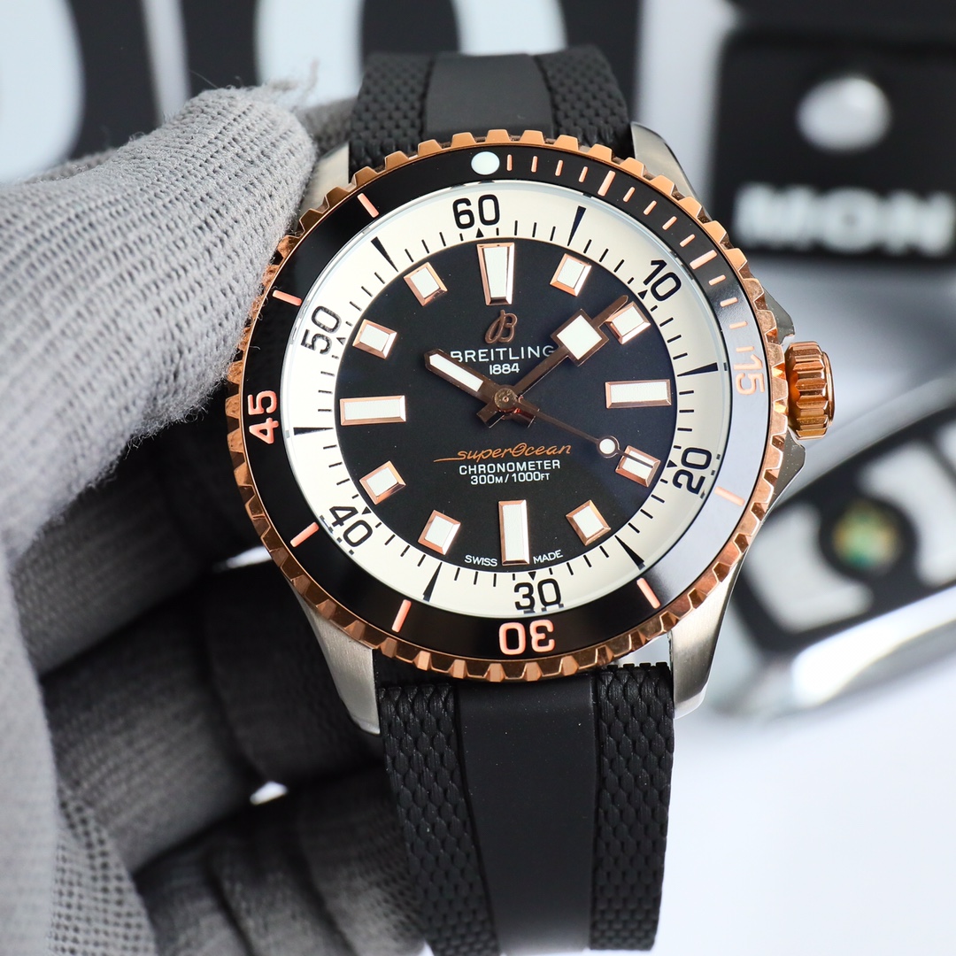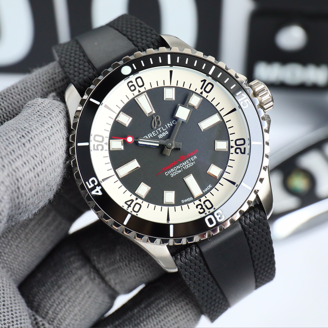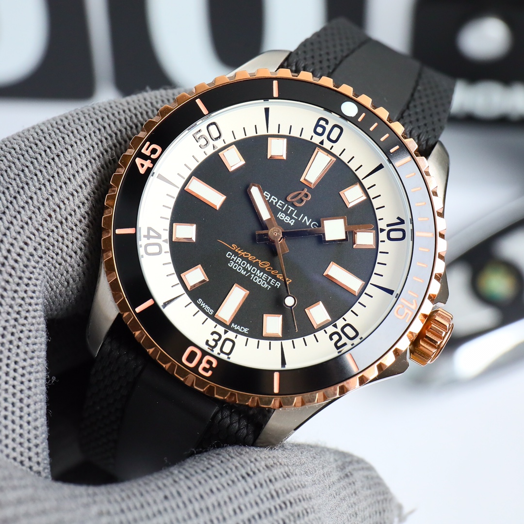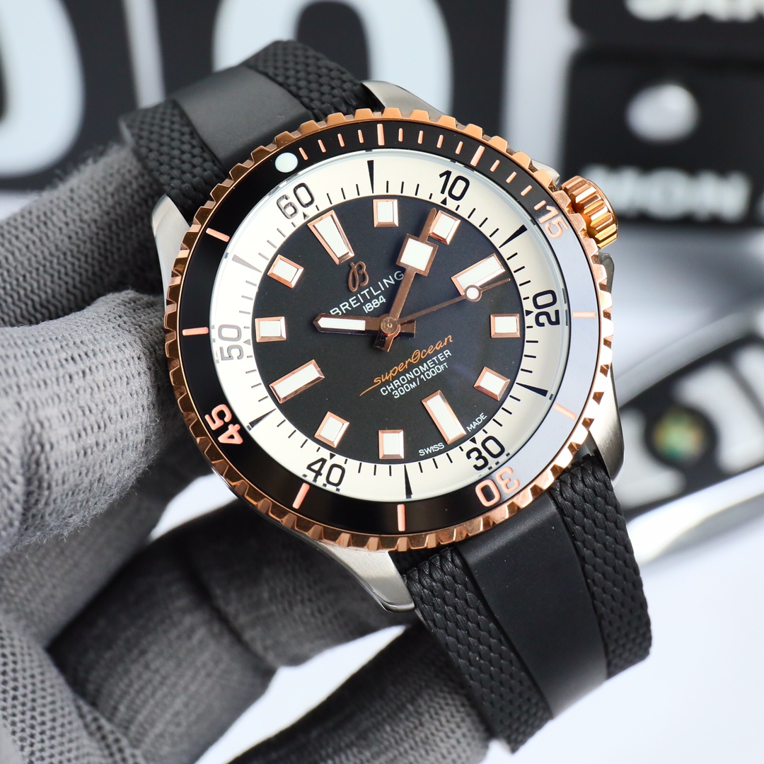 这款手表是AAAAA 1:1 质量 (非常棒). 使用了和原版一模一样的材料. 商标部分也保持了和Breitling一样. 图片拍摄是实物手表拍摄, 您所收到的实物保证和我们图片一模一样.