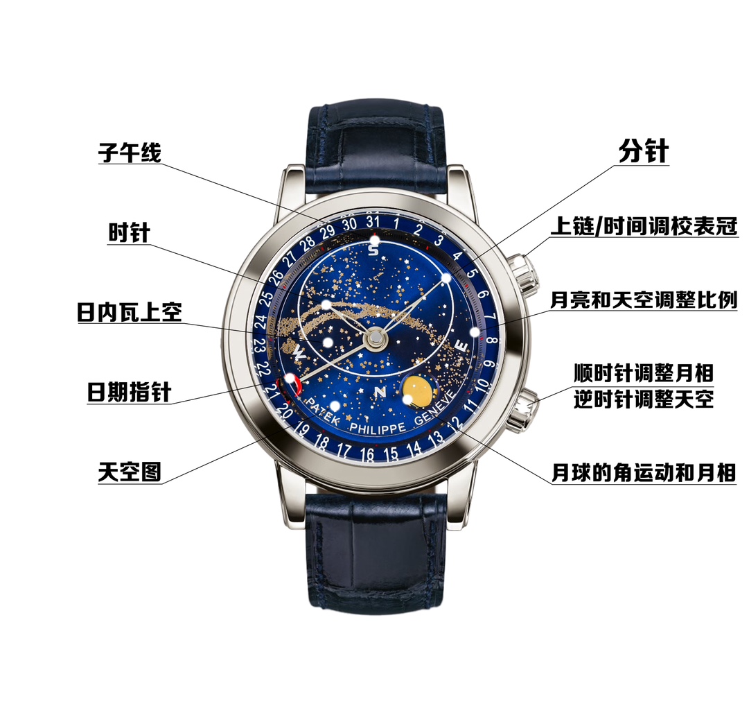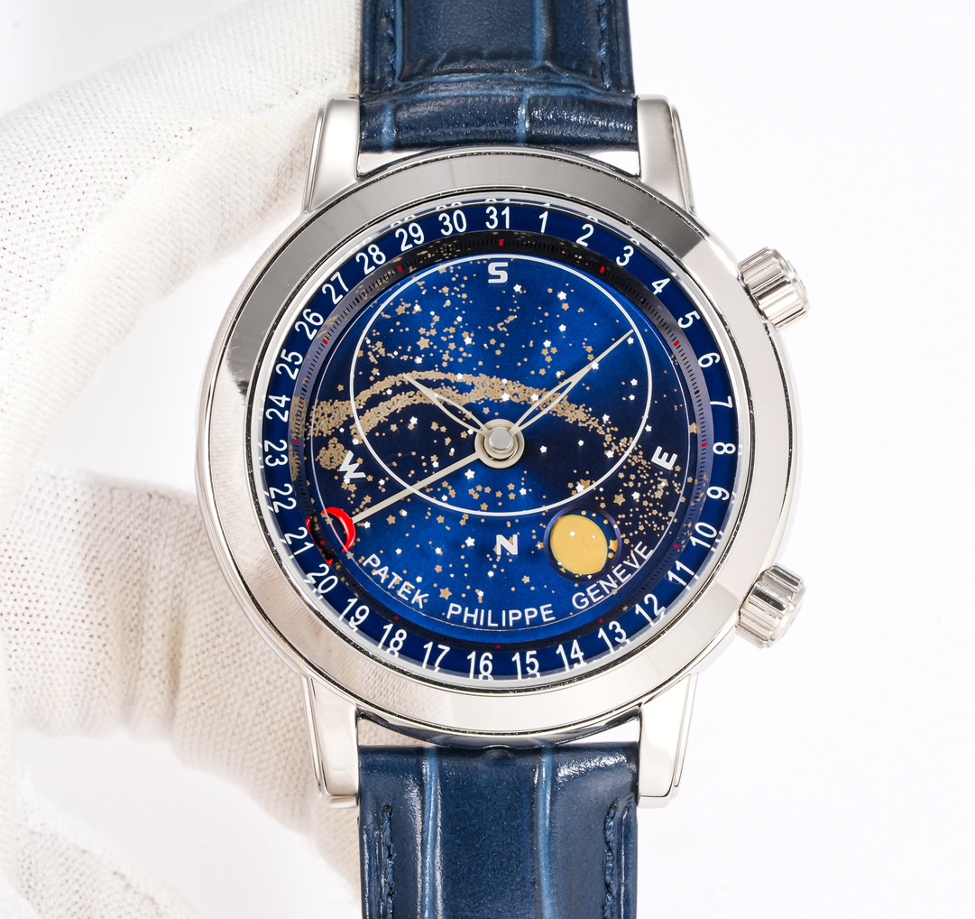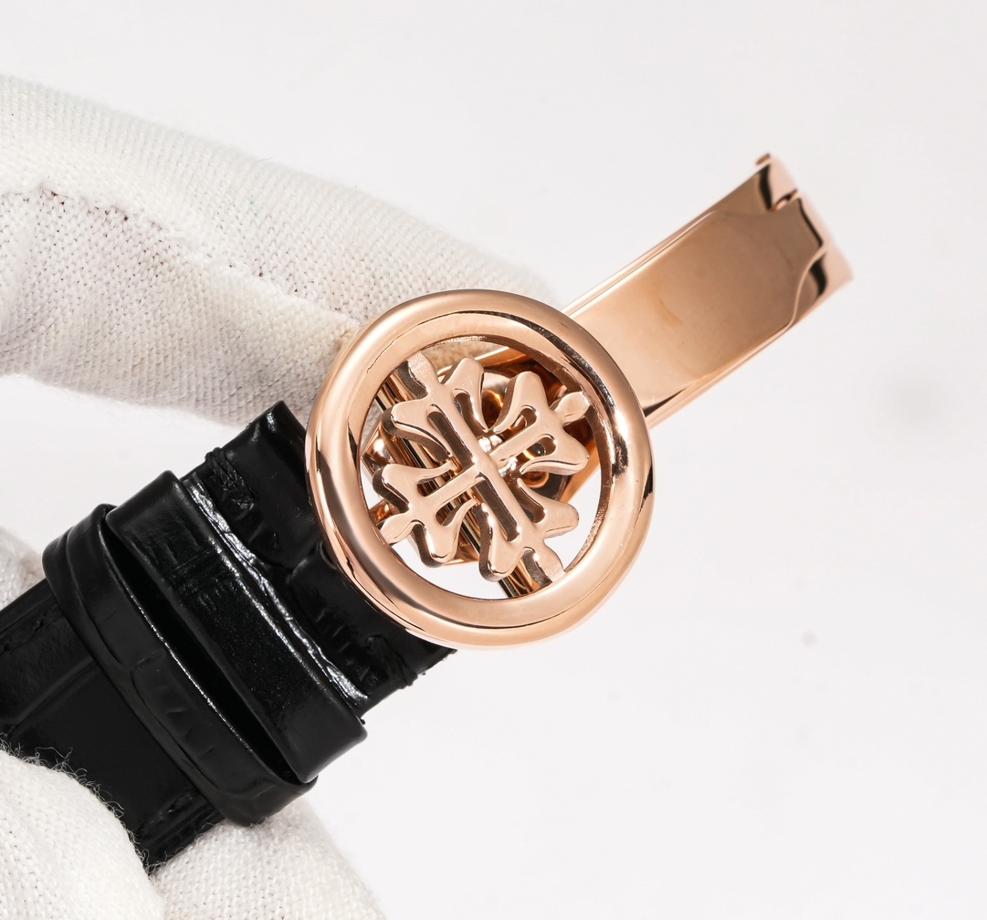 这款手表是AAAAA 1:1 质量 (非常棒). 使用了和原版一模一样的材料. 商标部分也保持了和百达翡丽/Patek Philippe一样. 图片拍摄是实物手表拍摄, 您所收到的实物保证和我们图片一模一样.
