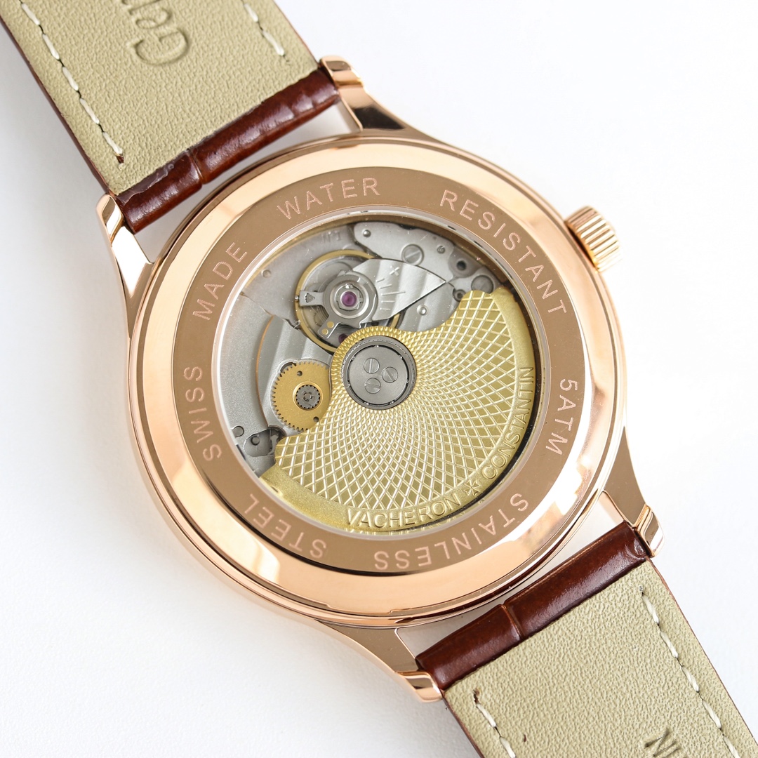 这款手表是AAAAA 1:1 质量 (非常棒). 使用了和原版一模一样的材料. 商标部分也保持了和江诗丹顿/Vacheron Constantin一样. 图片拍摄是实物手表拍摄, 您所收到的实物保证和我们图片一模一样.