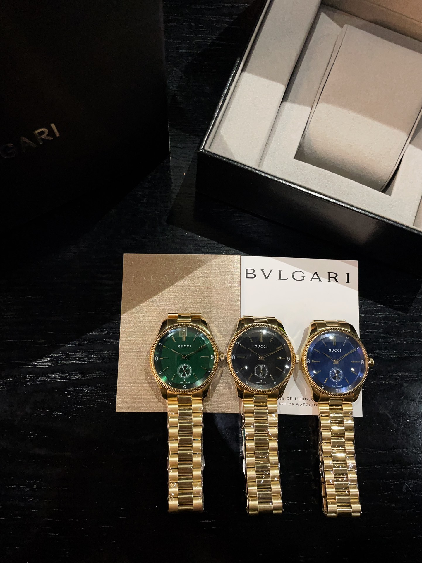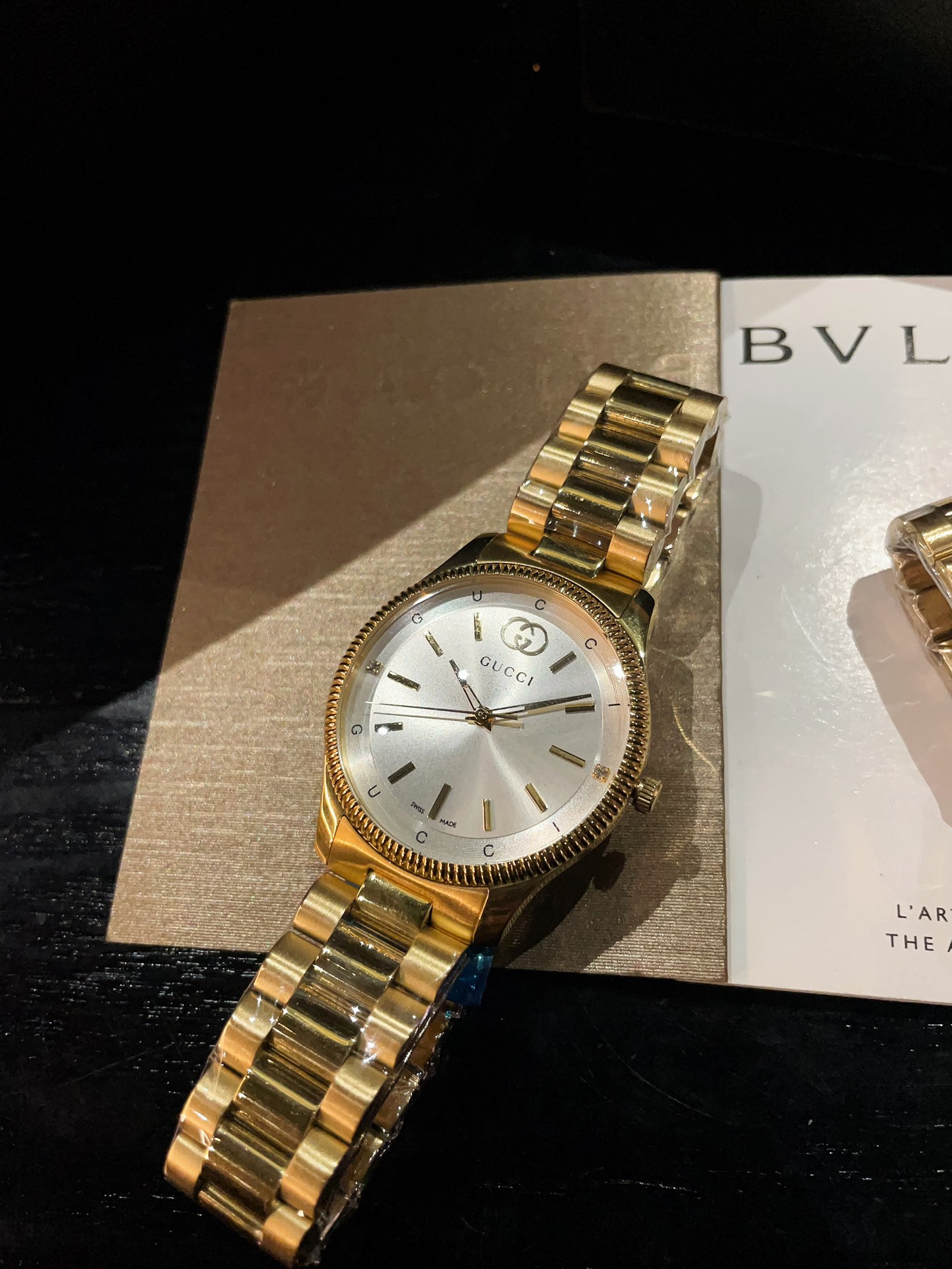 这款手表是AAAAA 1:1 质量 (非常棒). 使用了和原版一模一样的材料. 商标部分也保持了和古奇/Gucci一样. 图片拍摄是实物手表拍摄, 您所收到的实物保证和我们图片一模一样.