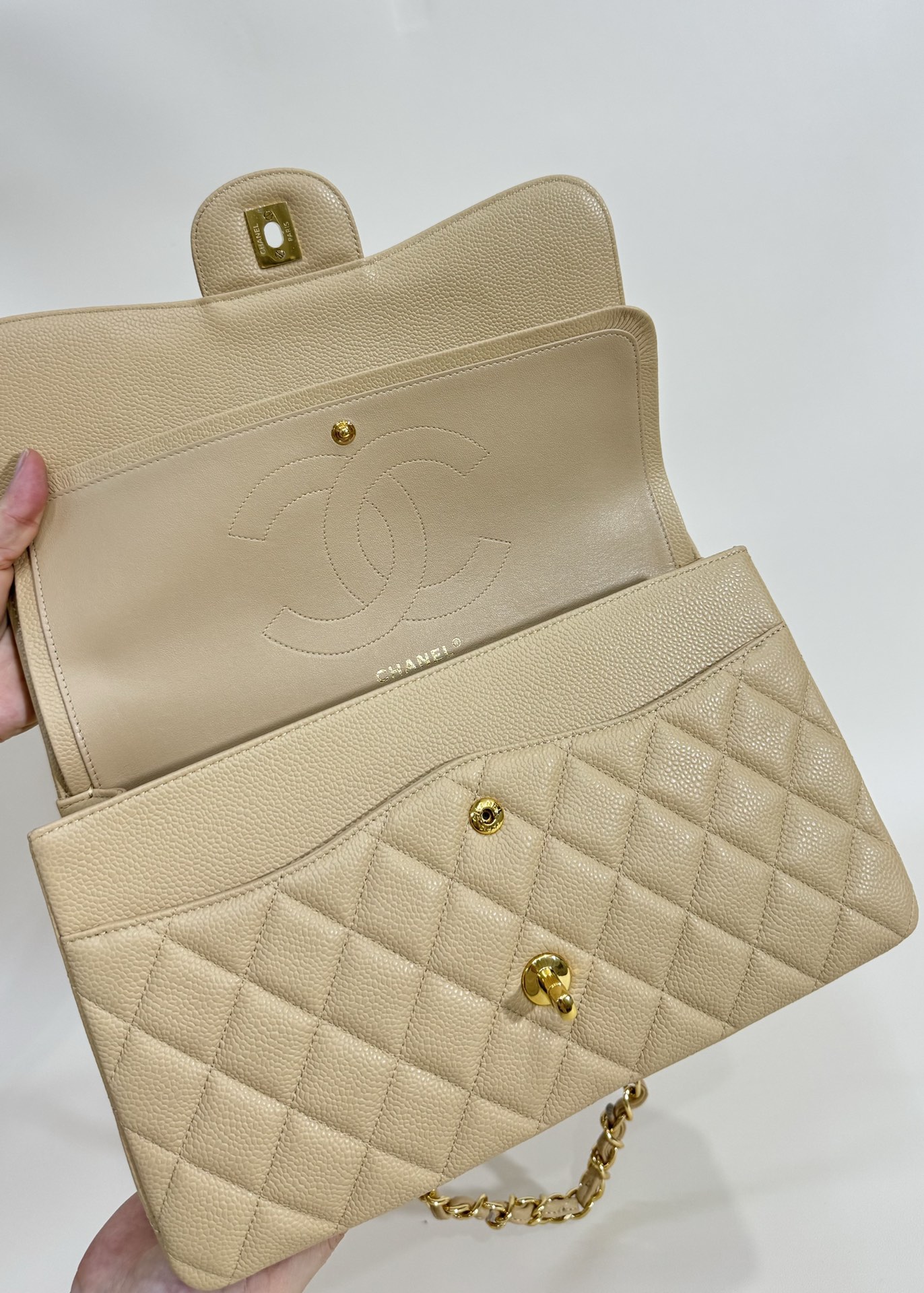 这款包包是AAAAA 1:1 质量 (非常棒). 使用了和原版一模一样的材料. 商标部分也保持了和香奈儿/Chanel一样. 图片拍摄是实物包包拍摄, 您所收到的实物保证和我们图片一模一样.