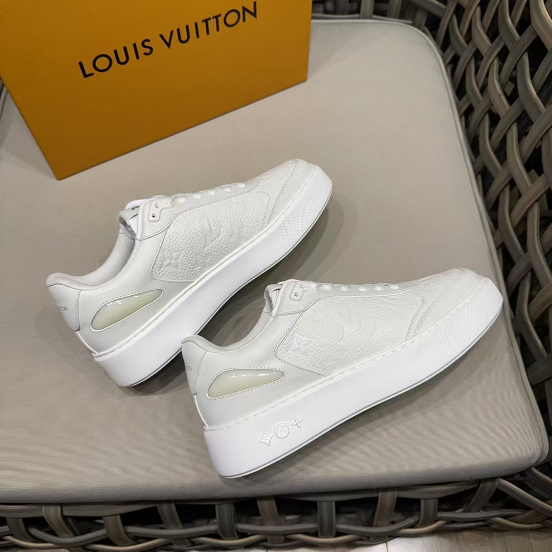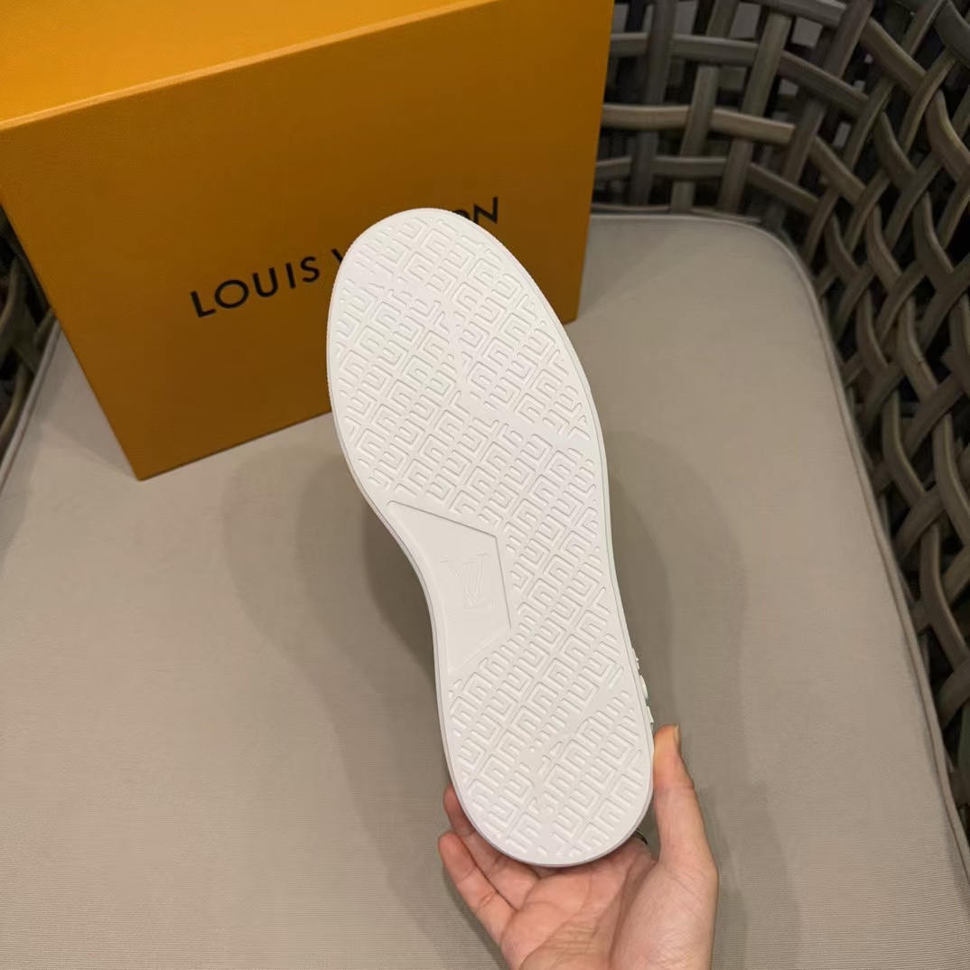 这款鞋子是AAAAA 1:1 质量 (非常棒). 使用了和原版一模一样的材料. 商标部分也保持了和路易威登/Louis Vuitton一样. 图片拍摄是实物鞋子拍摄, 您所收到的实物保证和我们图片一模一样.