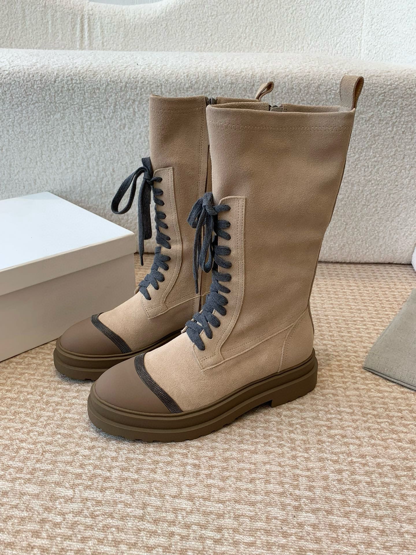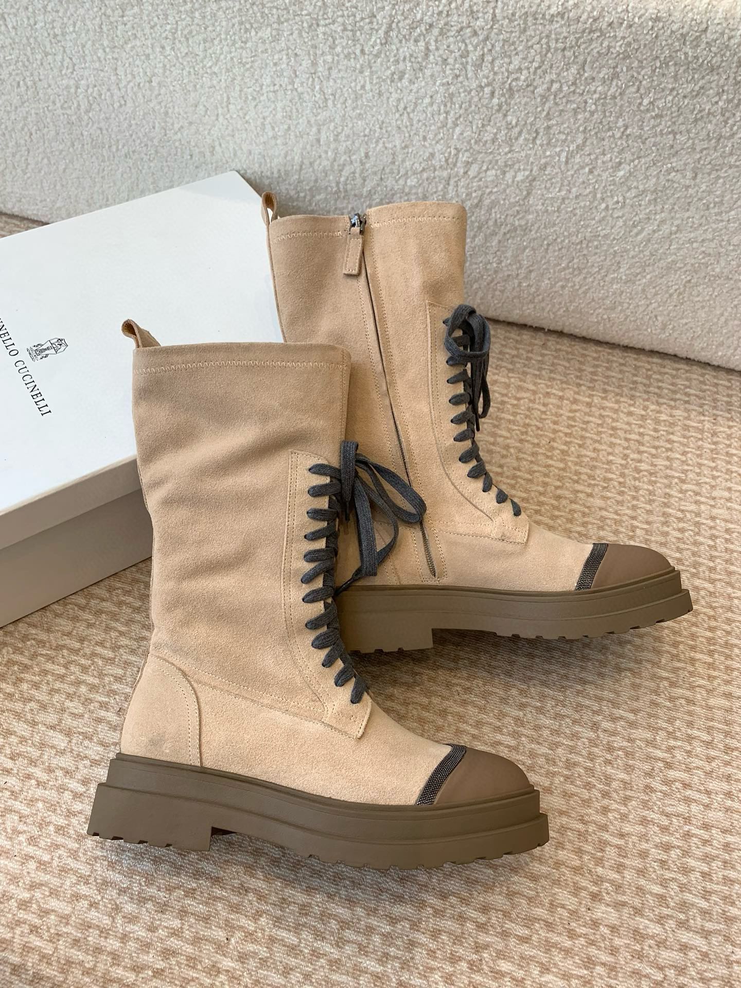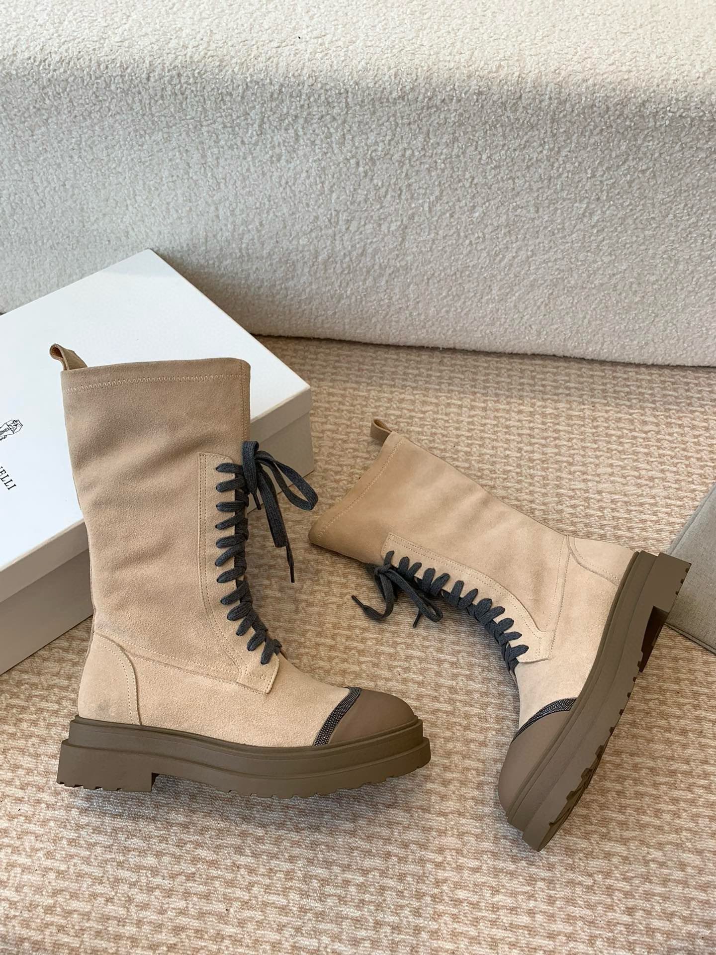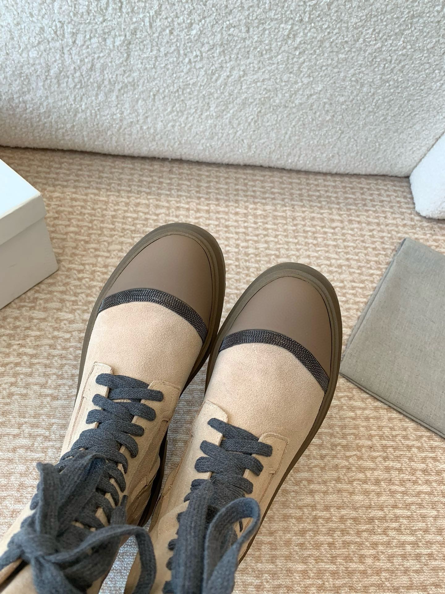 这款鞋子是AAAAA 1:1 质量 (非常棒). 使用了和原版一模一样的材料. 商标部分也保持了和Brunello Cucinelli一样. 图片拍摄是实物鞋子拍摄, 您所收到的实物保证和我们图片一模一样.