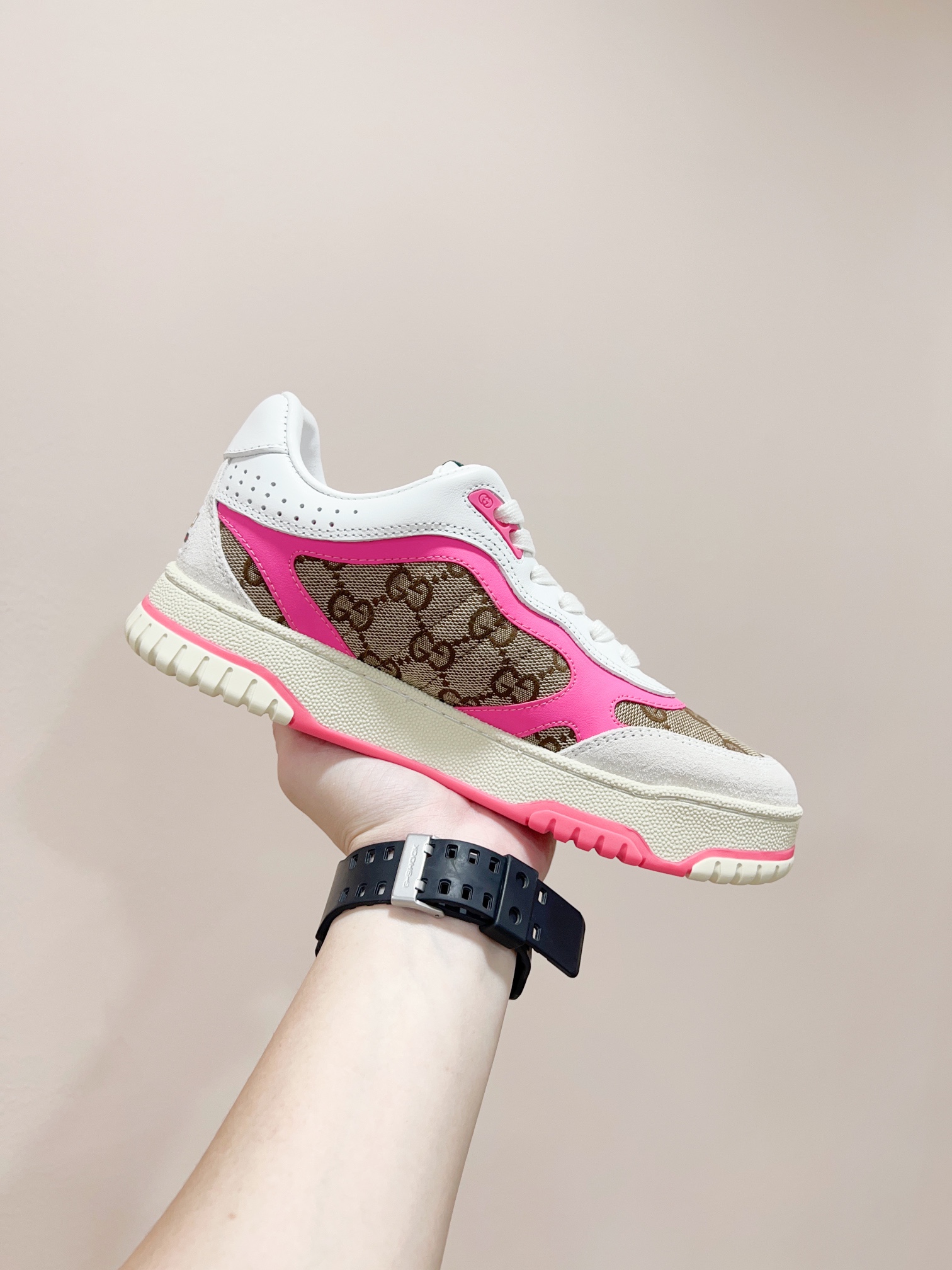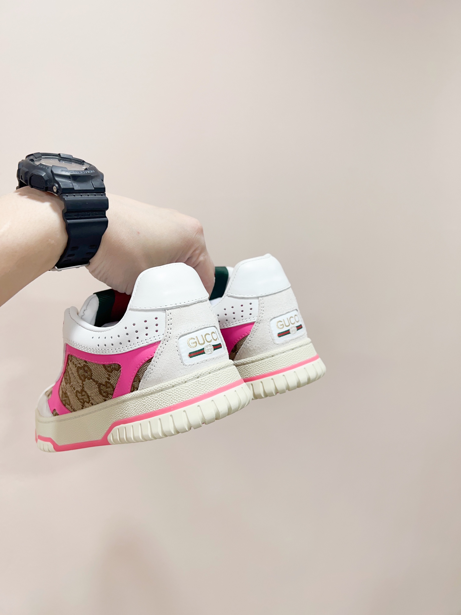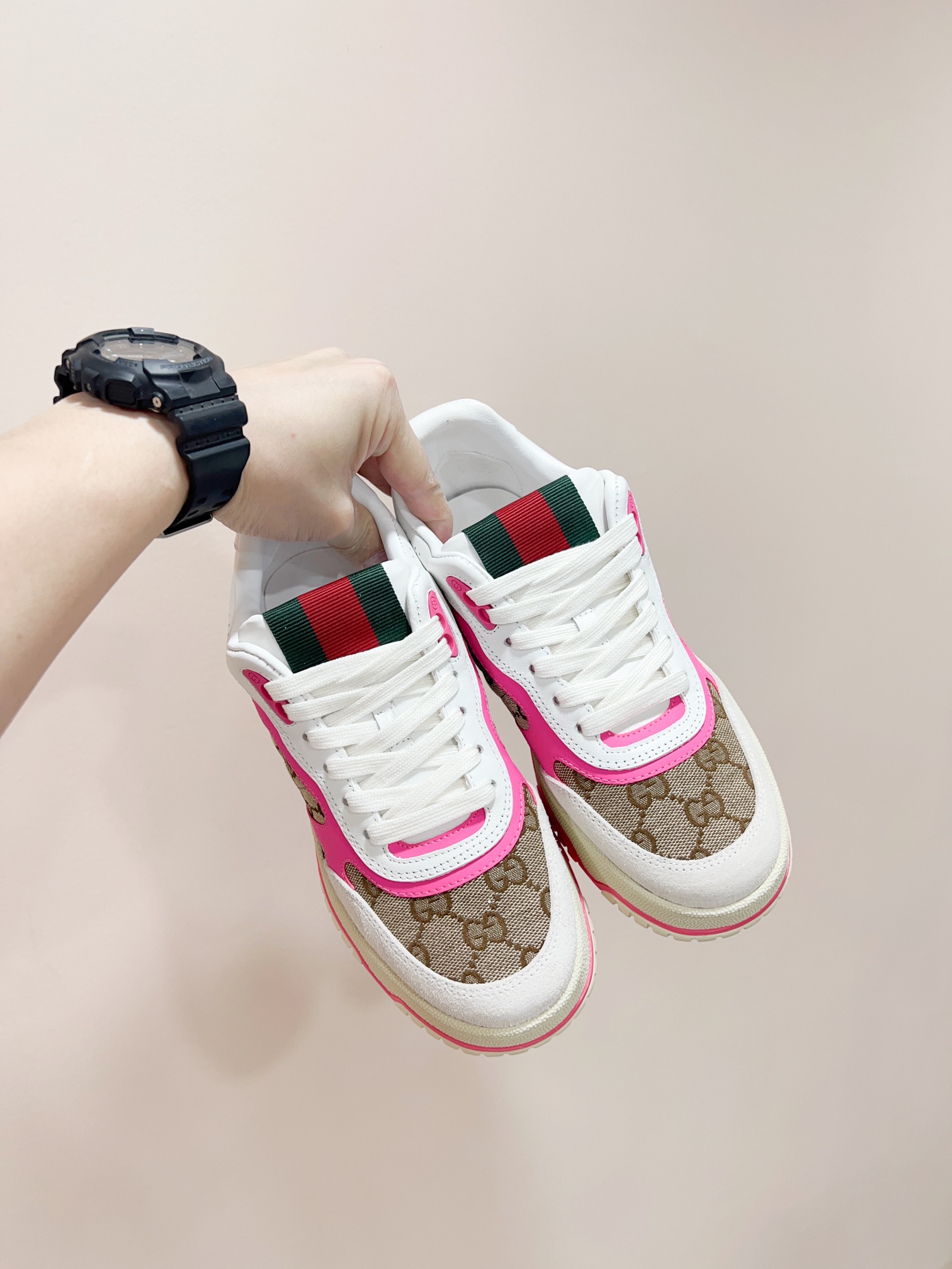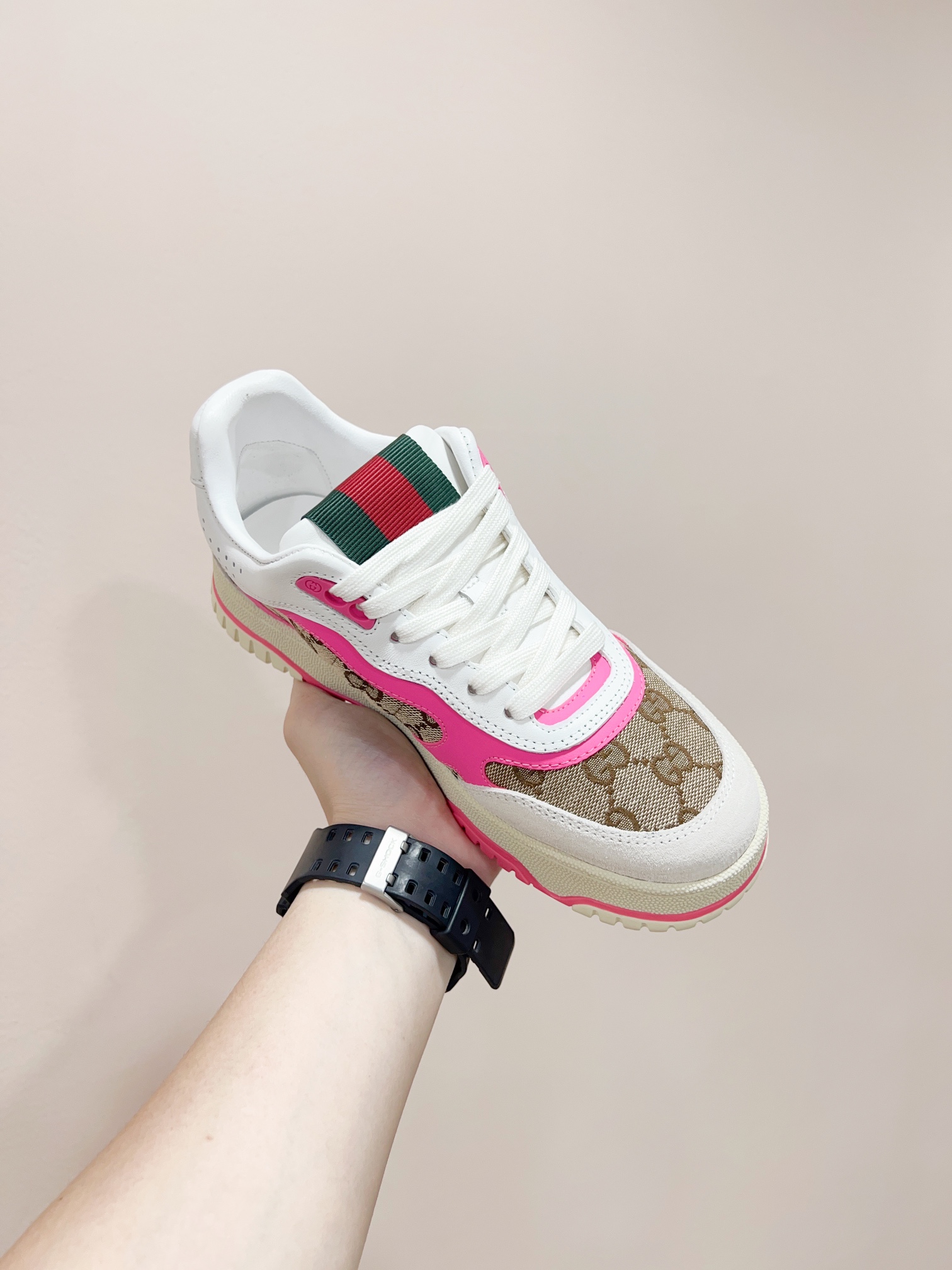 这款鞋子是AAAAA 1:1 质量 (非常棒). 使用了和原版一模一样的材料. 商标部分也保持了和古奇/Gucci一样. 图片拍摄是实物鞋子拍摄, 您所收到的实物保证和我们图片一模一样.