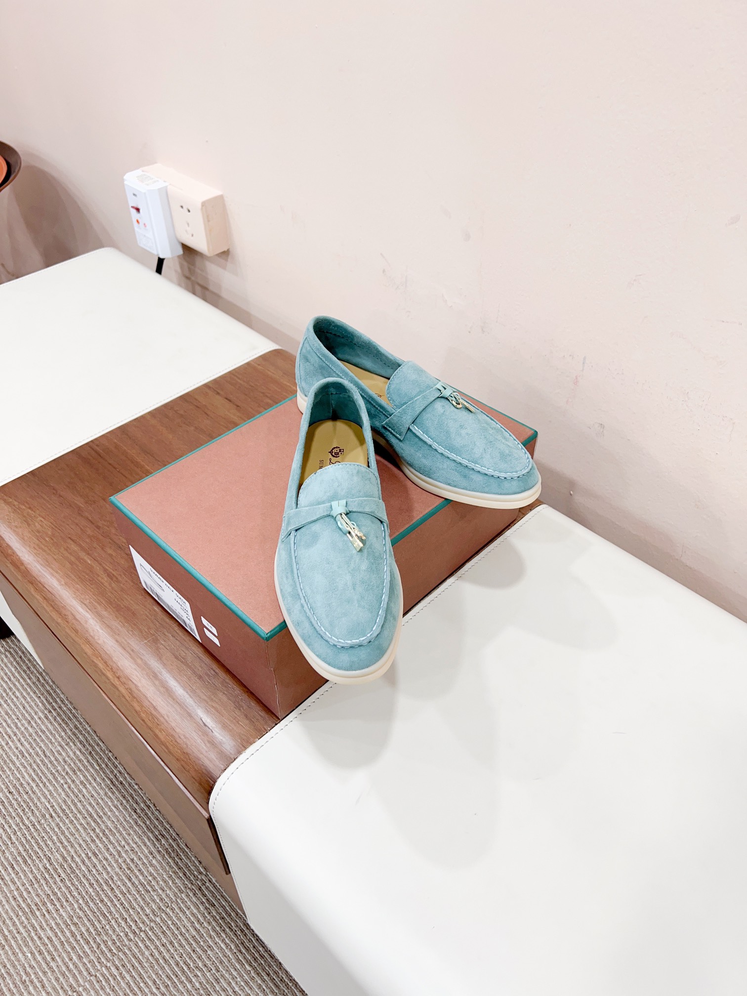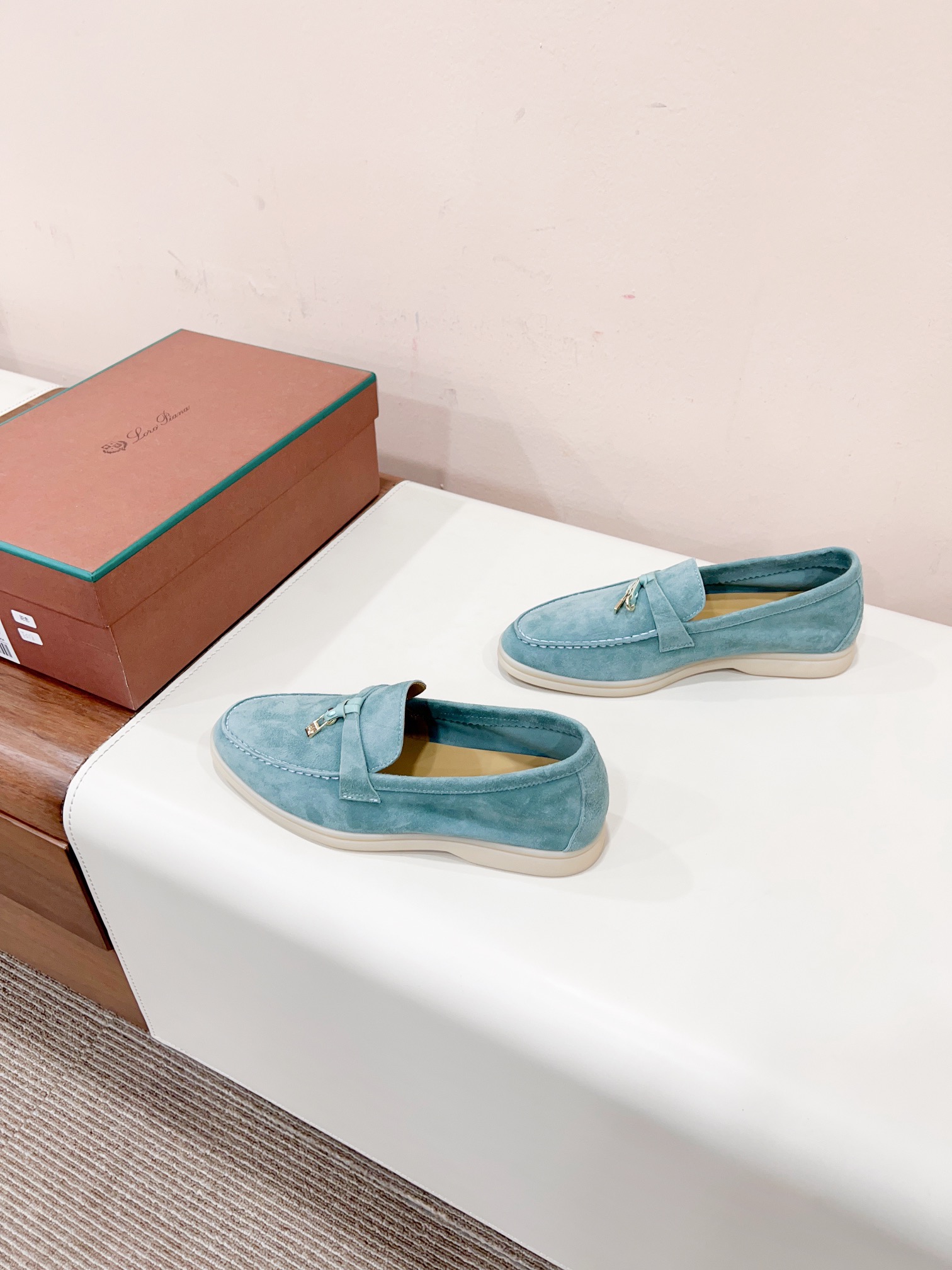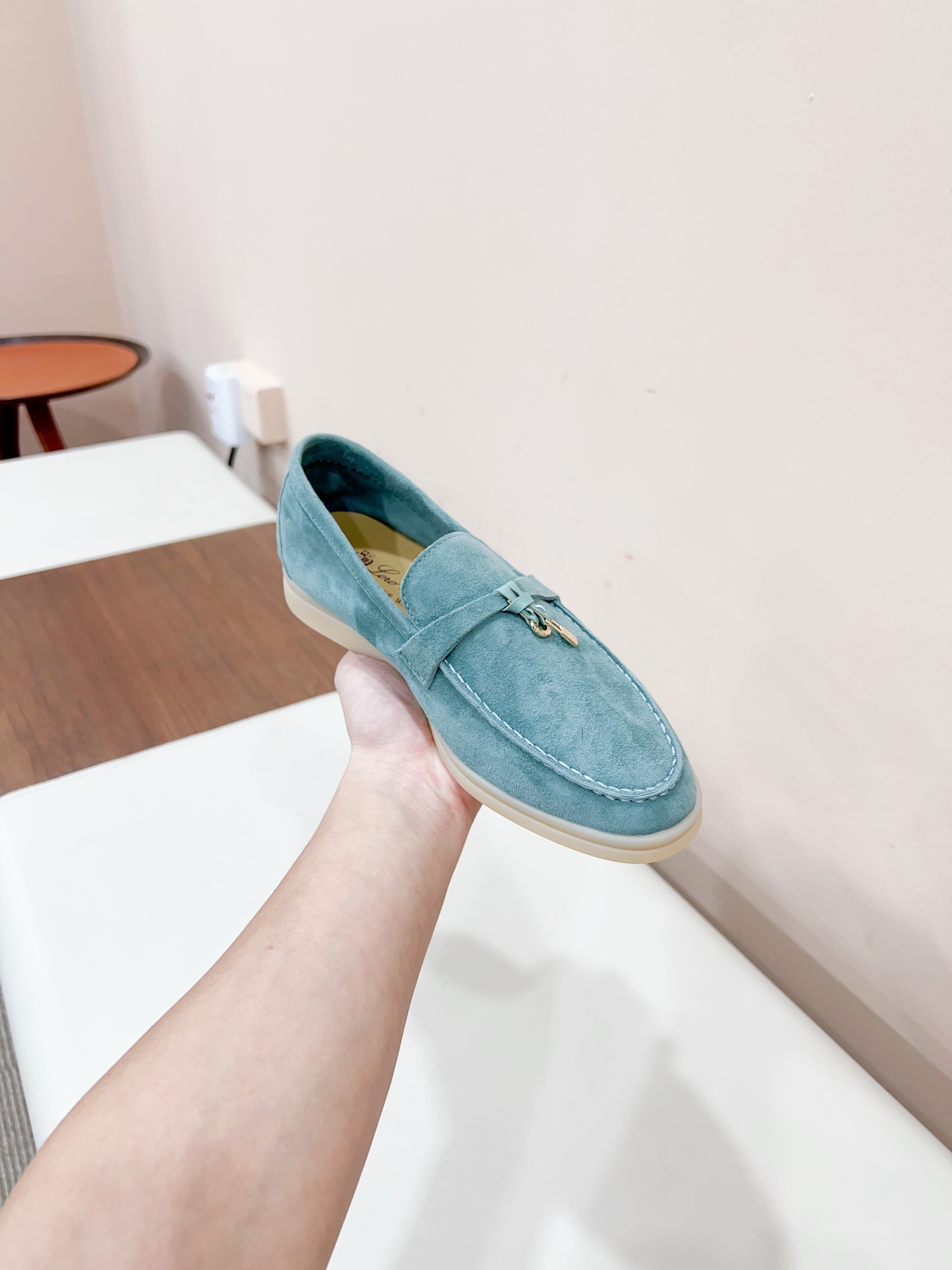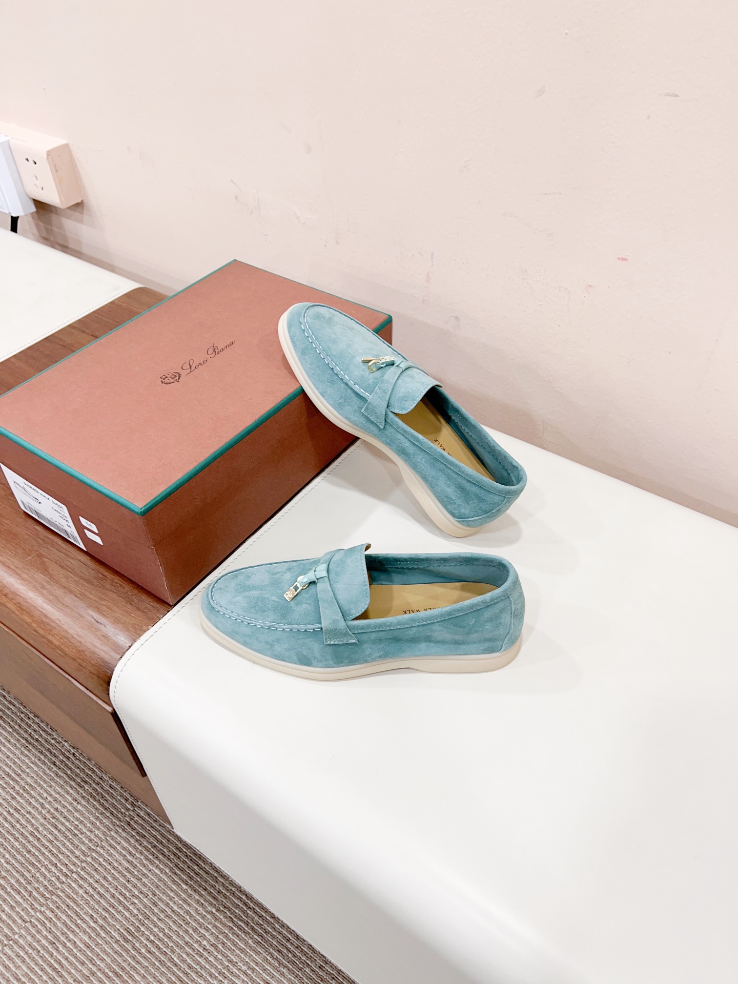 这款鞋子是AAAAA 1:1 质量 (非常棒). 使用了和原版一模一样的材料. 商标部分也保持了和洛罗皮亚纳/Loro Piana一样. 图片拍摄是实物鞋子拍摄, 您所收到的实物保证和我们图片一模一样.