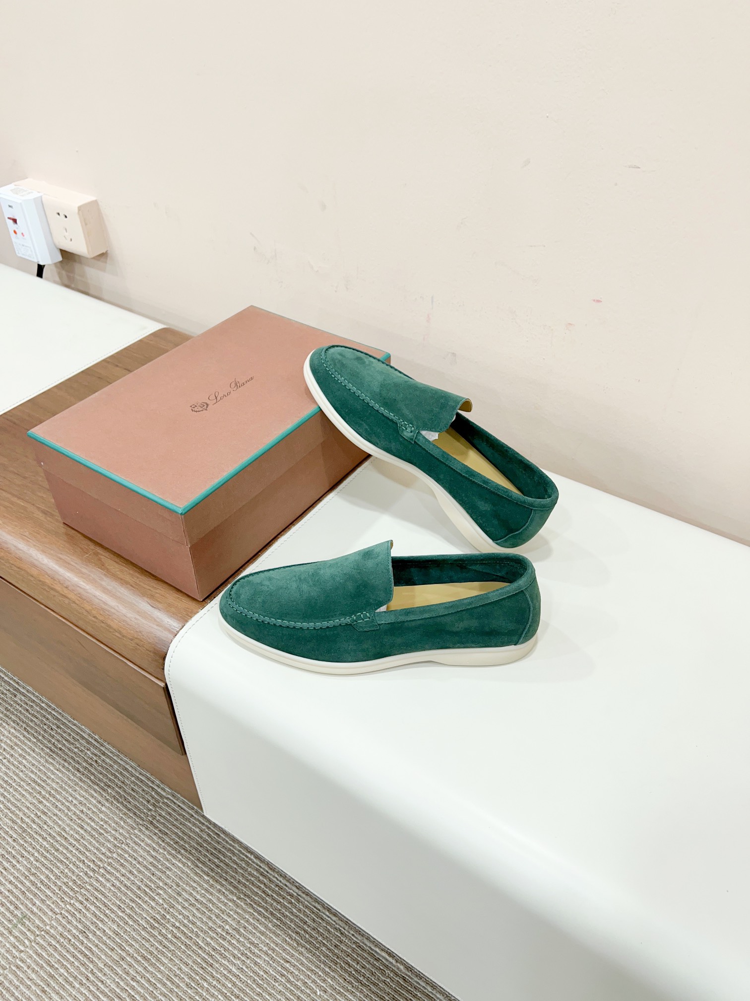 这款鞋子是AAAAA 1:1 质量 (非常棒). 使用了和原版一模一样的材料. 商标部分也保持了和洛罗皮亚纳/Loro Piana一样. 图片拍摄是实物鞋子拍摄, 您所收到的实物保证和我们图片一模一样.