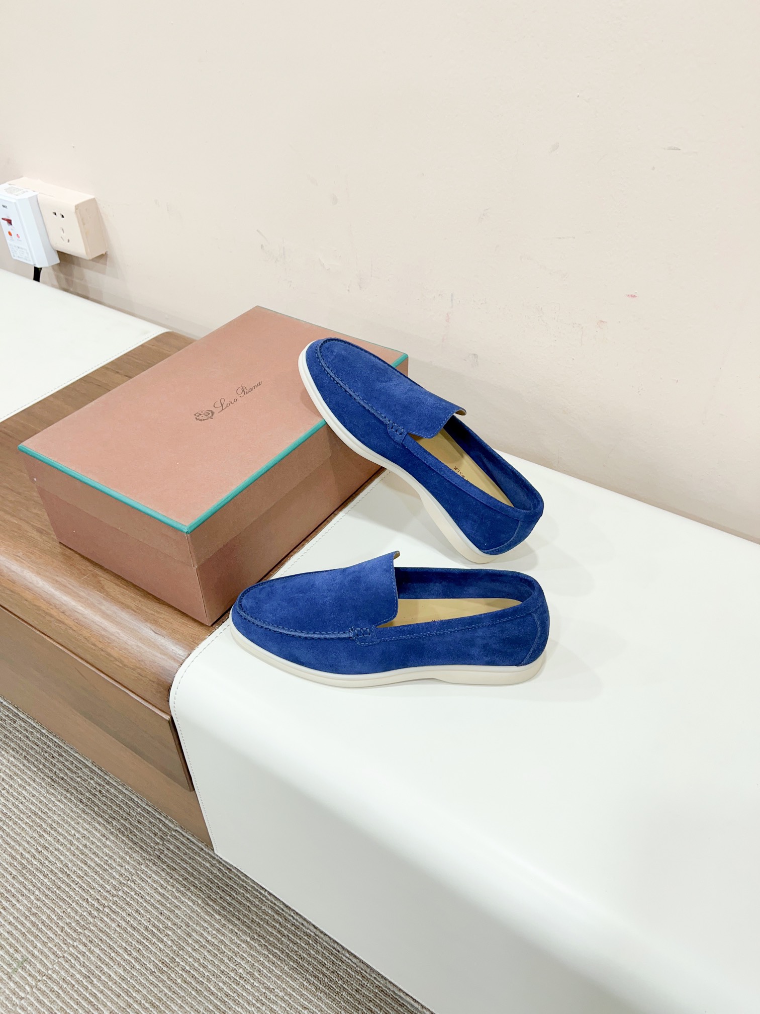 这款鞋子是AAAAA 1:1 质量 (非常棒). 使用了和原版一模一样的材料. 商标部分也保持了和洛罗皮亚纳/Loro Piana一样. 图片拍摄是实物鞋子拍摄, 您所收到的实物保证和我们图片一模一样.