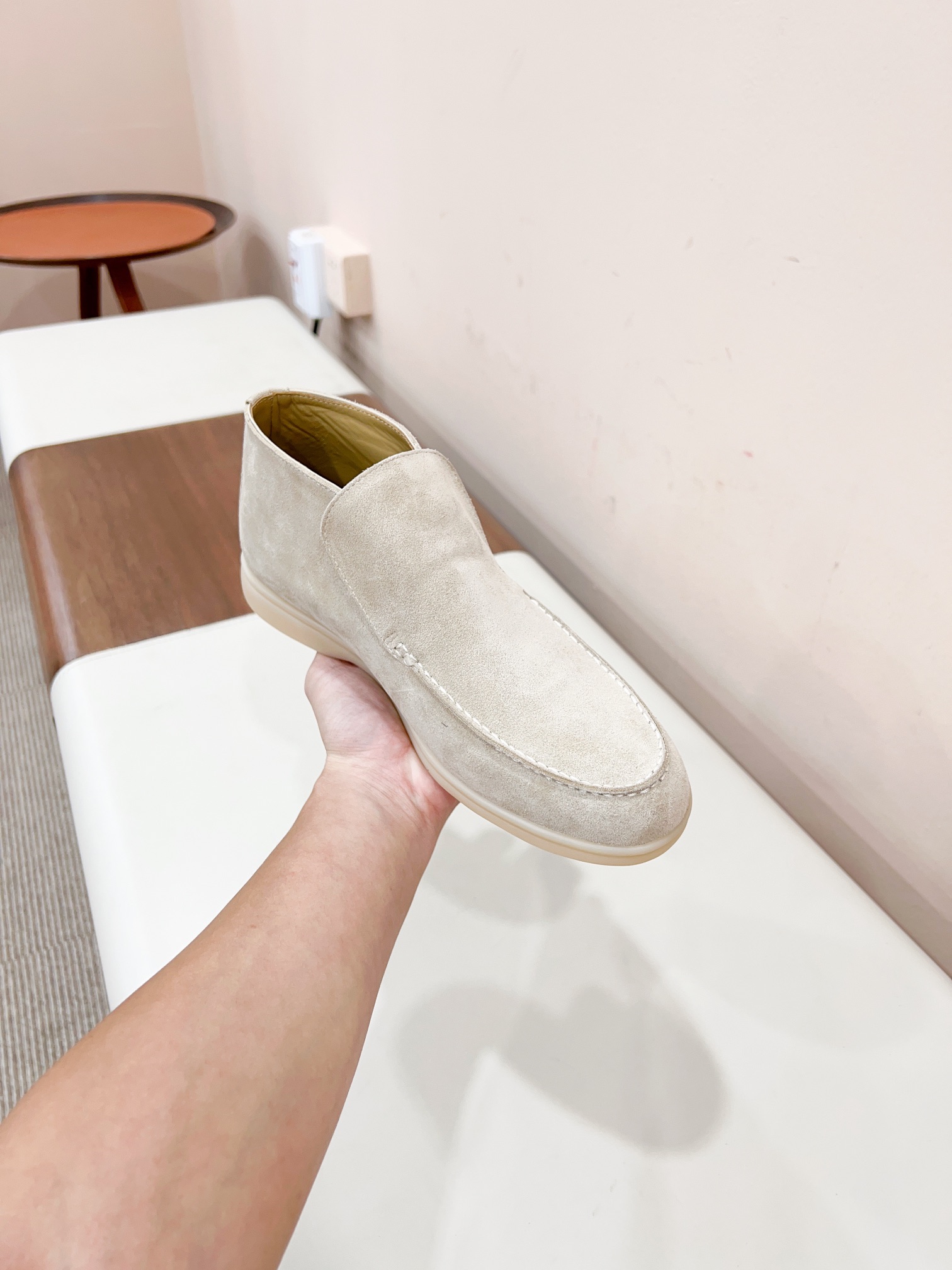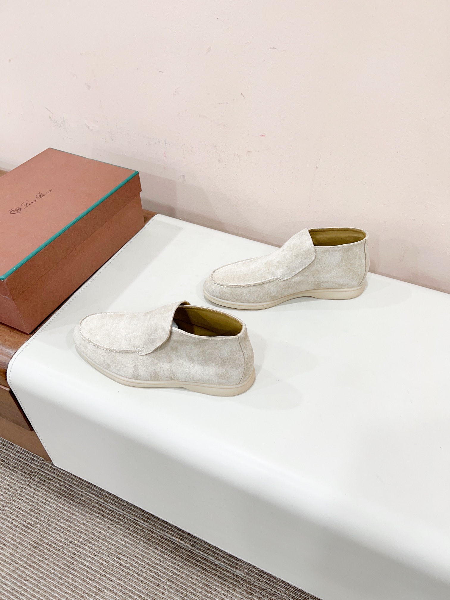 这款鞋子是AAAAA 1:1 质量 (非常棒). 使用了和原版一模一样的材料. 商标部分也保持了和洛罗皮亚纳/Loro Piana一样. 图片拍摄是实物鞋子拍摄, 您所收到的实物保证和我们图片一模一样.