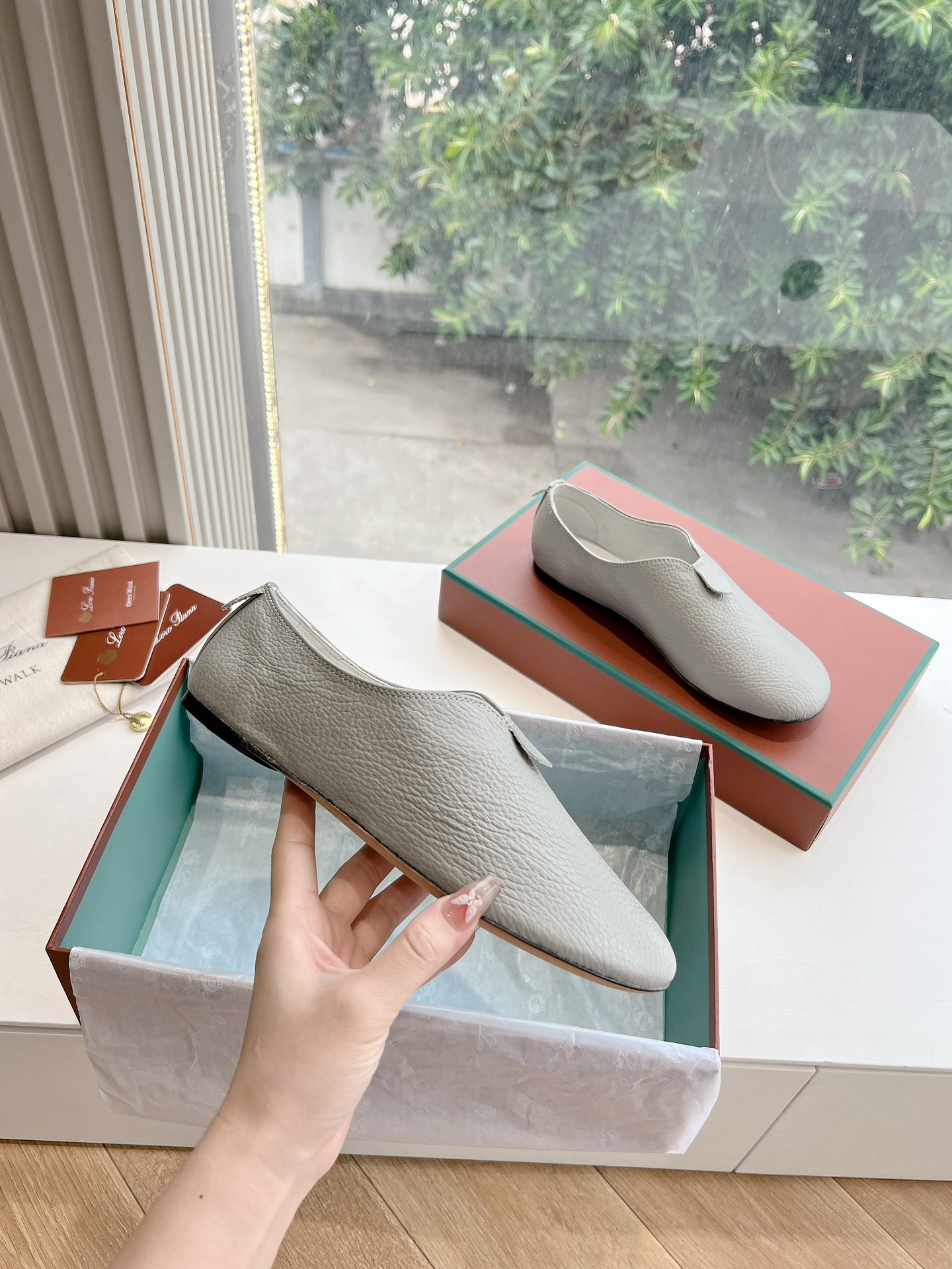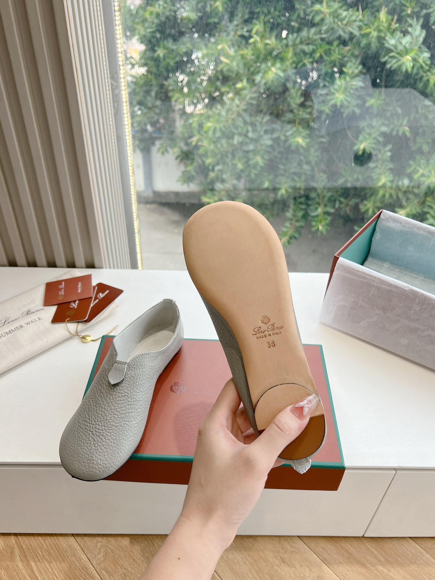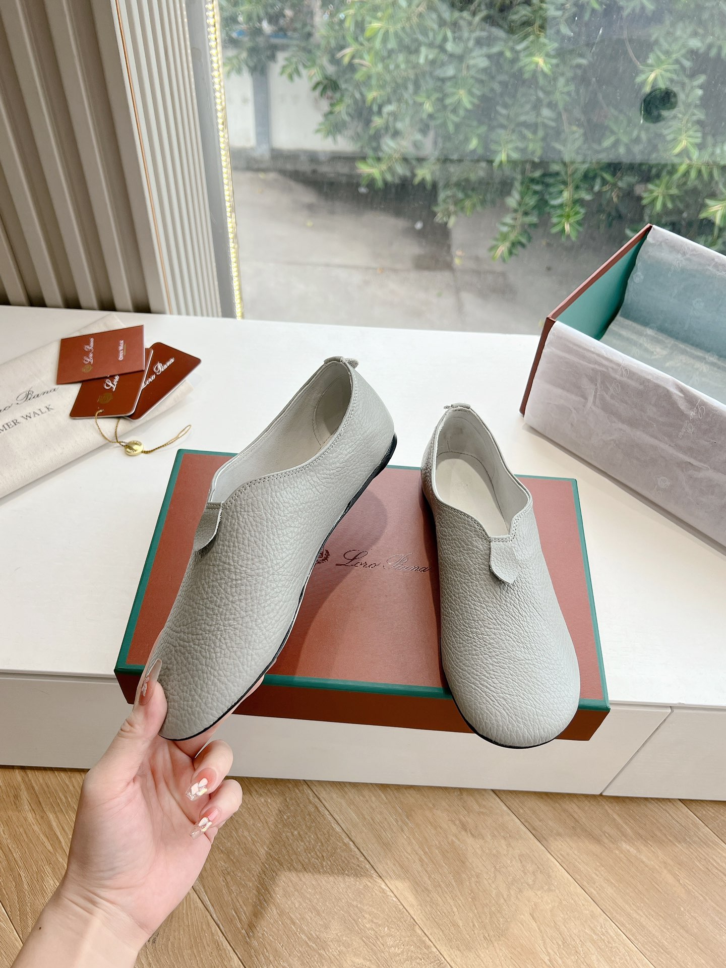这款鞋子是AAAAA 1:1 质量 (非常棒). 使用了和原版一模一样的材料. 商标部分也保持了和洛罗皮亚纳/Loro Piana一样. 图片拍摄是实物鞋子拍摄, 您所收到的实物保证和我们图片一模一样.