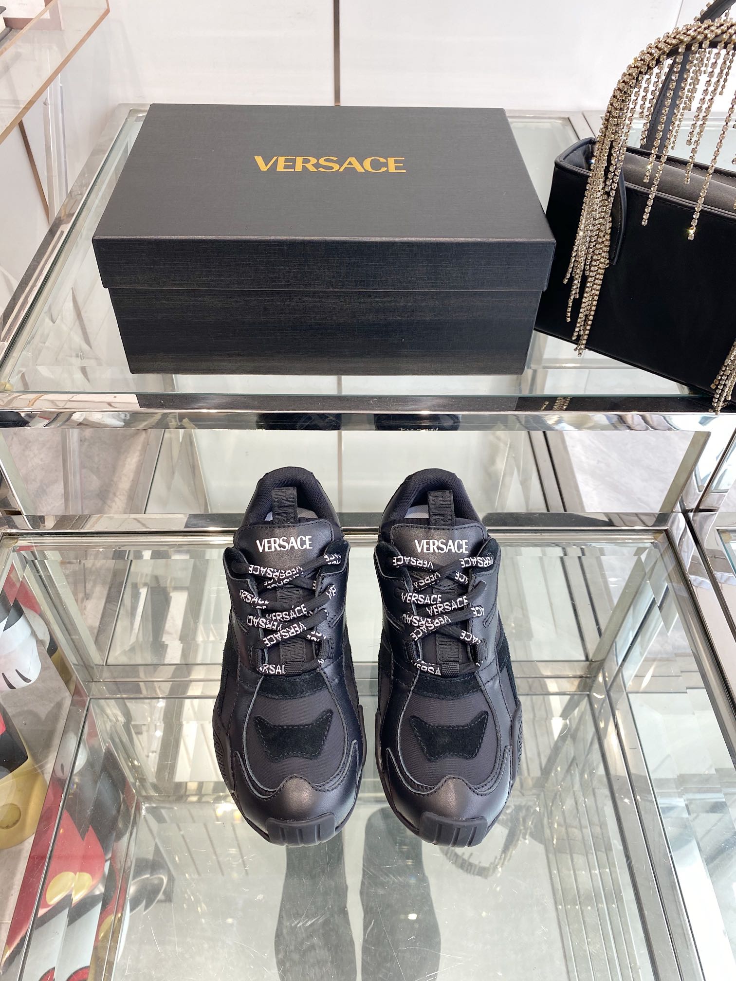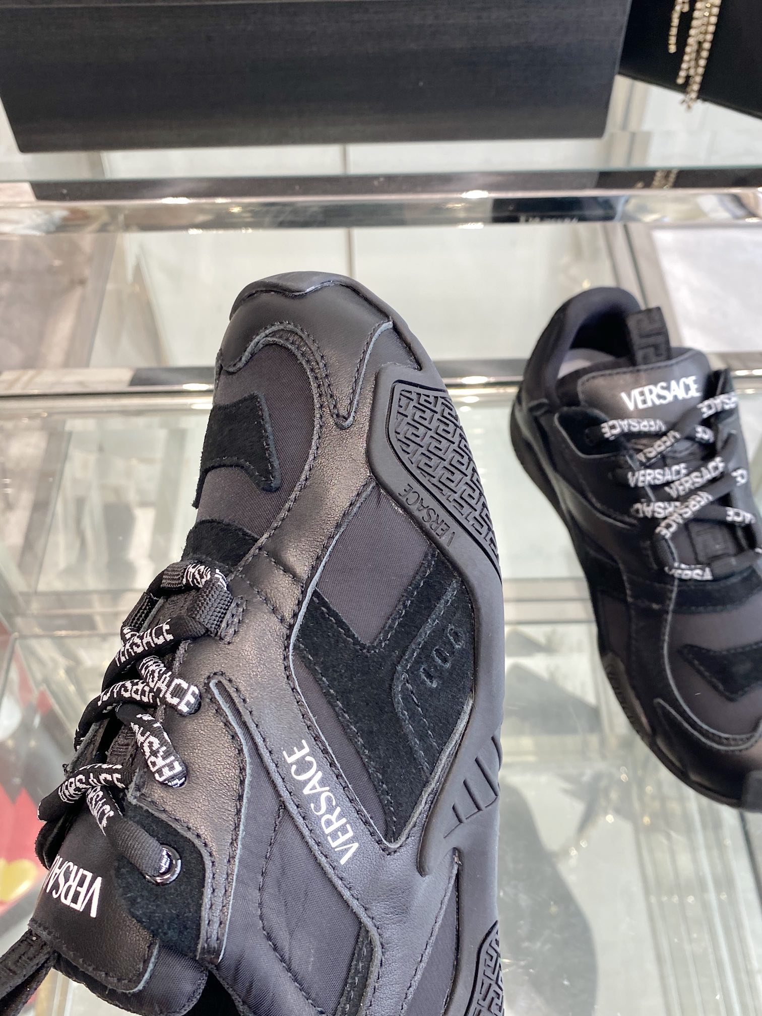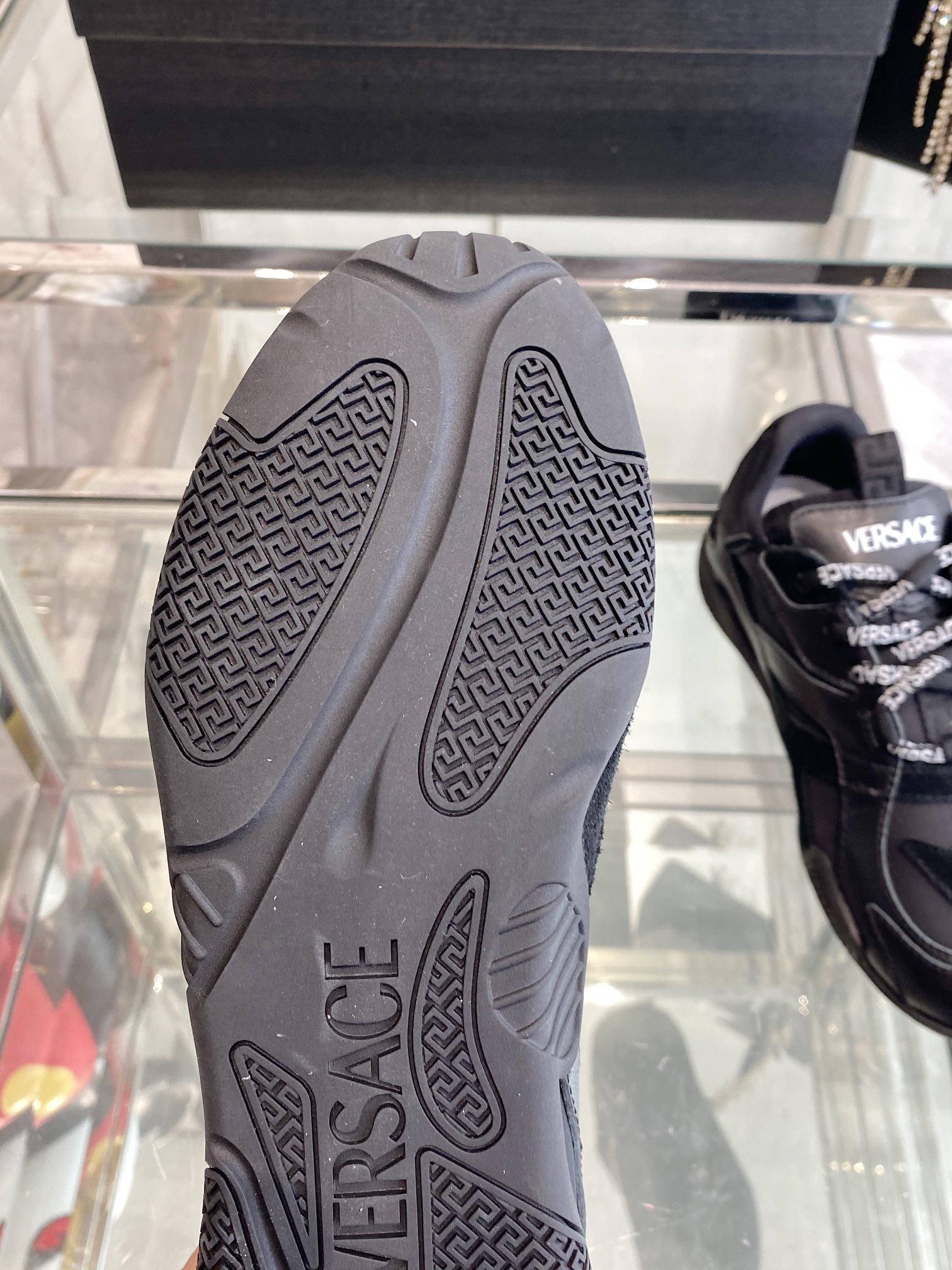 这款鞋子是AAAAA 1:1 质量 (非常棒). 使用了和原版一模一样的材料. 商标部分也保持了和范思哲/Versace一样. 图片拍摄是实物鞋子拍摄, 您所收到的实物保证和我们图片一模一样.