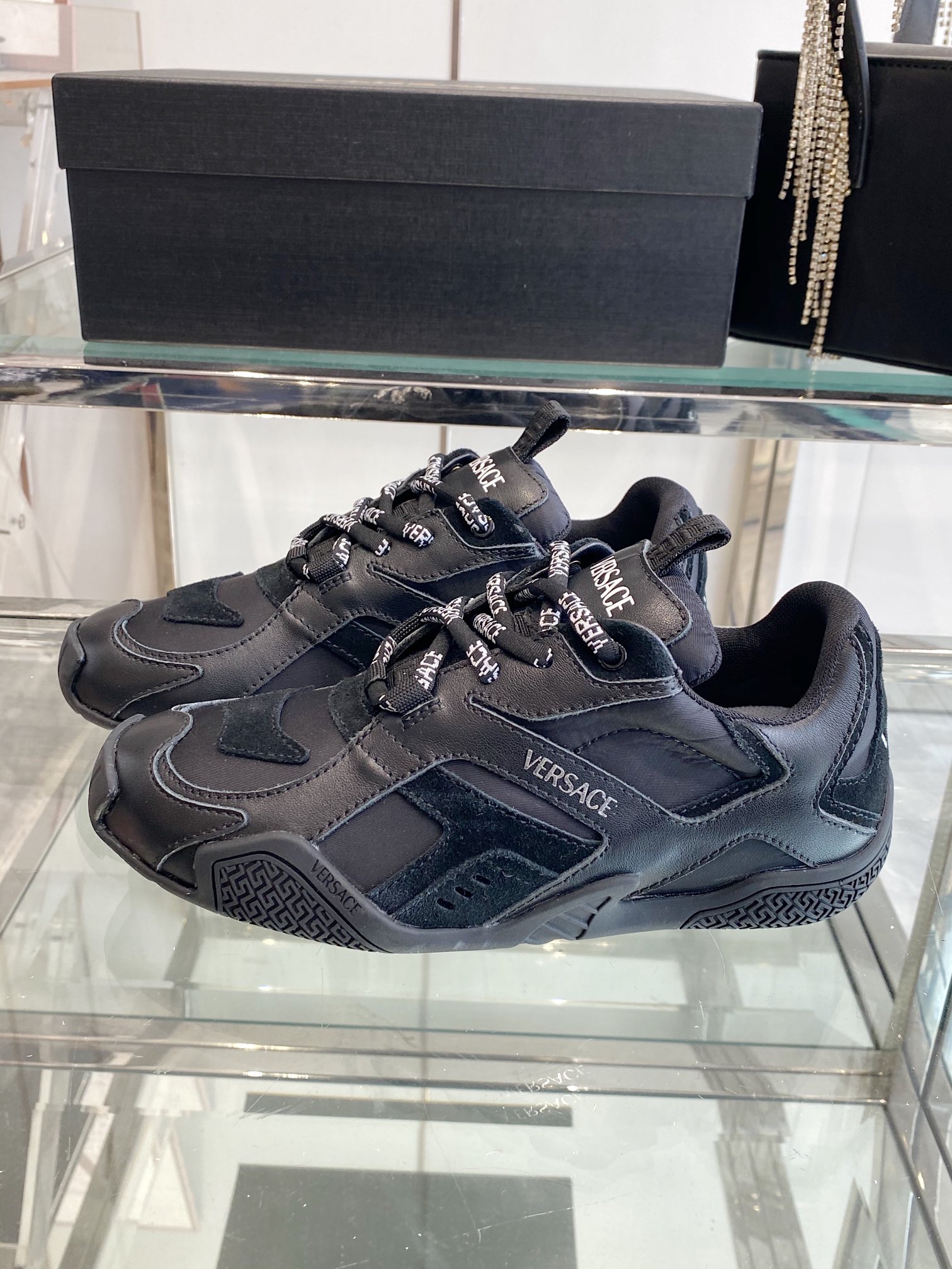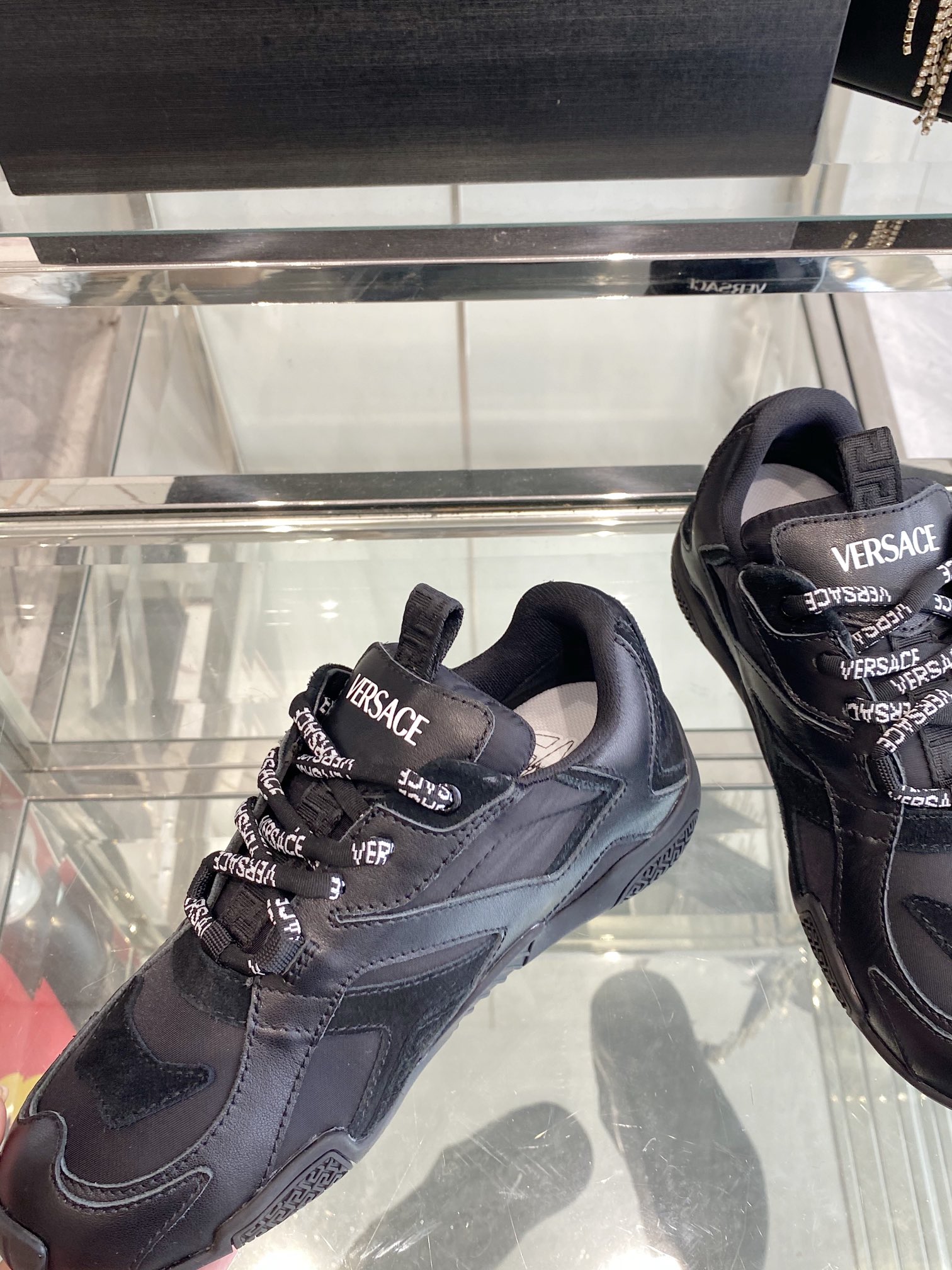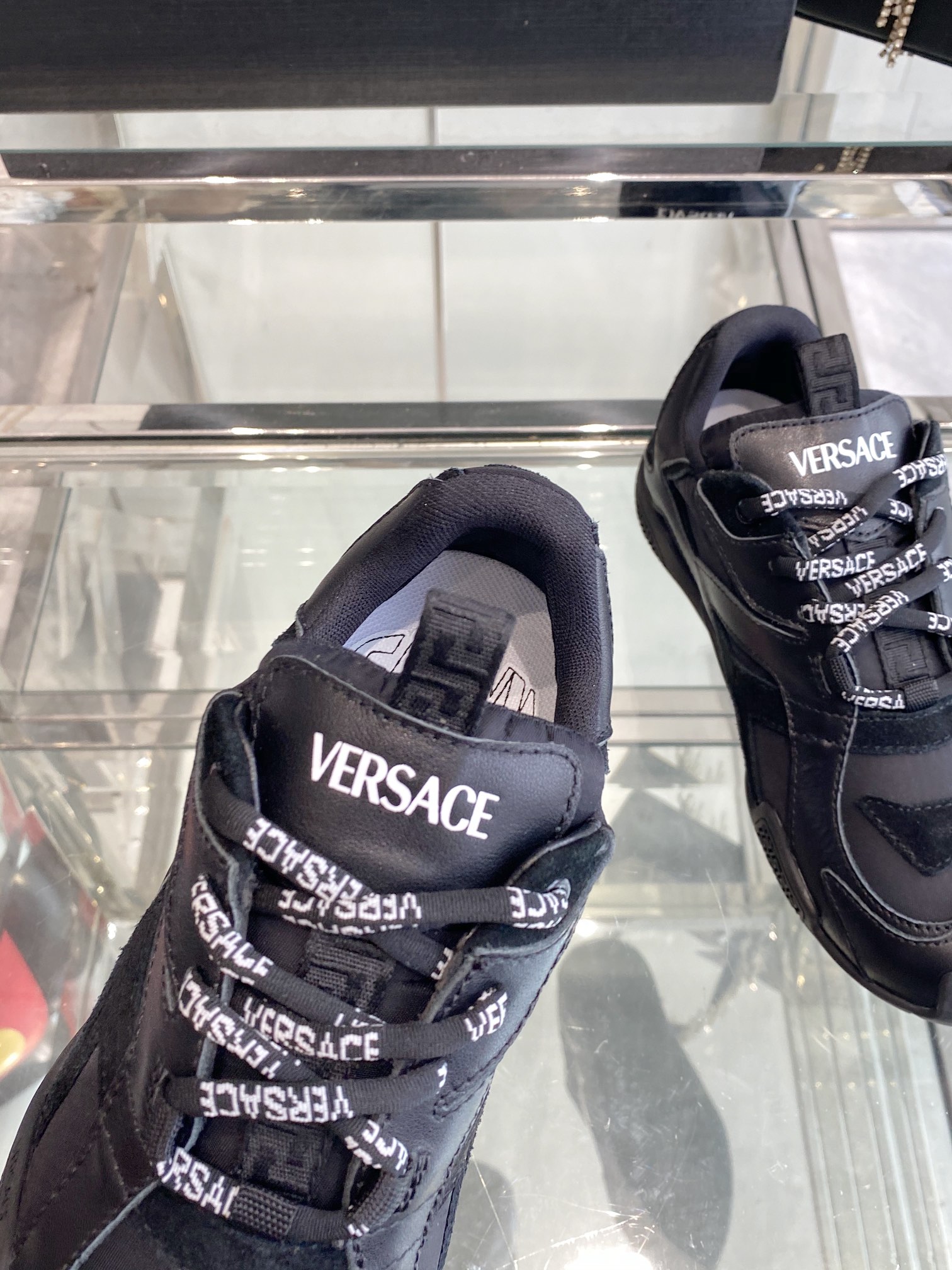 这款鞋子是AAAAA 1:1 质量 (非常棒). 使用了和原版一模一样的材料. 商标部分也保持了和范思哲/Versace一样. 图片拍摄是实物鞋子拍摄, 您所收到的实物保证和我们图片一模一样.