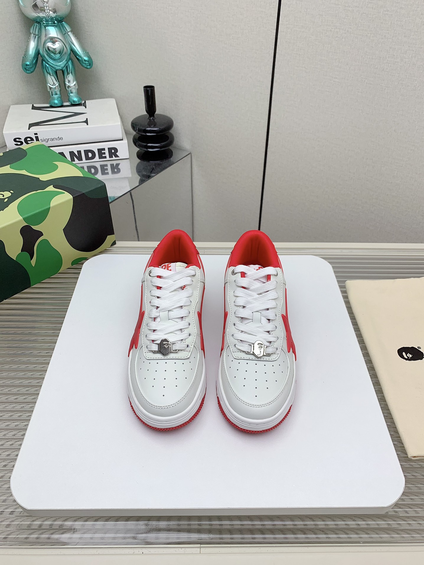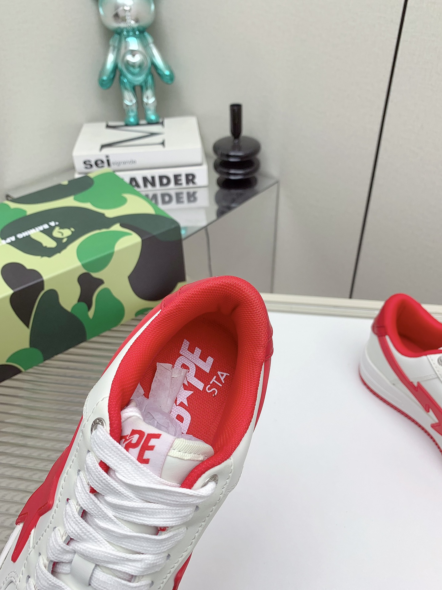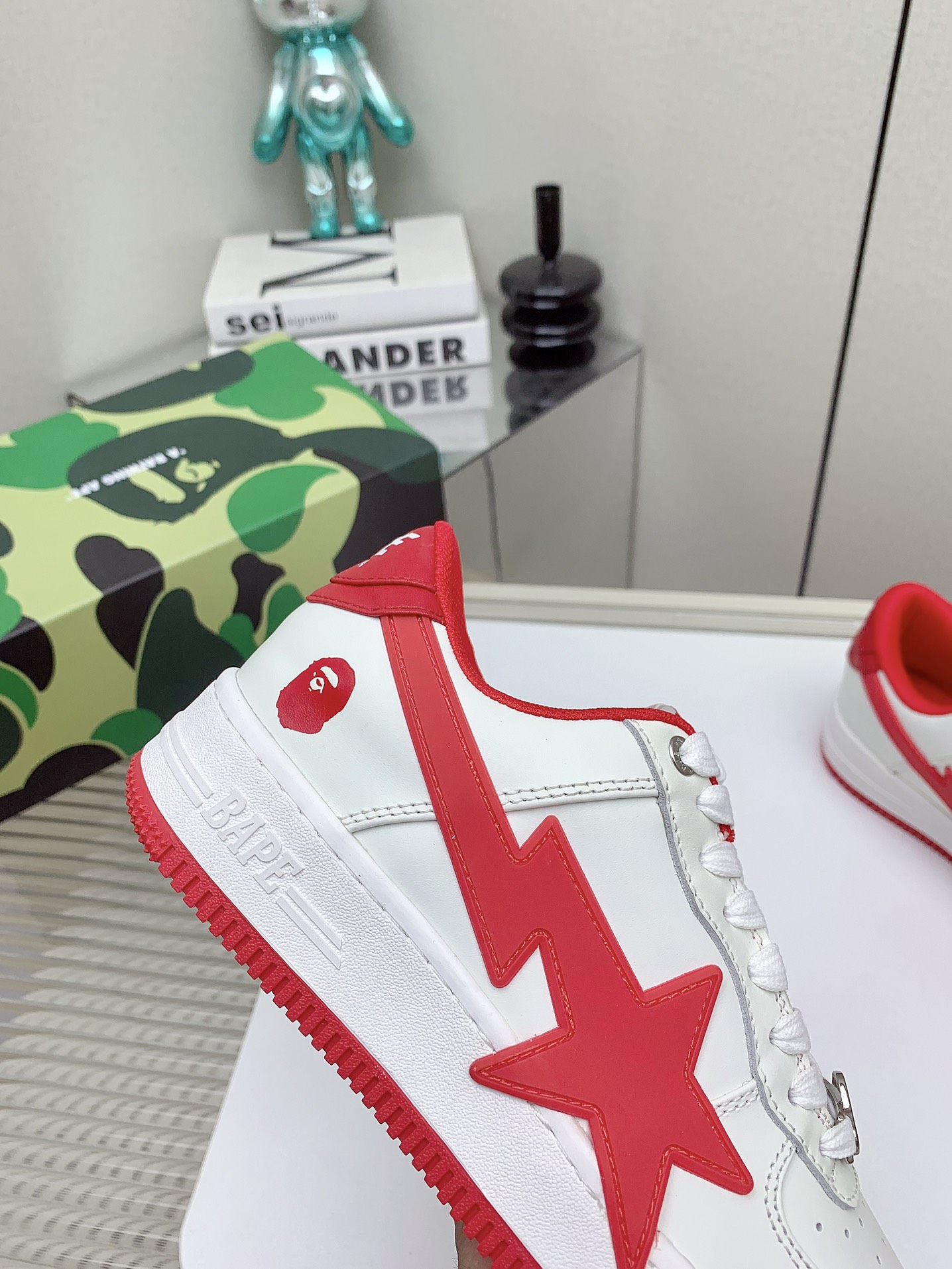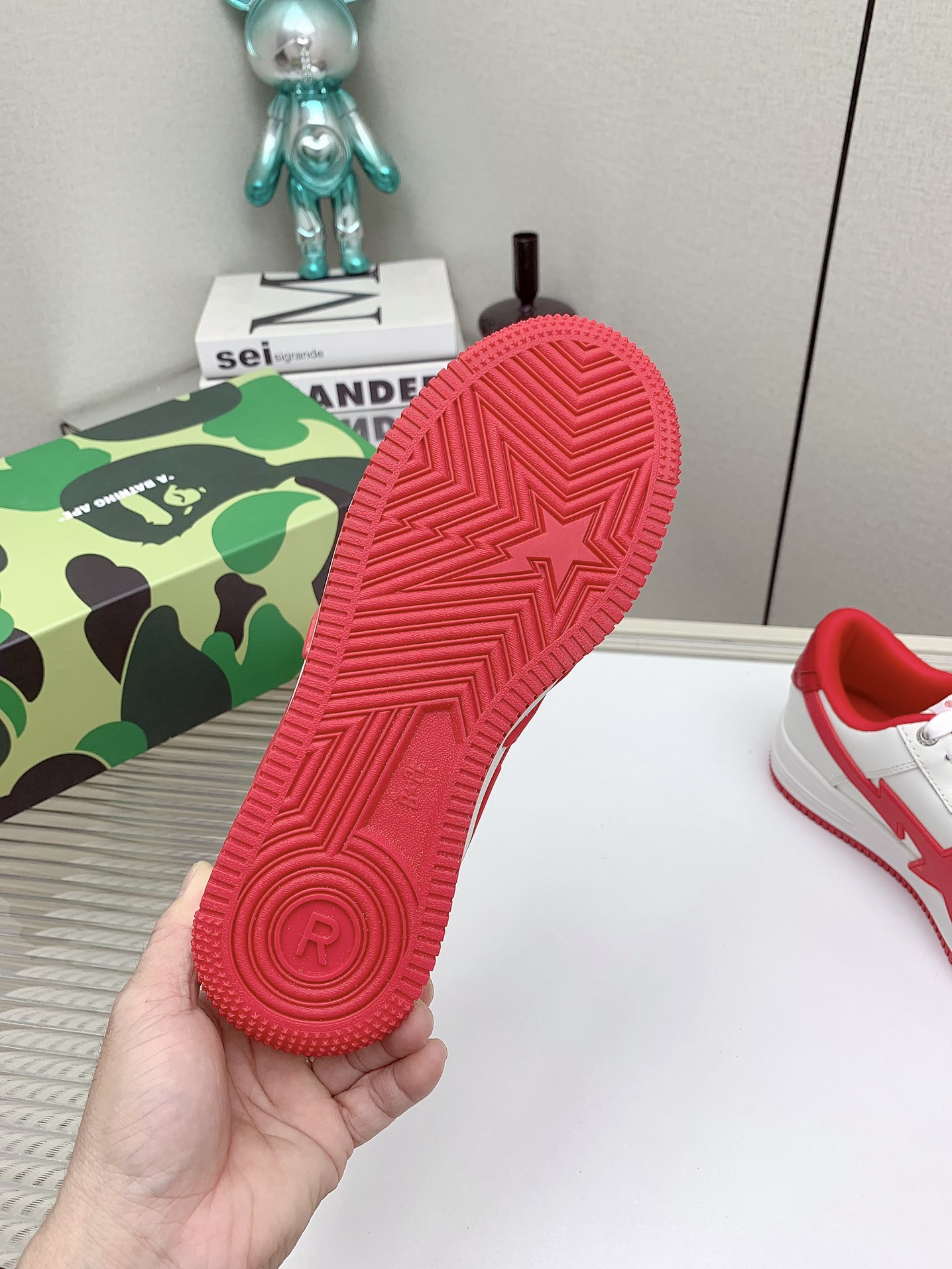这款鞋子是AAAAA 1:1 质量 (非常棒). 使用了和原版一模一样的材料. 商标部分也保持了和Bape一样. 图片拍摄是实物鞋子拍摄, 您所收到的实物保证和我们图片一模一样.