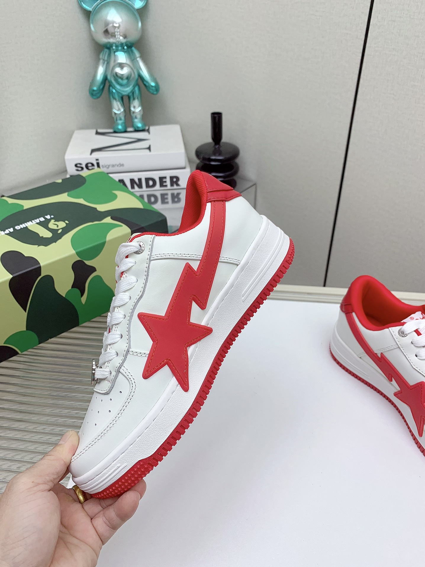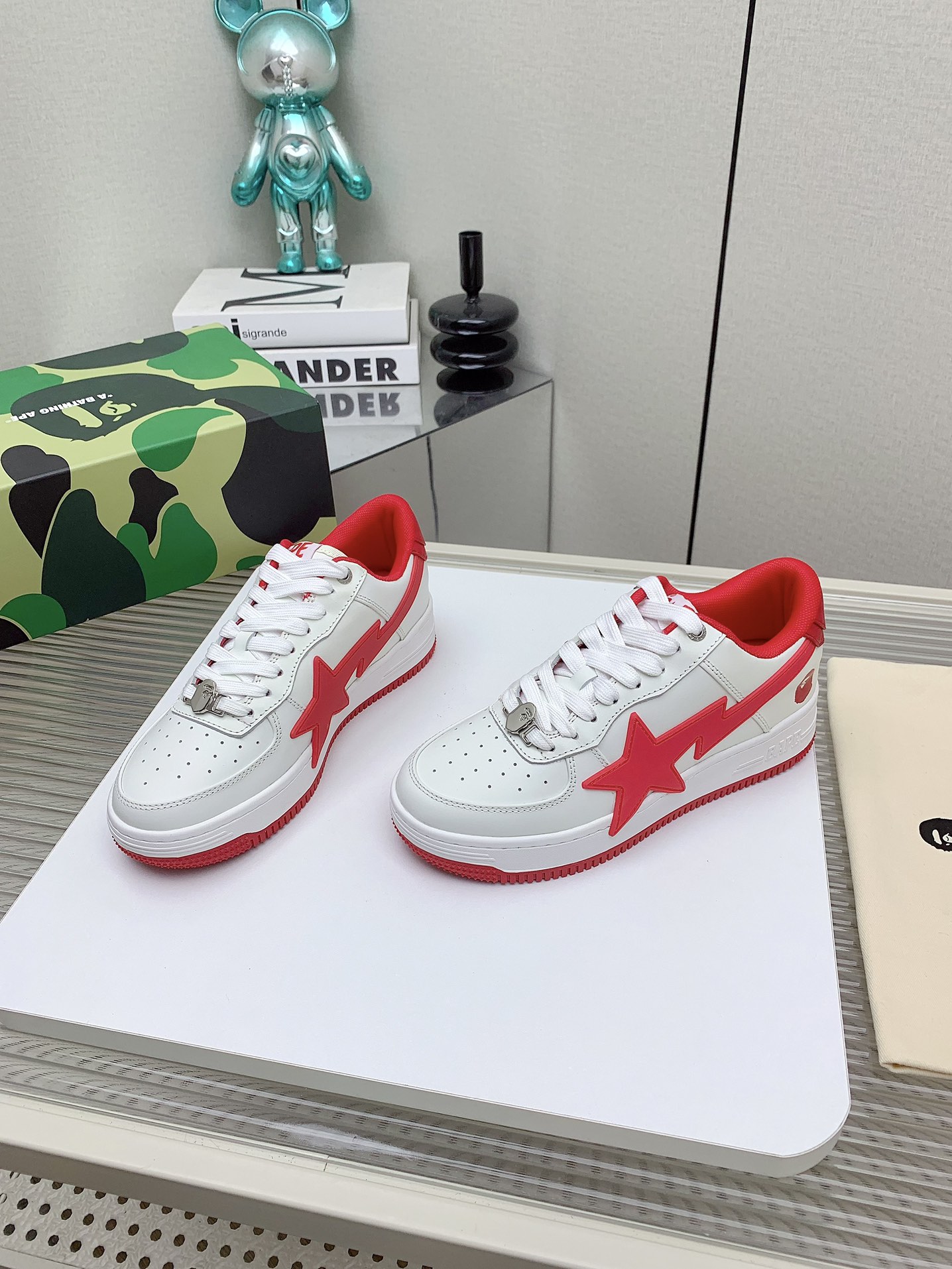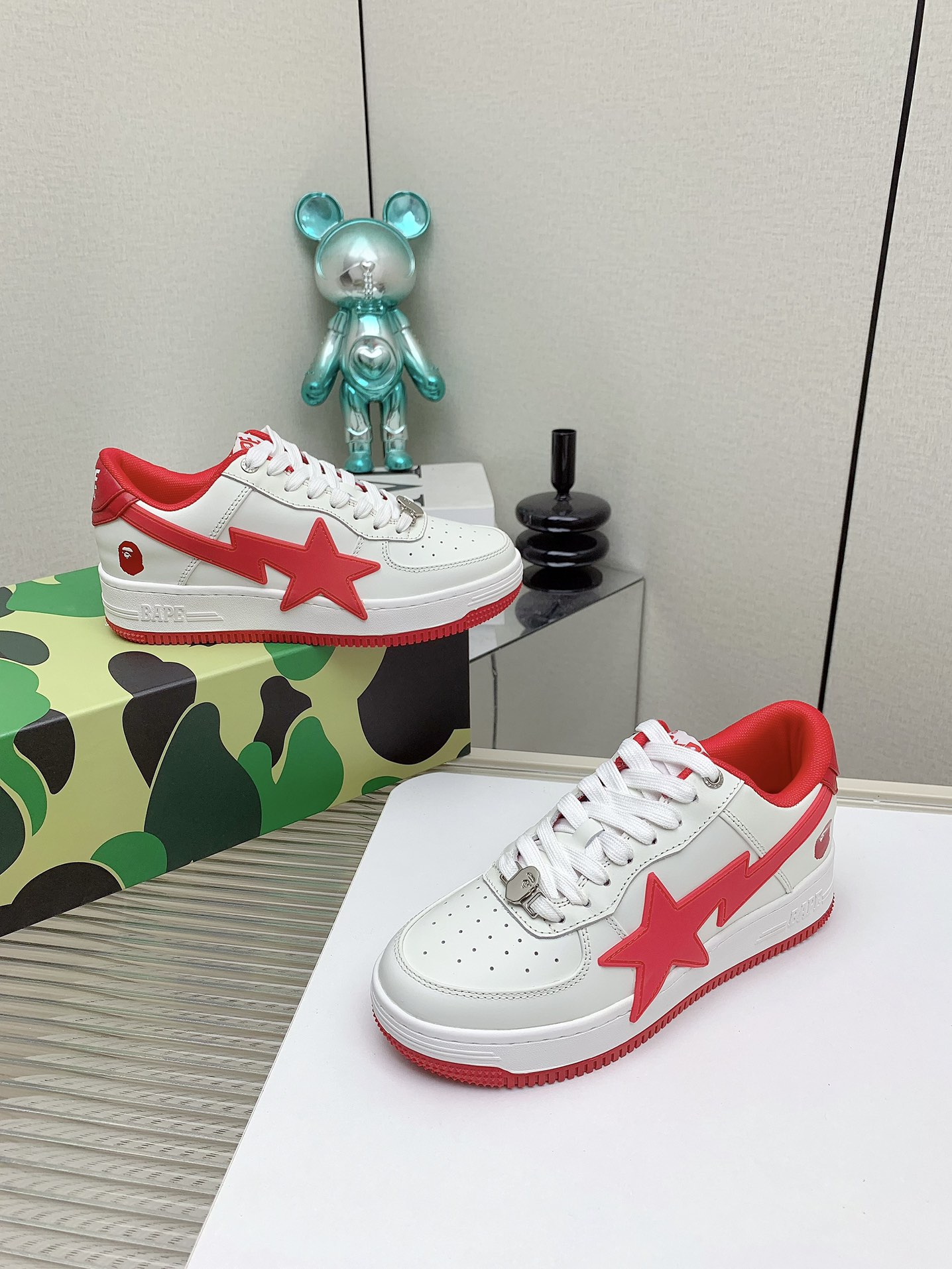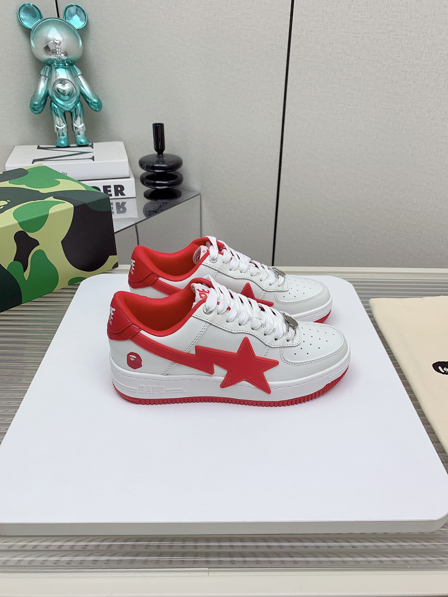 这款鞋子是AAAAA 1:1 质量 (非常棒). 使用了和原版一模一样的材料. 商标部分也保持了和Bape一样. 图片拍摄是实物鞋子拍摄, 您所收到的实物保证和我们图片一模一样.