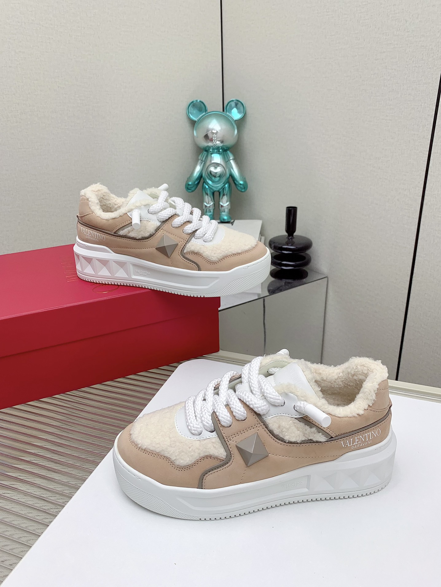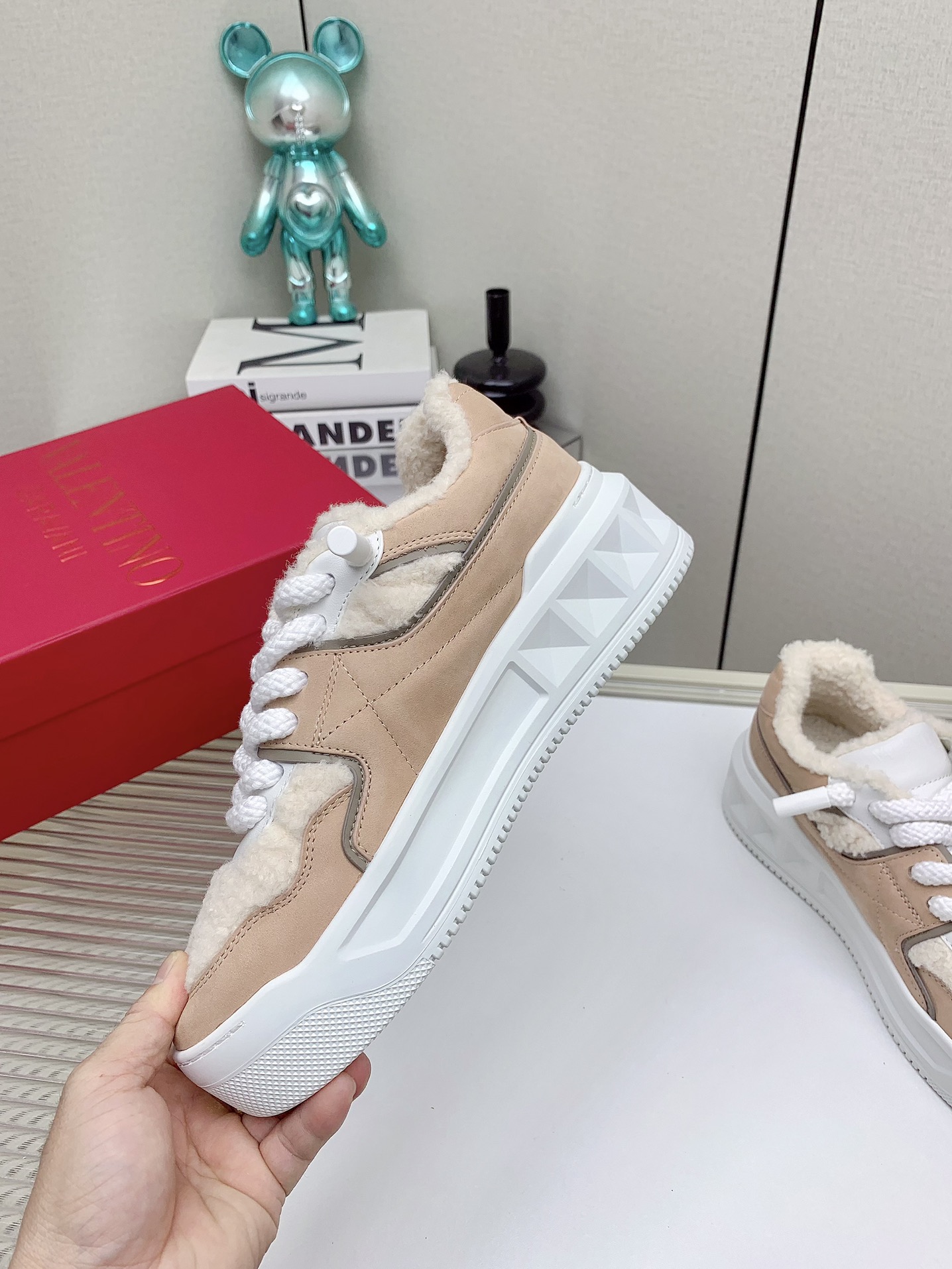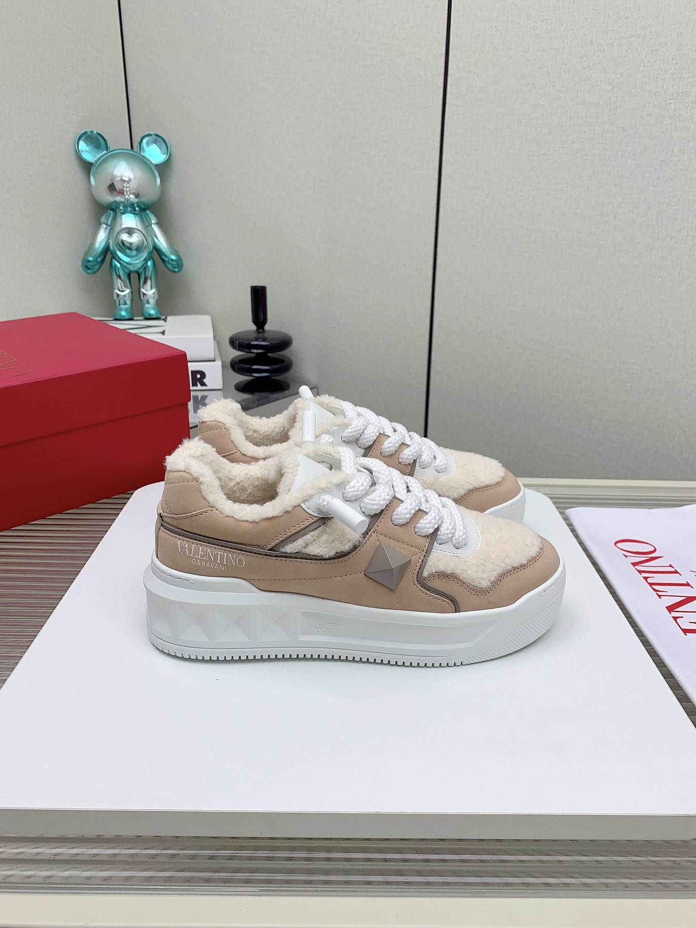 这款鞋子是AAAAA 1:1 质量 (非常棒). 使用了和原版一模一样的材料. 商标部分也保持了和华伦天奴/Valentino一样. 图片拍摄是实物鞋子拍摄, 您所收到的实物保证和我们图片一模一样.