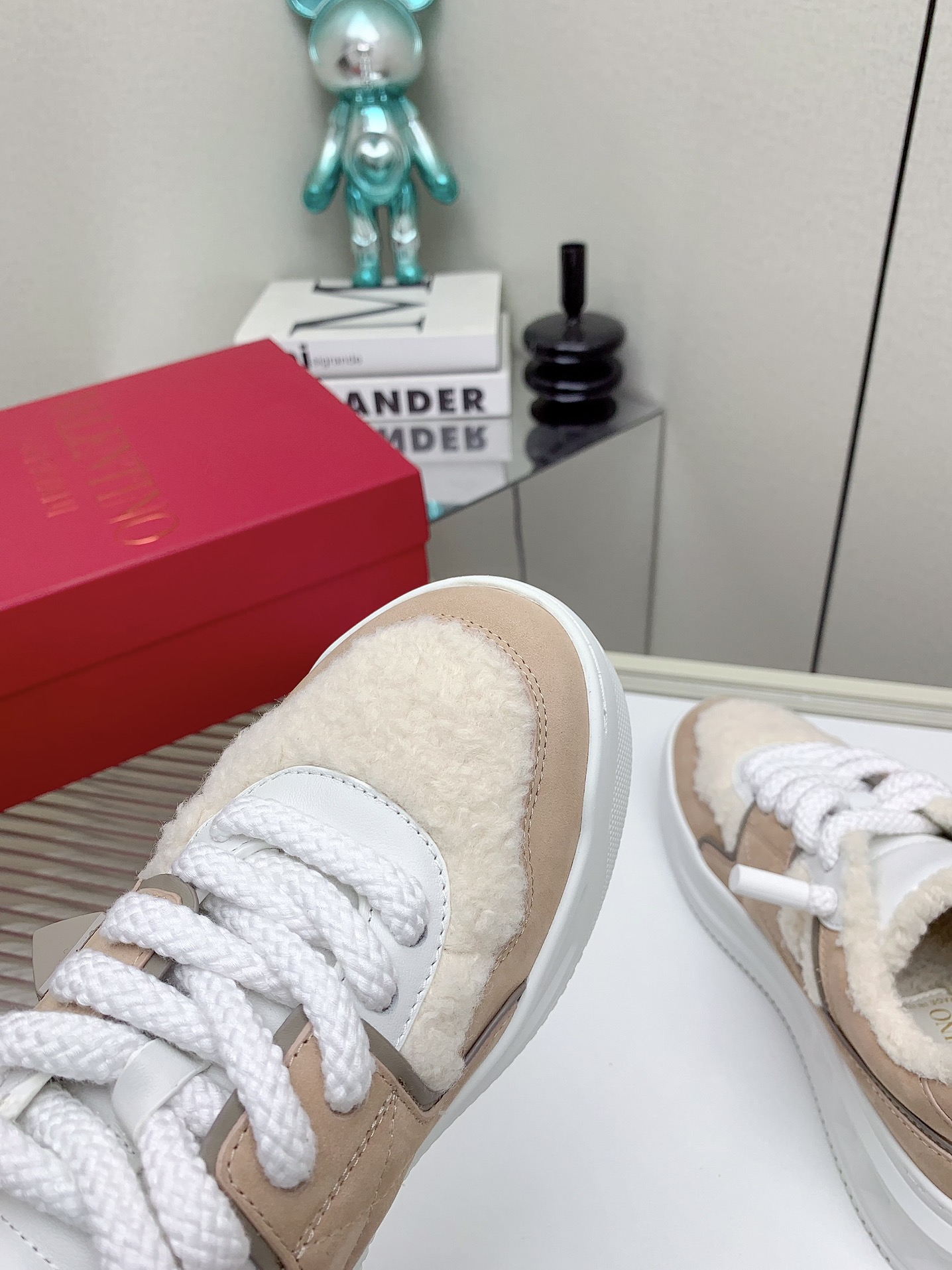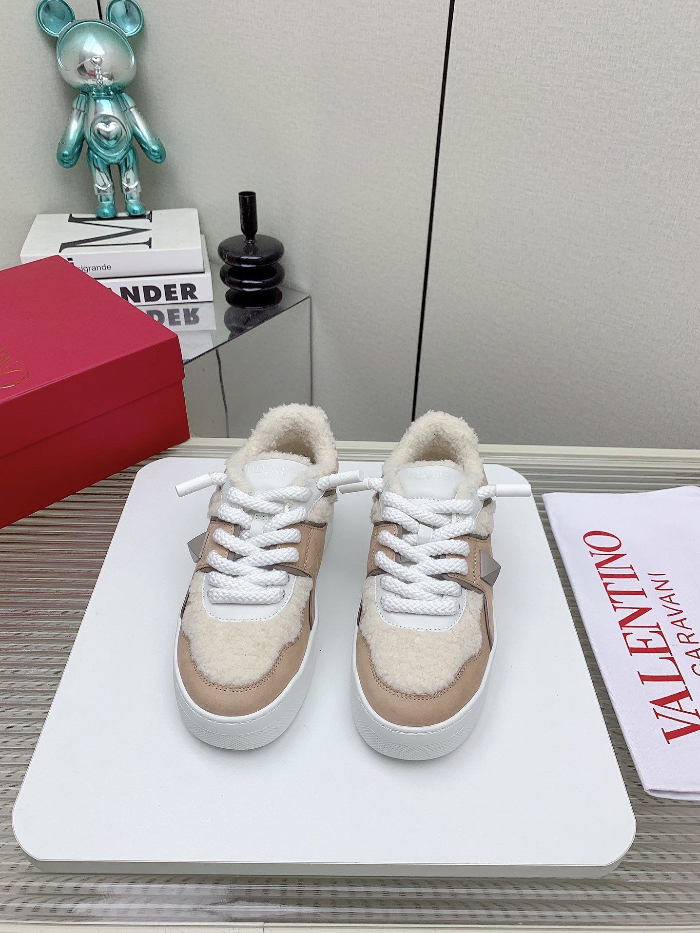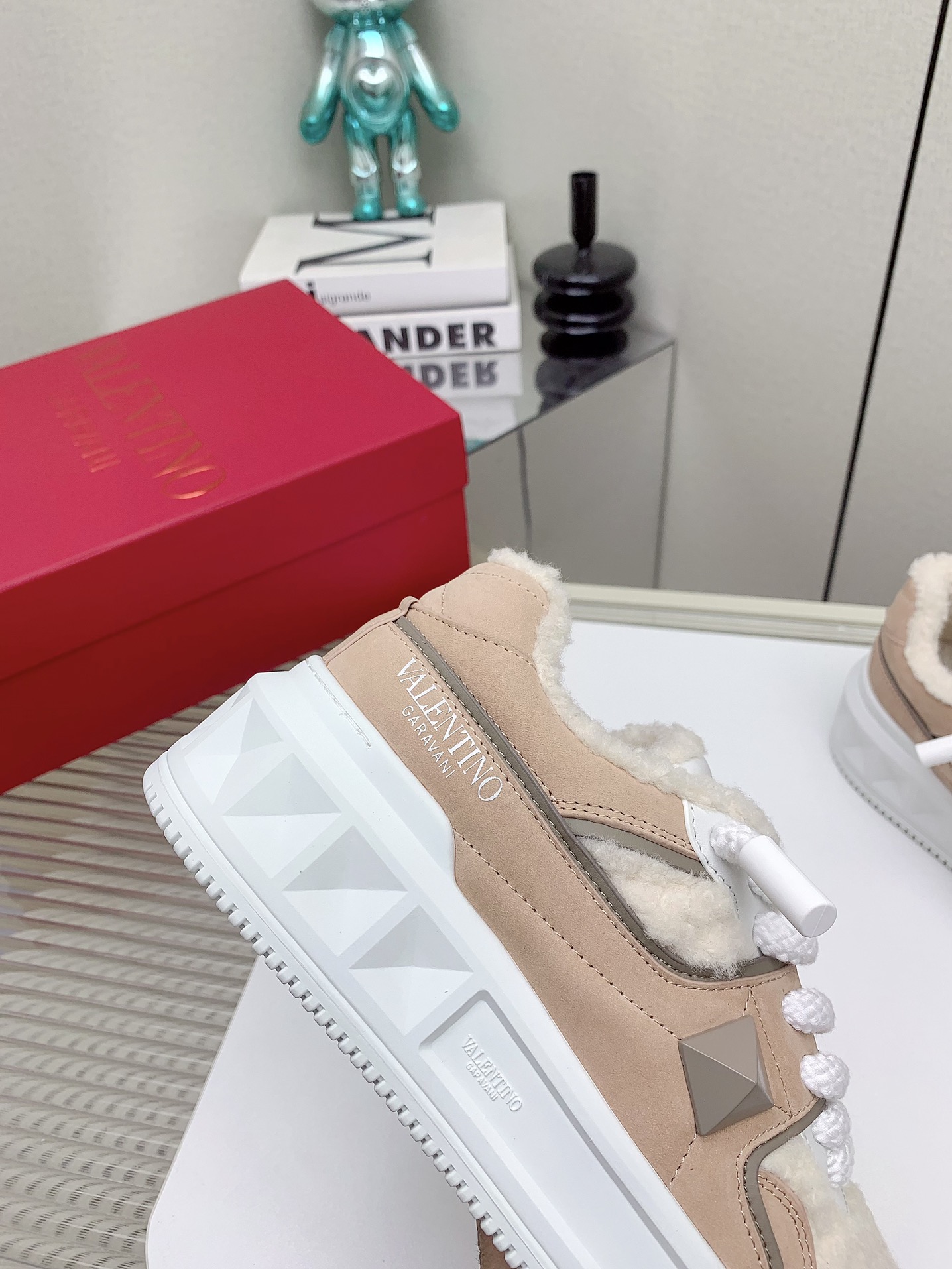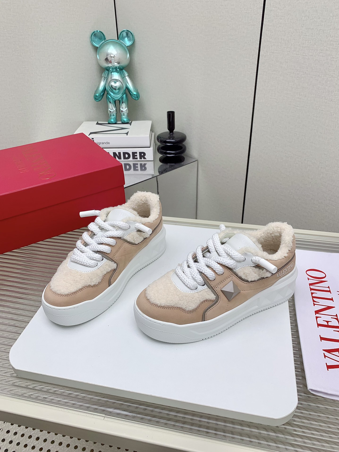 这款鞋子是AAAAA 1:1 质量 (非常棒). 使用了和原版一模一样的材料. 商标部分也保持了和华伦天奴/Valentino一样. 图片拍摄是实物鞋子拍摄, 您所收到的实物保证和我们图片一模一样.