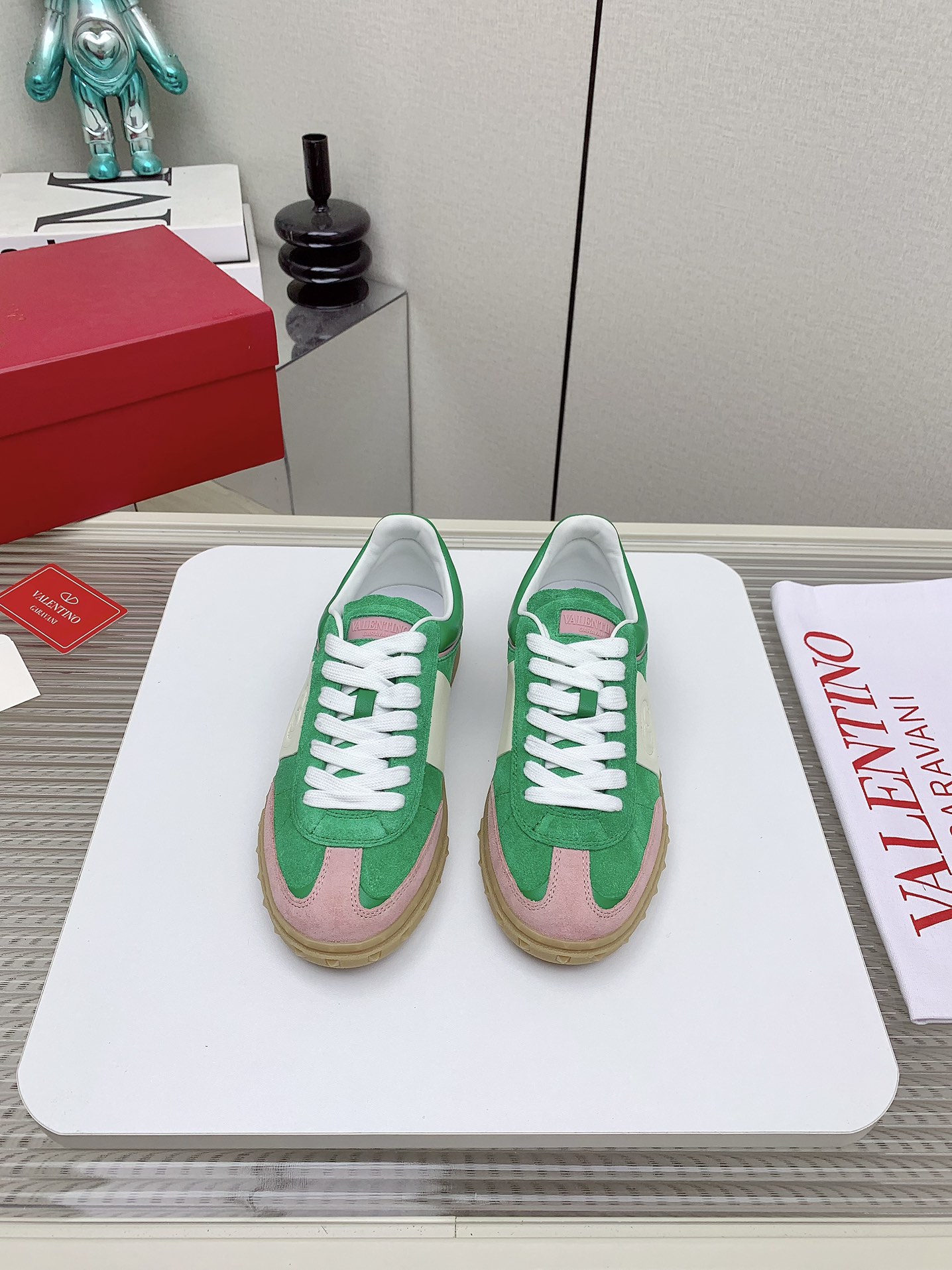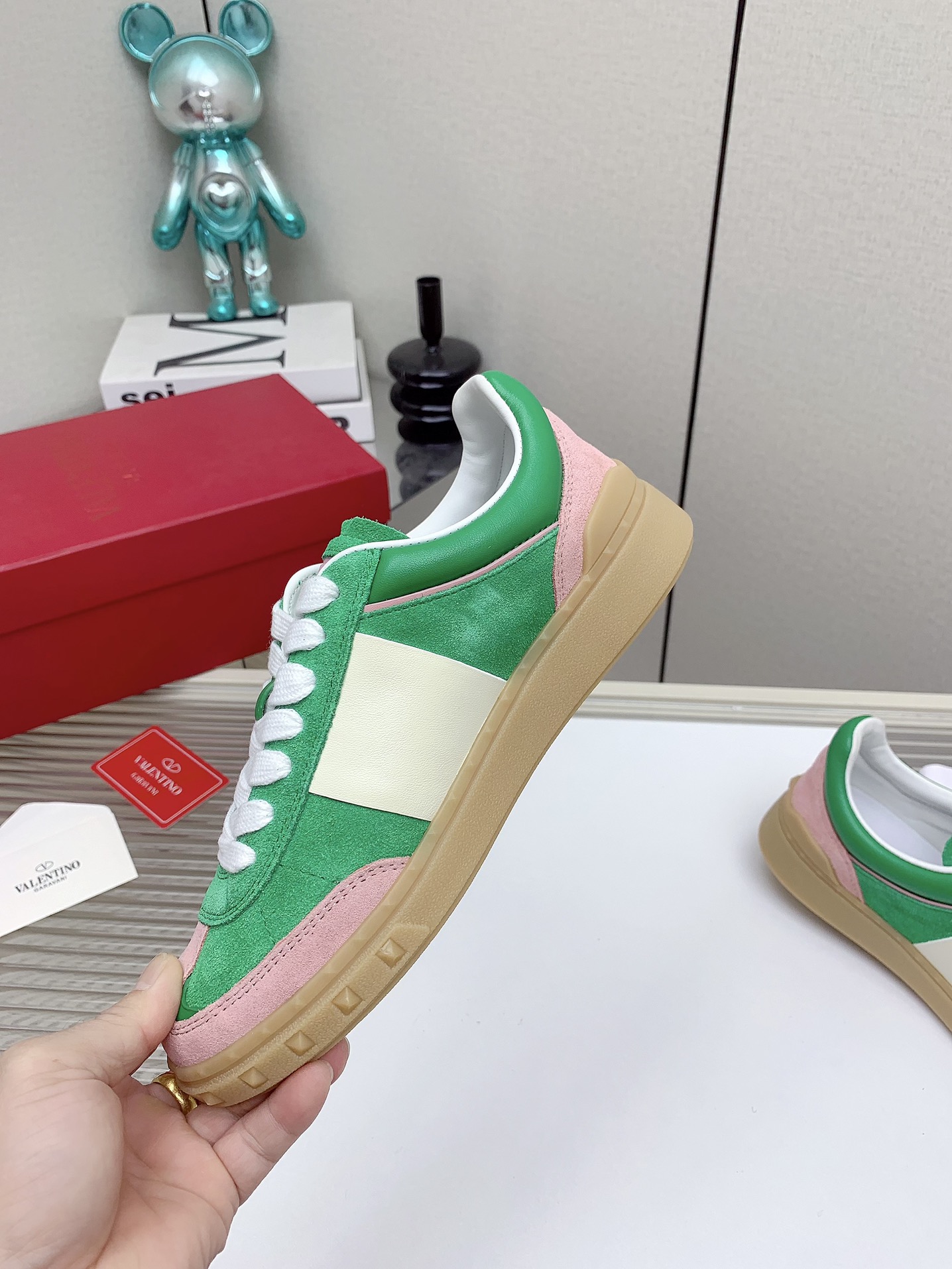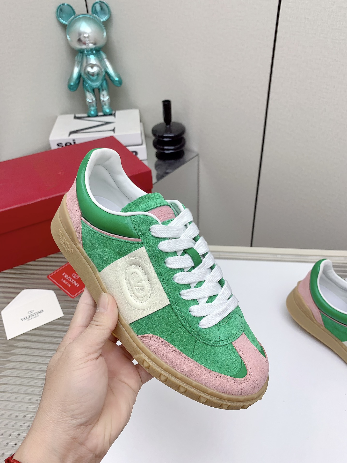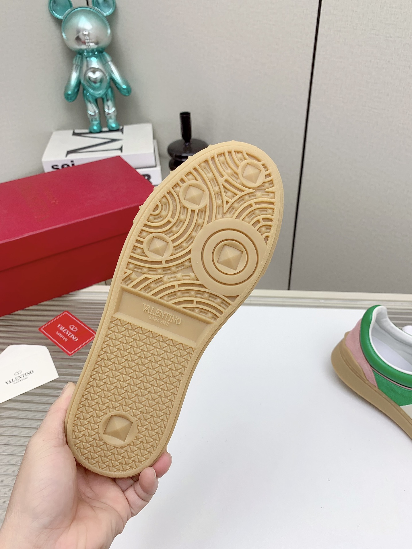 这款鞋子是AAAAA 1:1 质量 (非常棒). 使用了和原版一模一样的材料. 商标部分也保持了和华伦天奴/Valentino一样. 图片拍摄是实物鞋子拍摄, 您所收到的实物保证和我们图片一模一样.