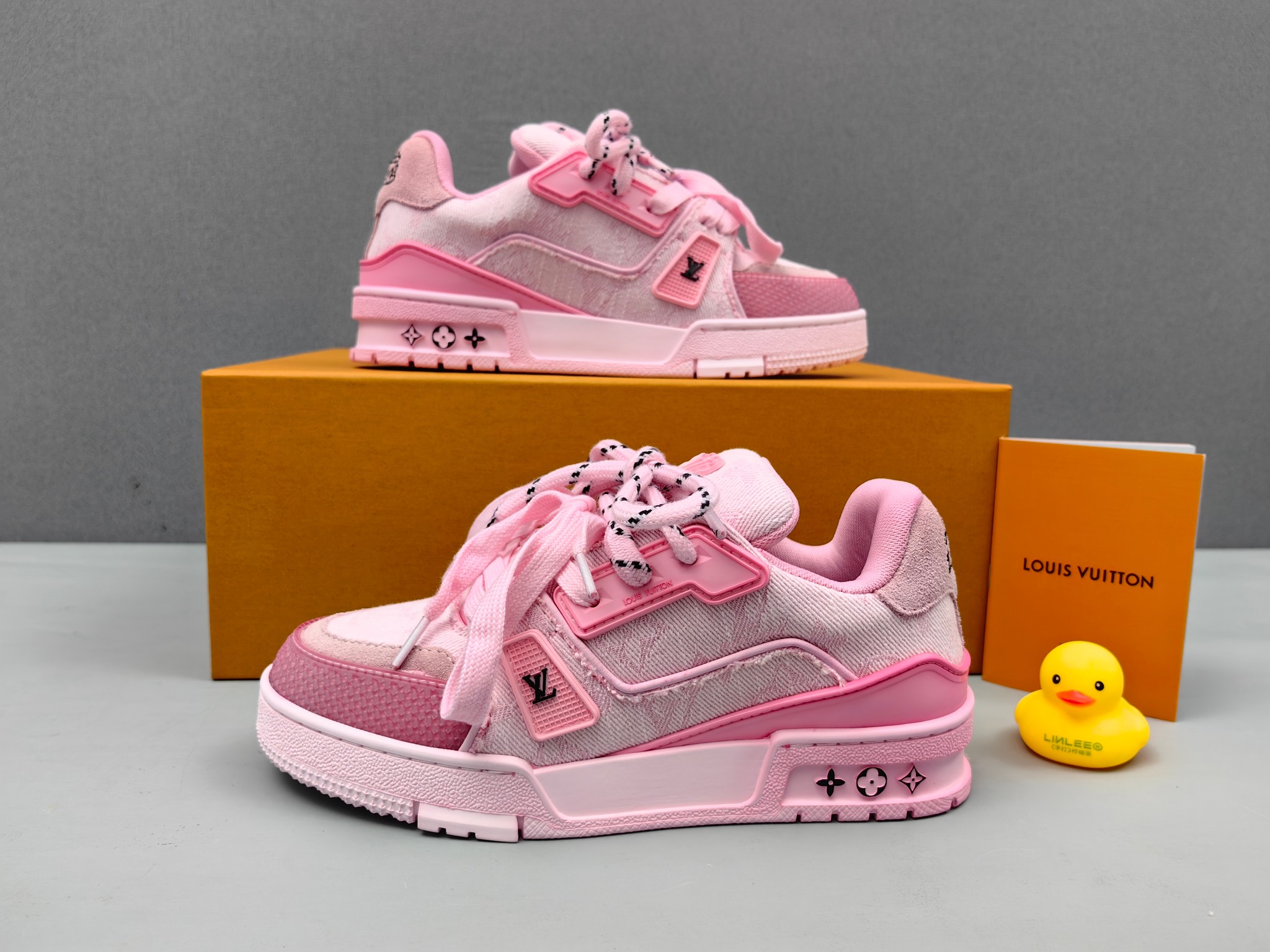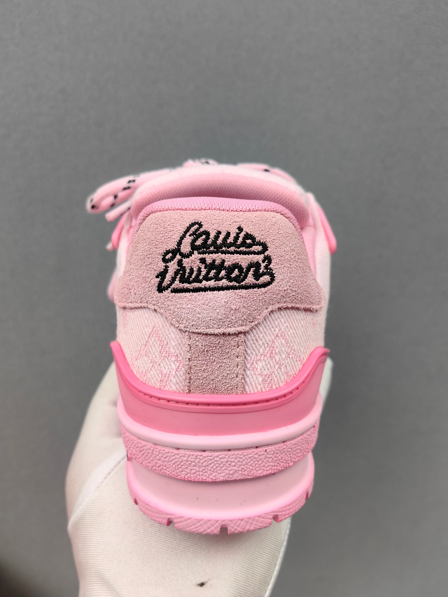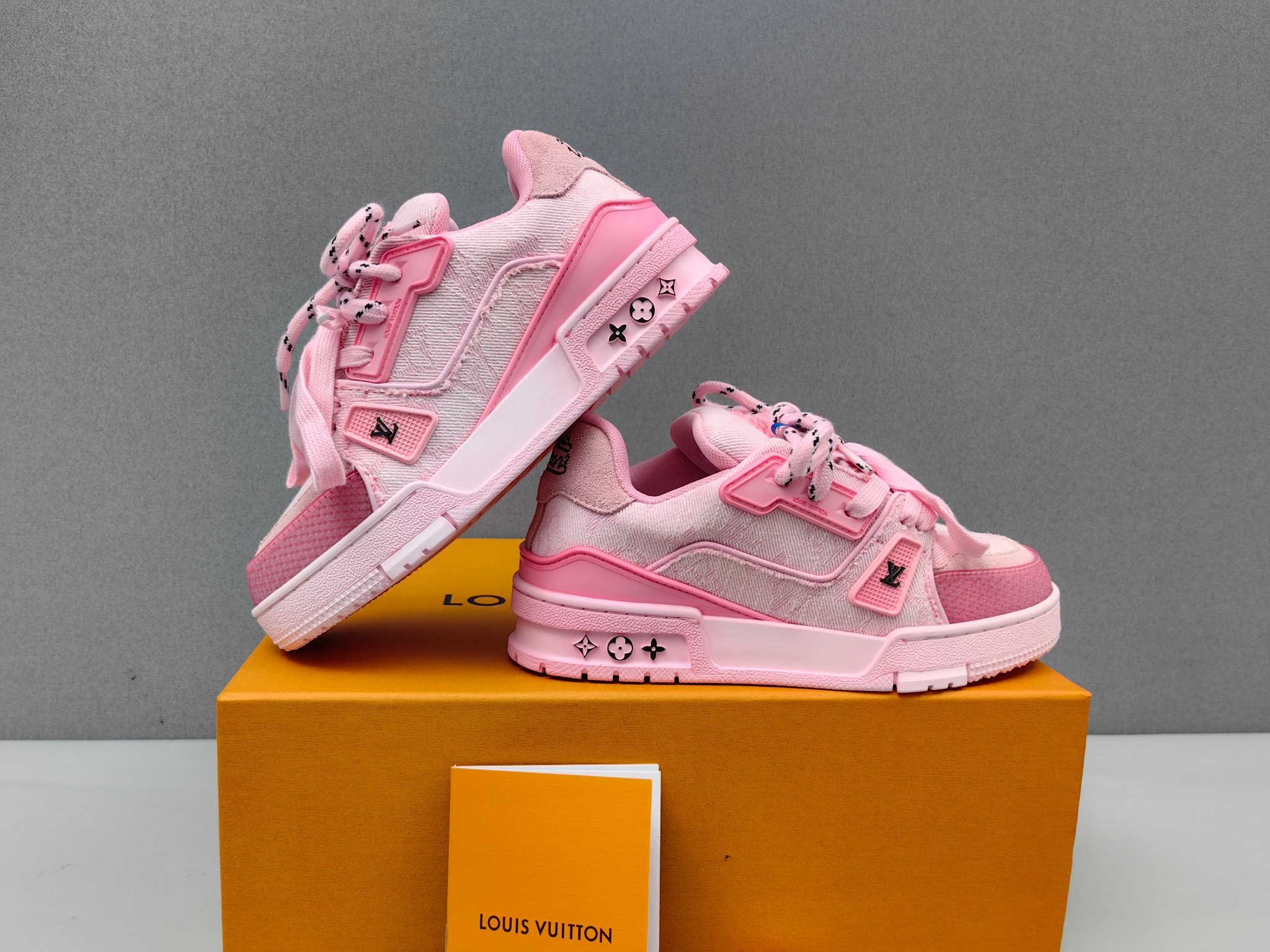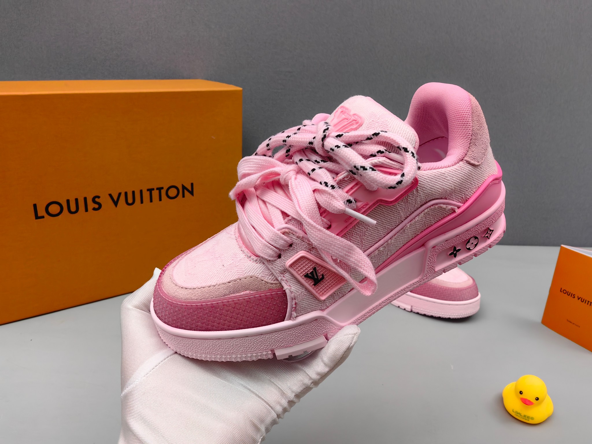 这款鞋子是AAAAA 1:1 质量 (非常棒). 使用了和原版一模一样的材料. 商标部分也保持了和路易威登/Louis Vuitton一样. 图片拍摄是实物鞋子拍摄, 您所收到的实物保证和我们图片一模一样.