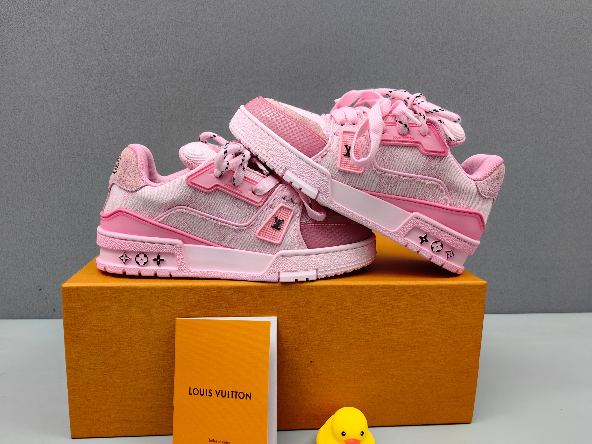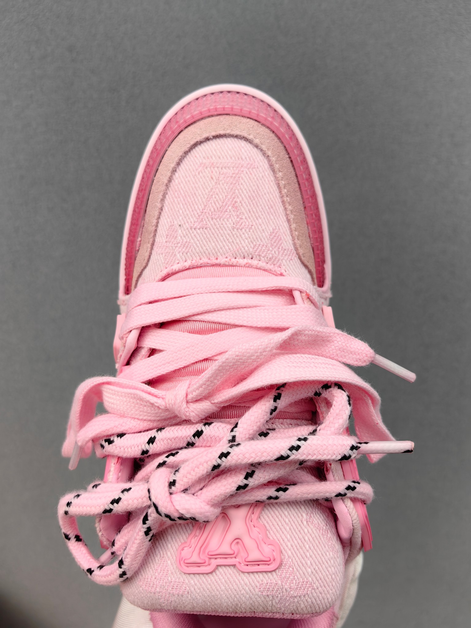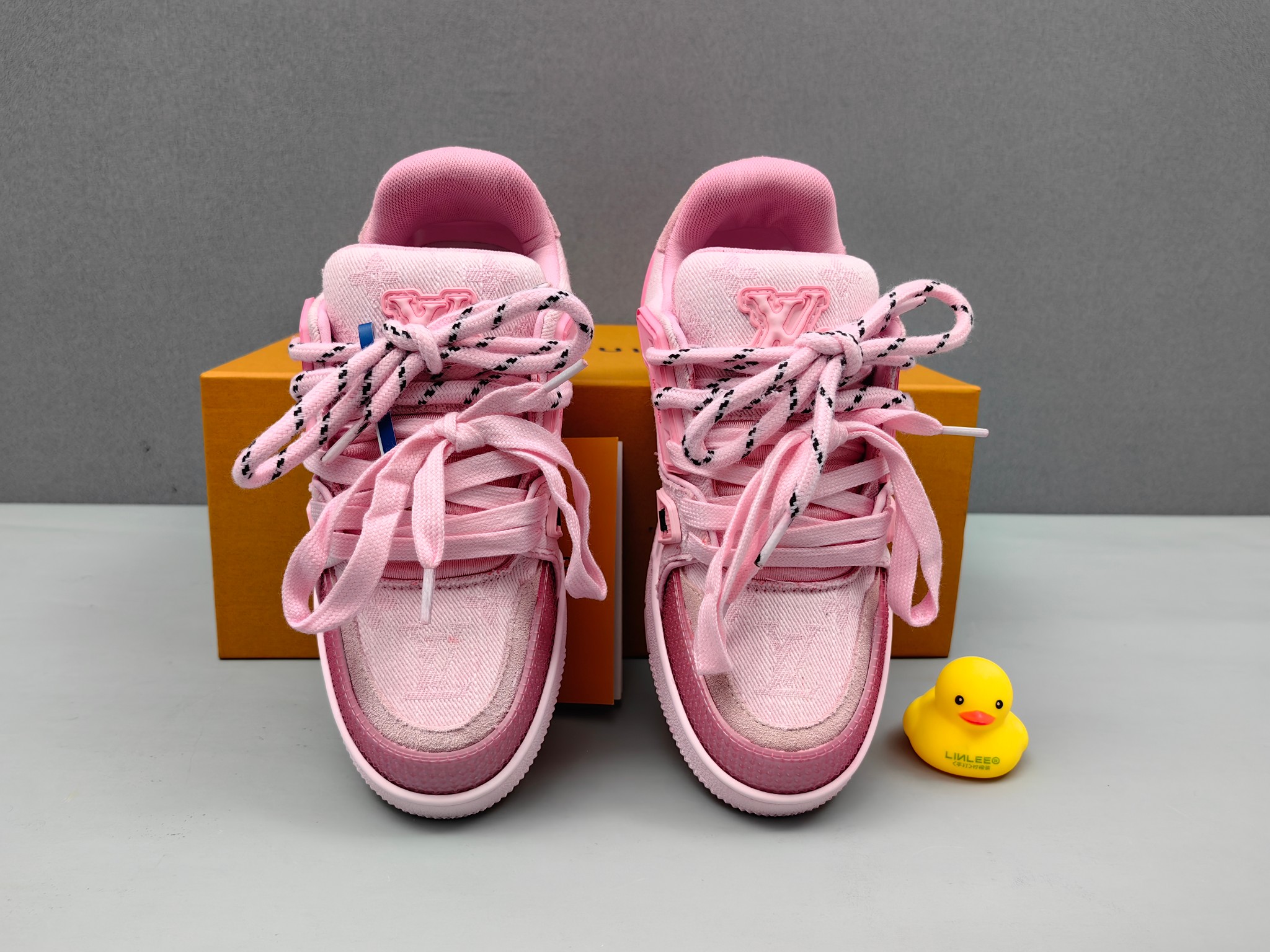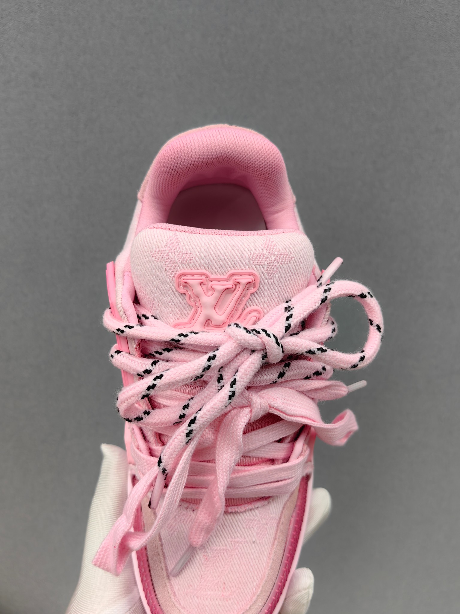 这款鞋子是AAAAA 1:1 质量 (非常棒). 使用了和原版一模一样的材料. 商标部分也保持了和路易威登/Louis Vuitton一样. 图片拍摄是实物鞋子拍摄, 您所收到的实物保证和我们图片一模一样.