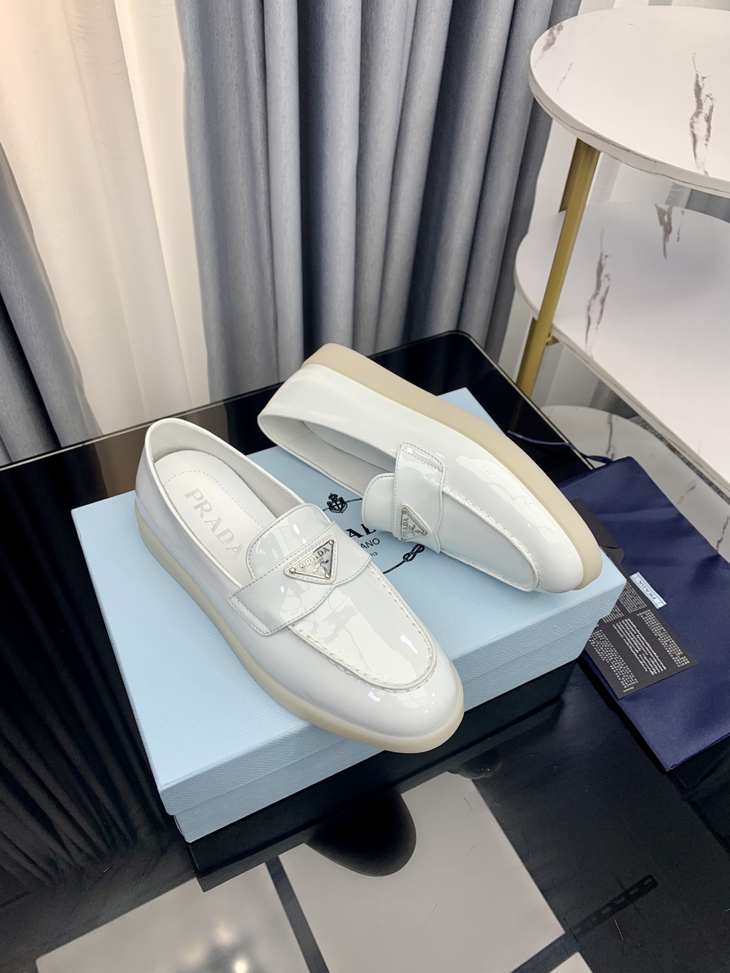 这款鞋子是AAAAA 1:1 质量 (非常棒). 使用了和原版一模一样的材料. 商标部分也保持了和普拉达/Prada一样. 图片拍摄是实物鞋子拍摄, 您所收到的实物保证和我们图片一模一样.