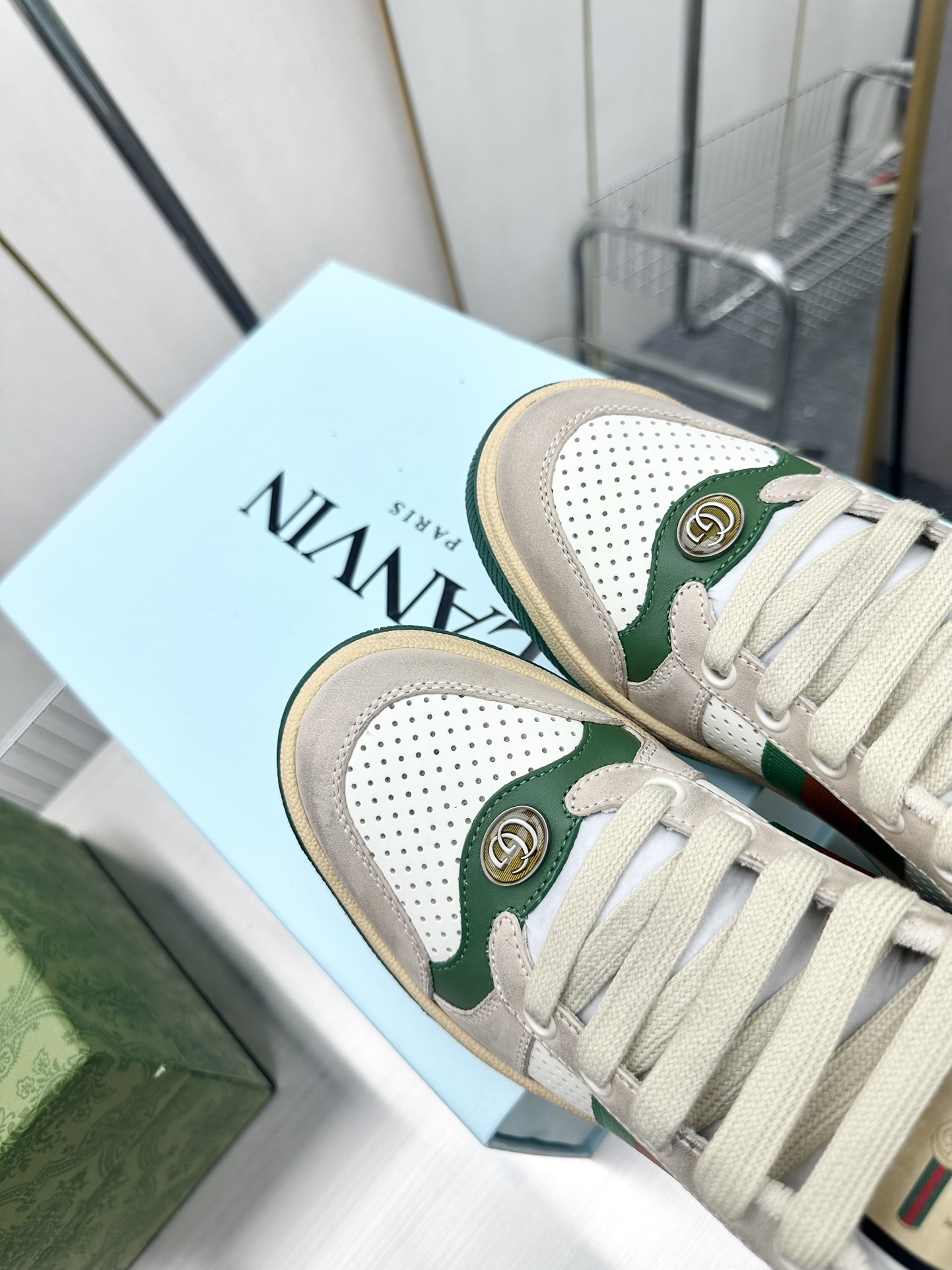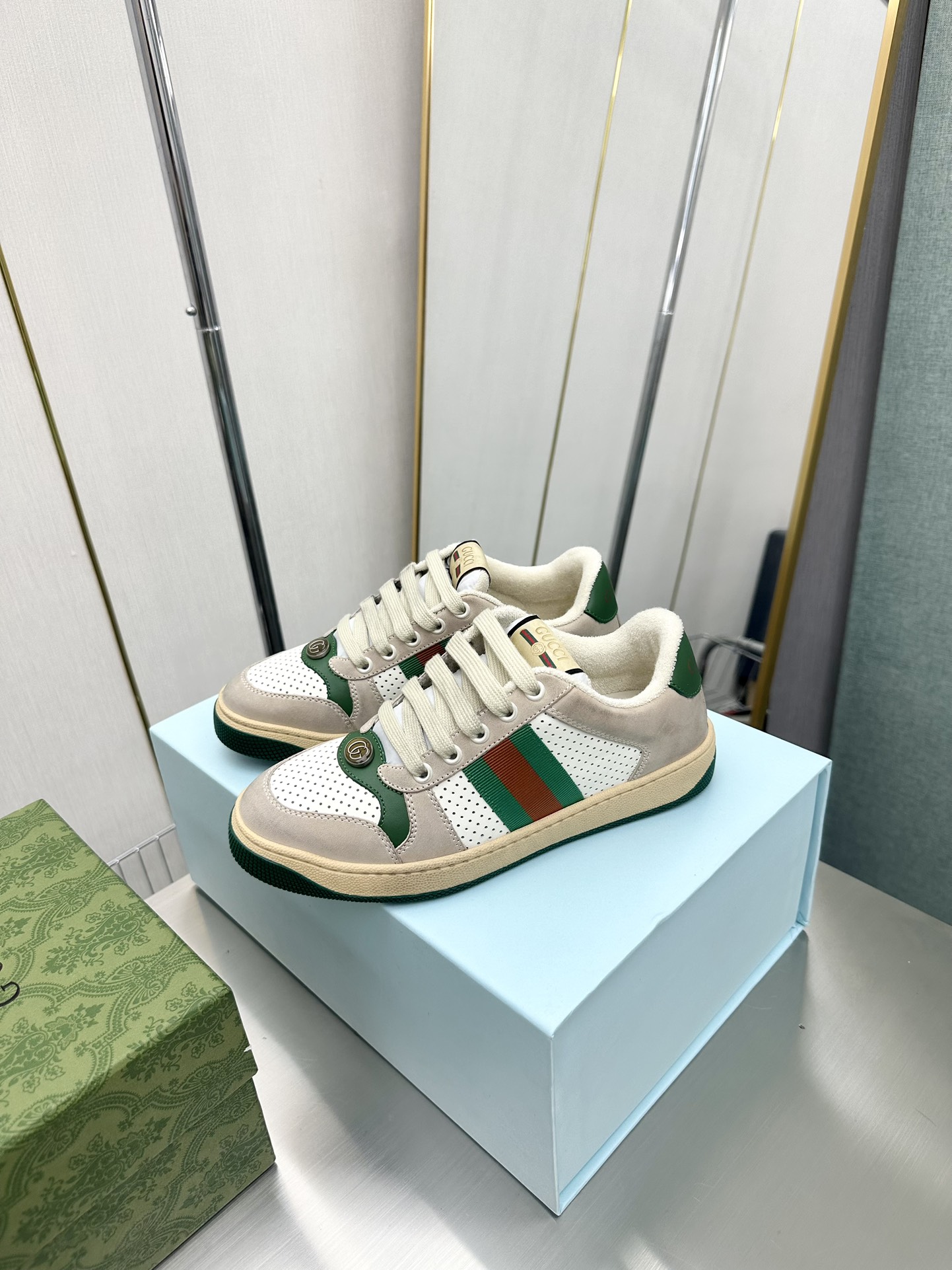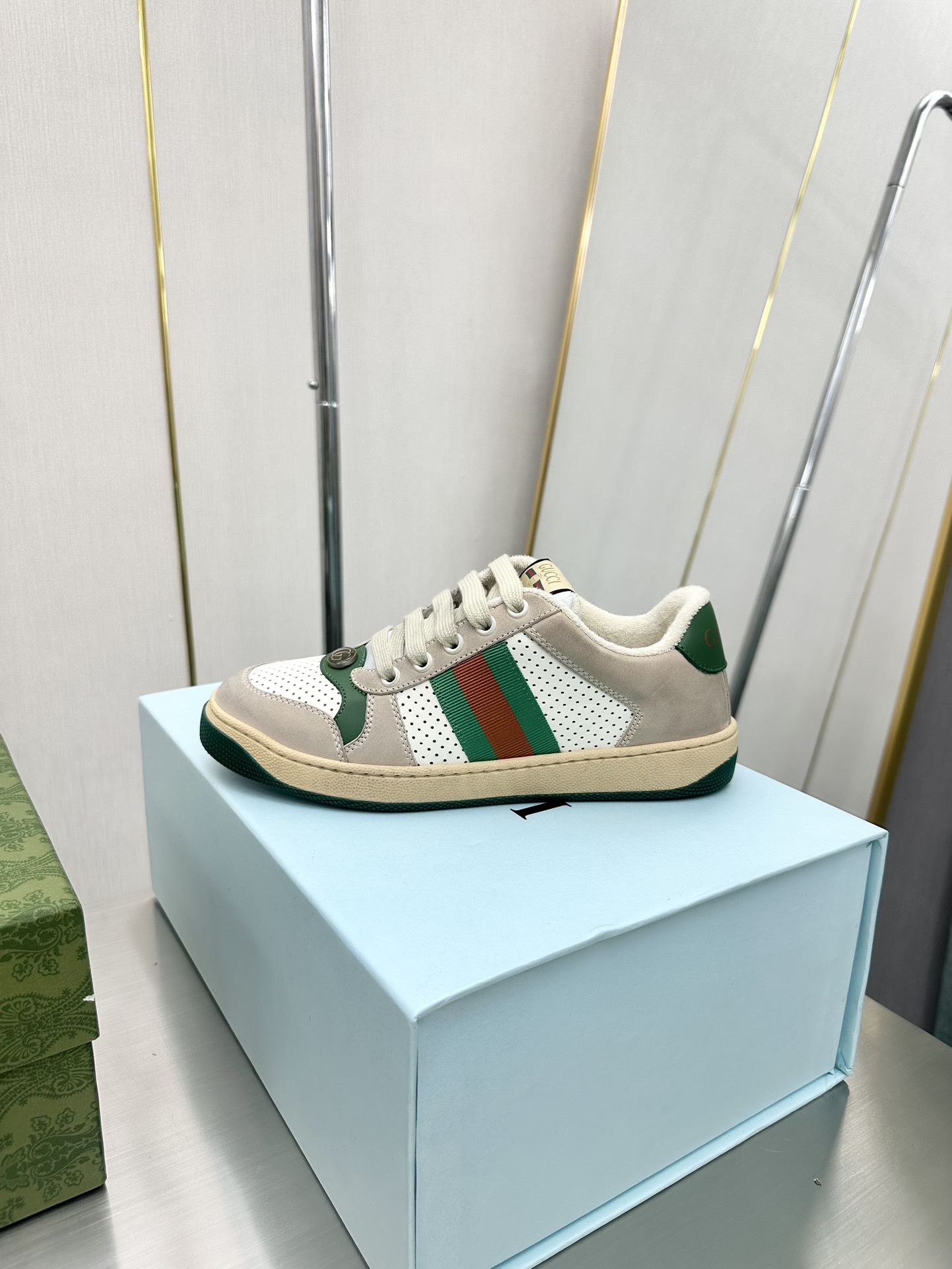 这款鞋子是AAAAA 1:1 质量 (非常棒). 使用了和原版一模一样的材料. 商标部分也保持了和古奇/Gucci一样. 图片拍摄是实物鞋子拍摄, 您所收到的实物保证和我们图片一模一样.