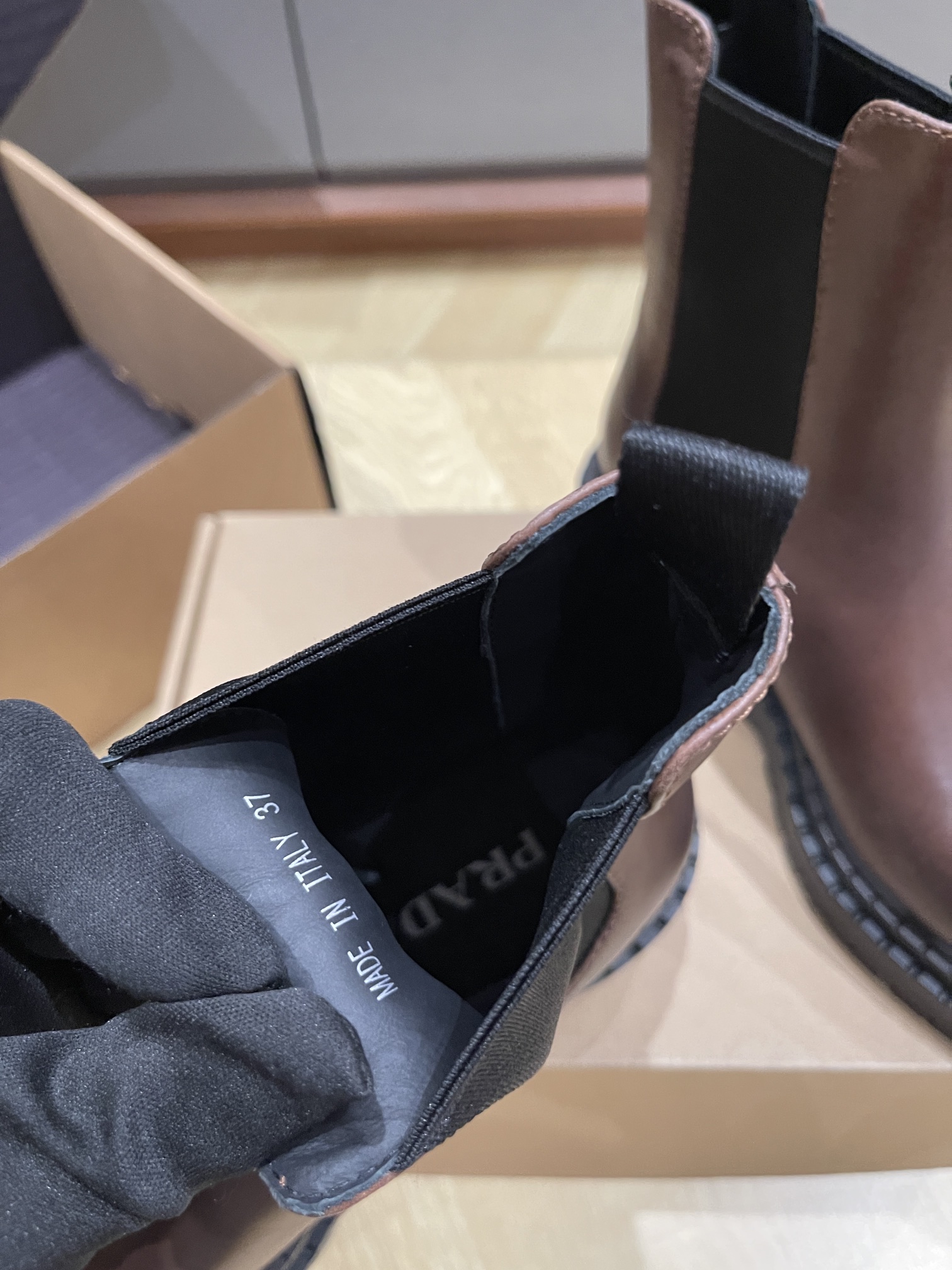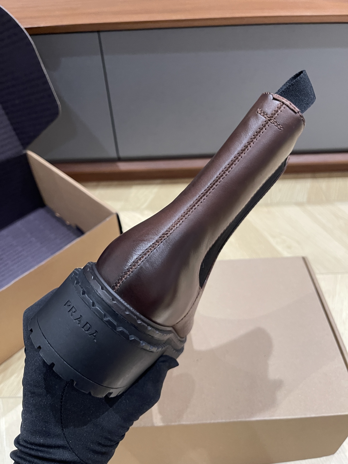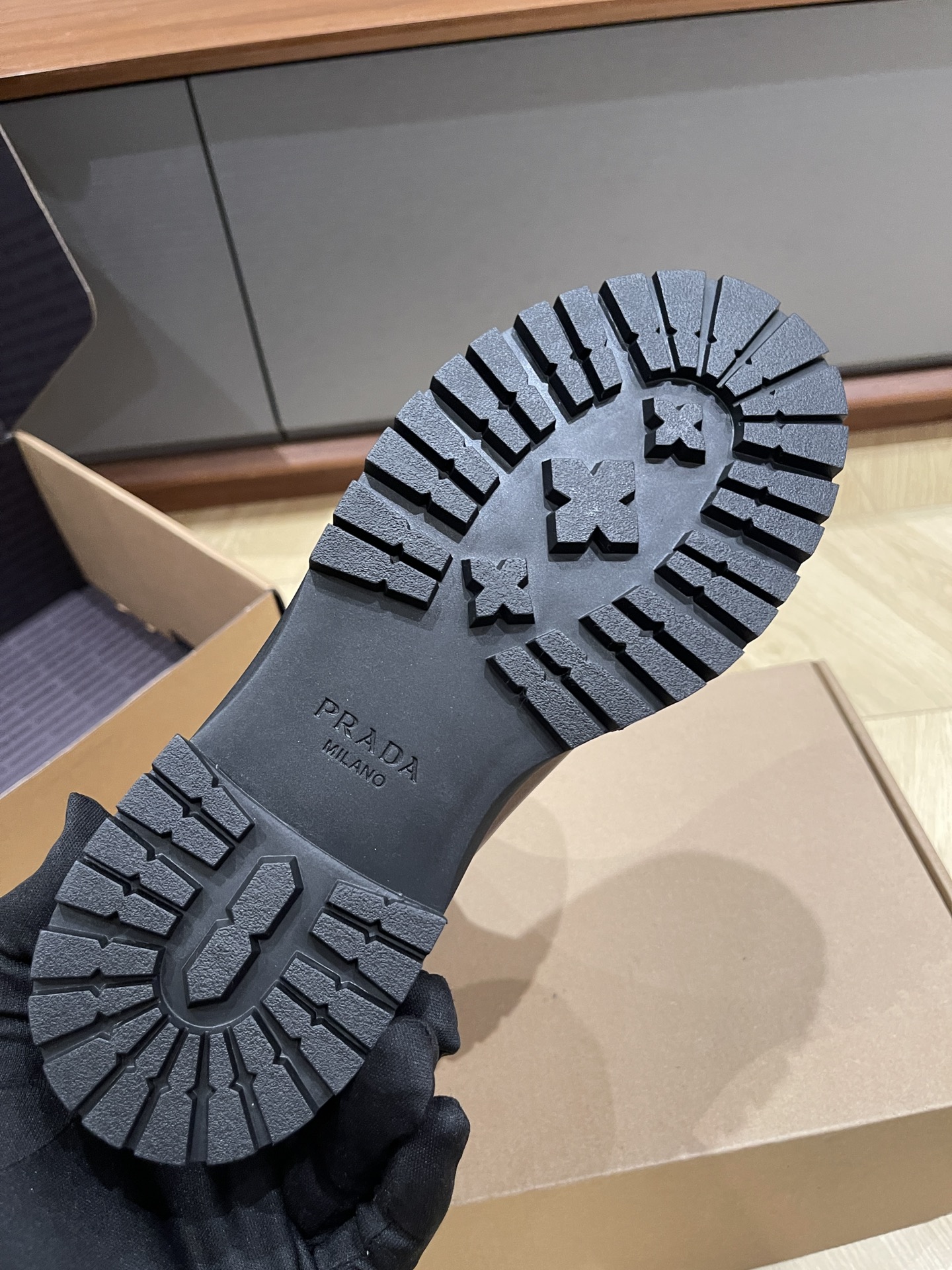 这款鞋子是AAAAA 1:1 质量 (非常棒). 使用了和原版一模一样的材料. 商标部分也保持了和普拉达/Prada一样. 图片拍摄是实物鞋子拍摄, 您所收到的实物保证和我们图片一模一样.
