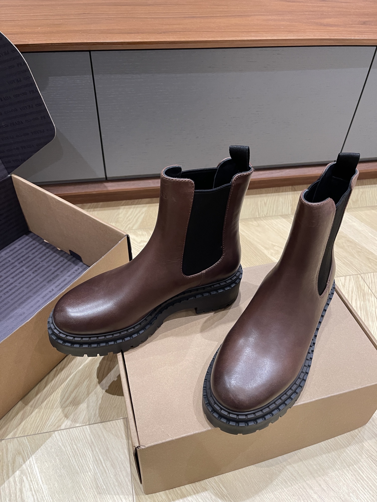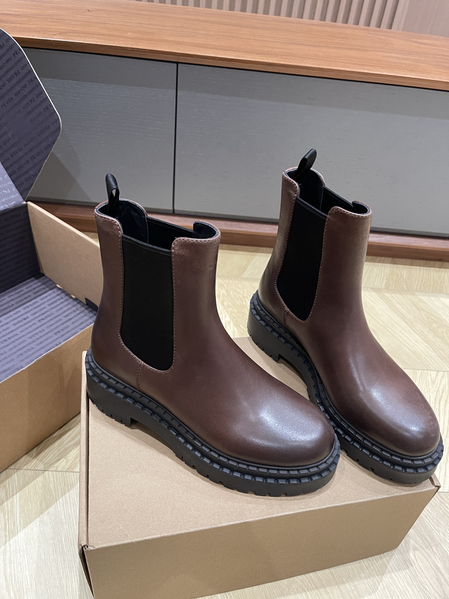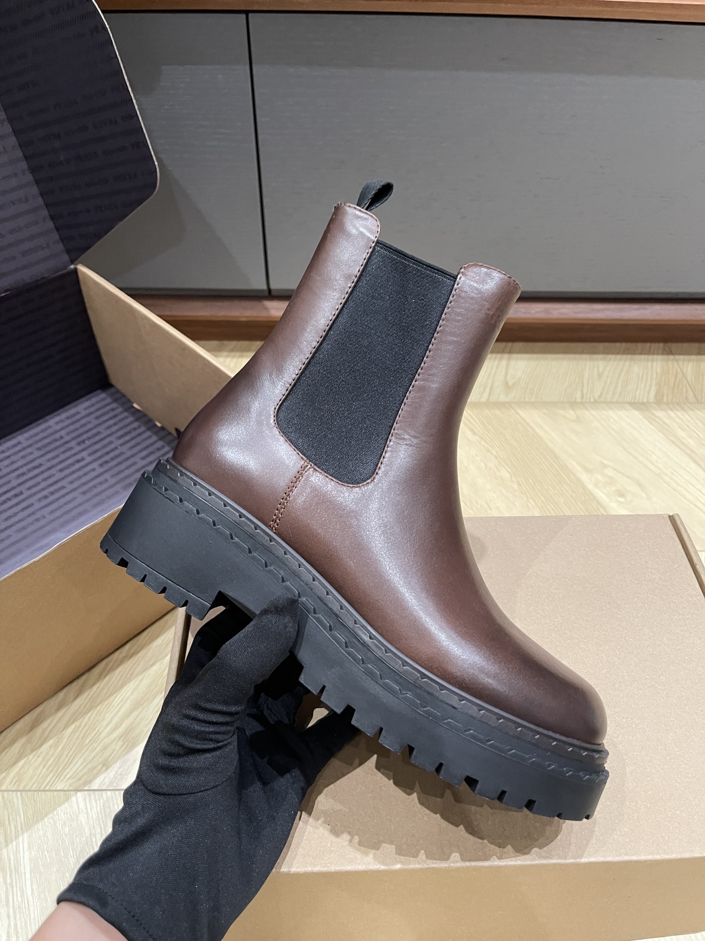 这款鞋子是AAAAA 1:1 质量 (非常棒). 使用了和原版一模一样的材料. 商标部分也保持了和普拉达/Prada一样. 图片拍摄是实物鞋子拍摄, 您所收到的实物保证和我们图片一模一样.