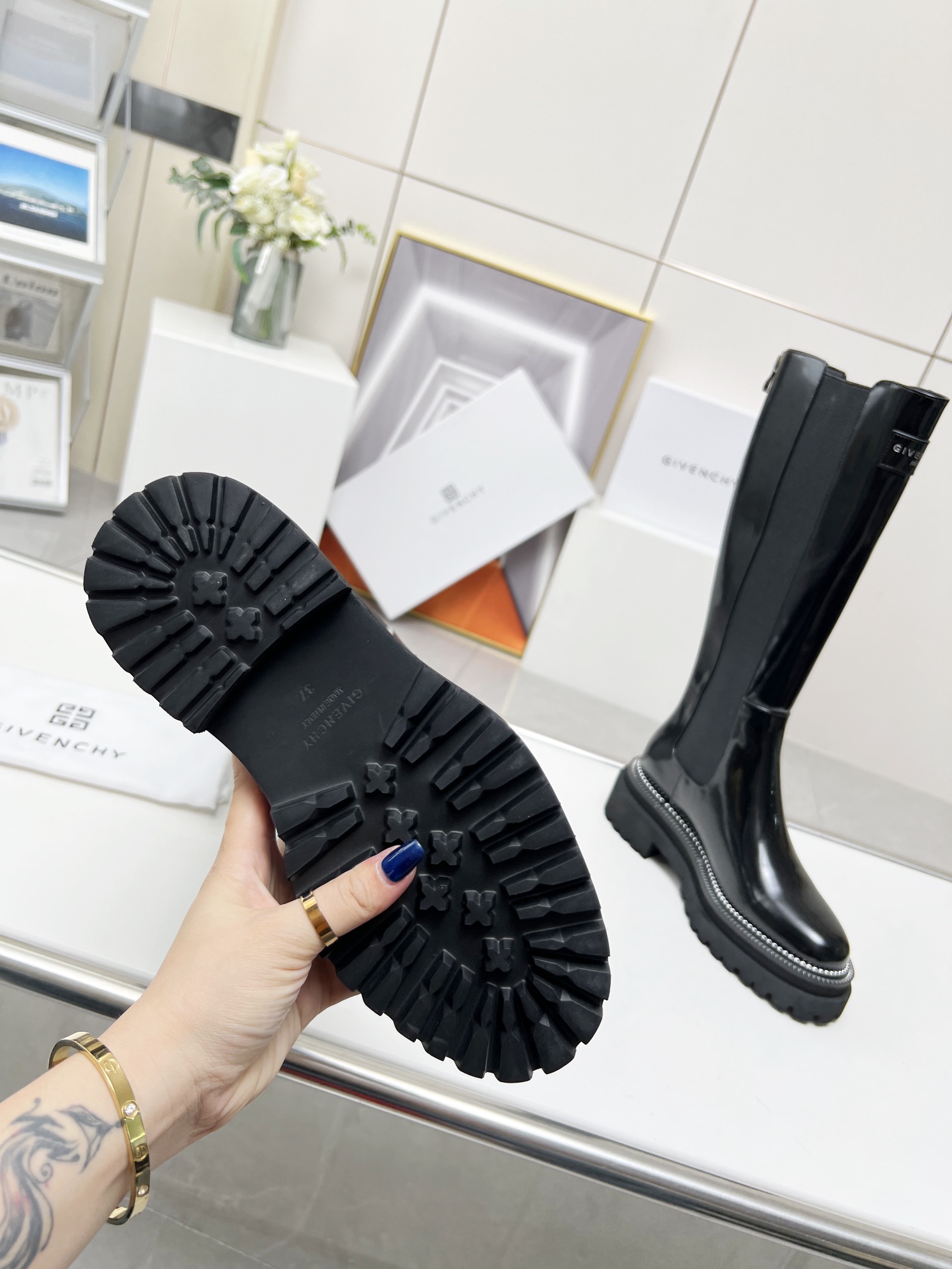 这款鞋子是AAAAA 1:1 质量 (非常棒). 使用了和原版一模一样的材料. 商标部分也保持了和纪梵希/Givenchy一样. 图片拍摄是实物鞋子拍摄, 您所收到的实物保证和我们图片一模一样.