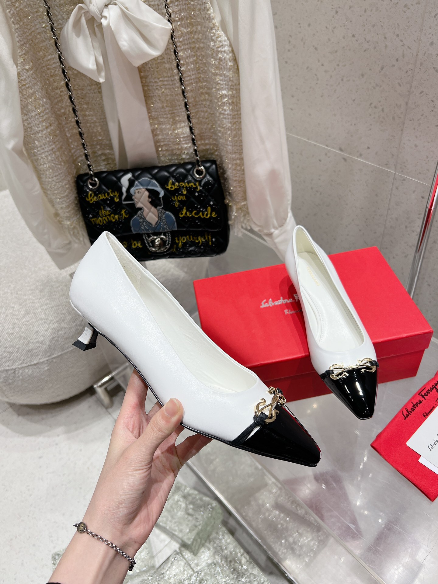 这款鞋子是AAAAA 1:1 质量 (非常棒). 使用了和原版一模一样的材料. 商标部分也保持了和菲拉格慕/Salvatore Ferragamo一样. 图片拍摄是实物鞋子拍摄, 您所收到的实物保证和我们图片一模一样.