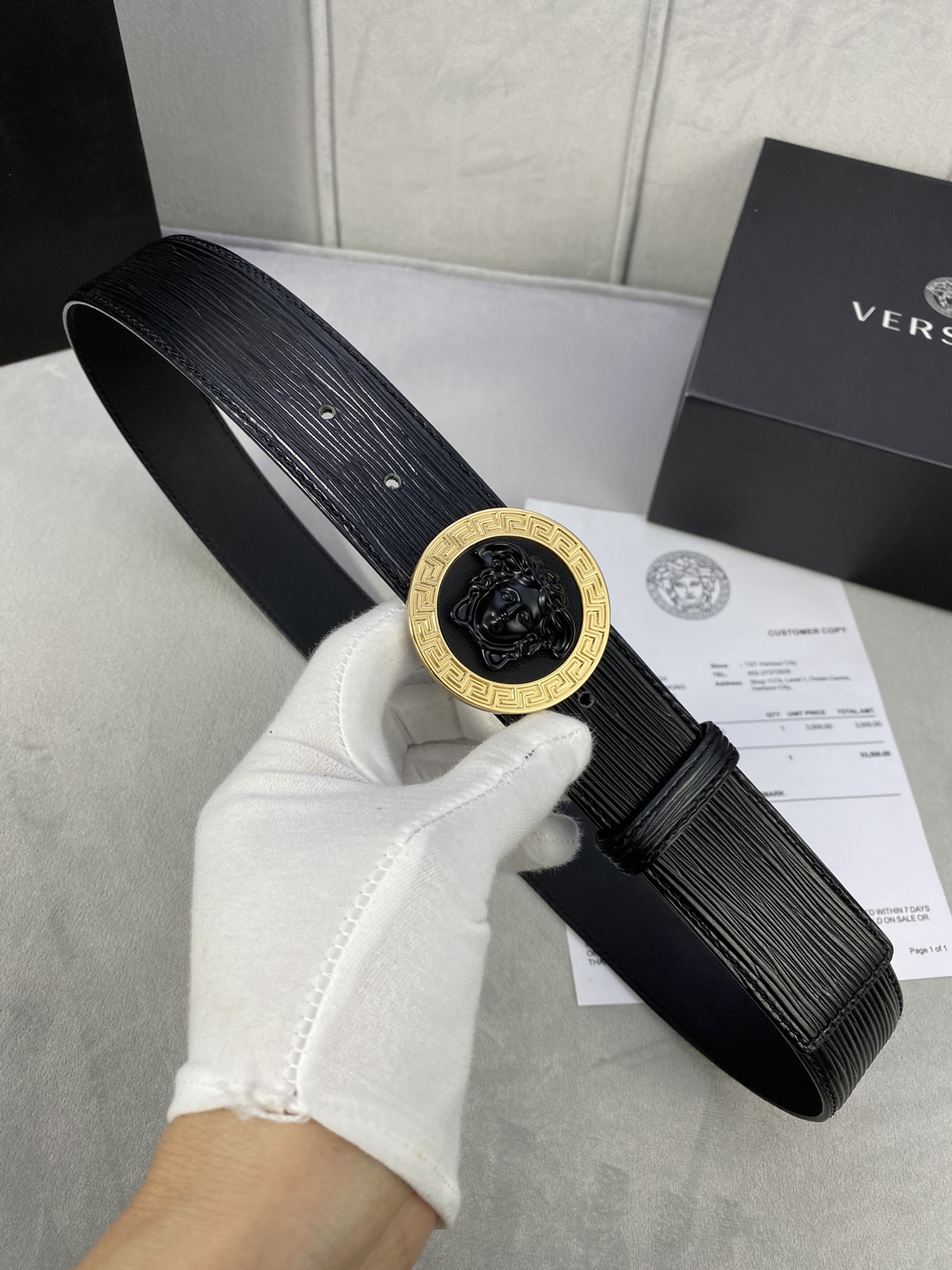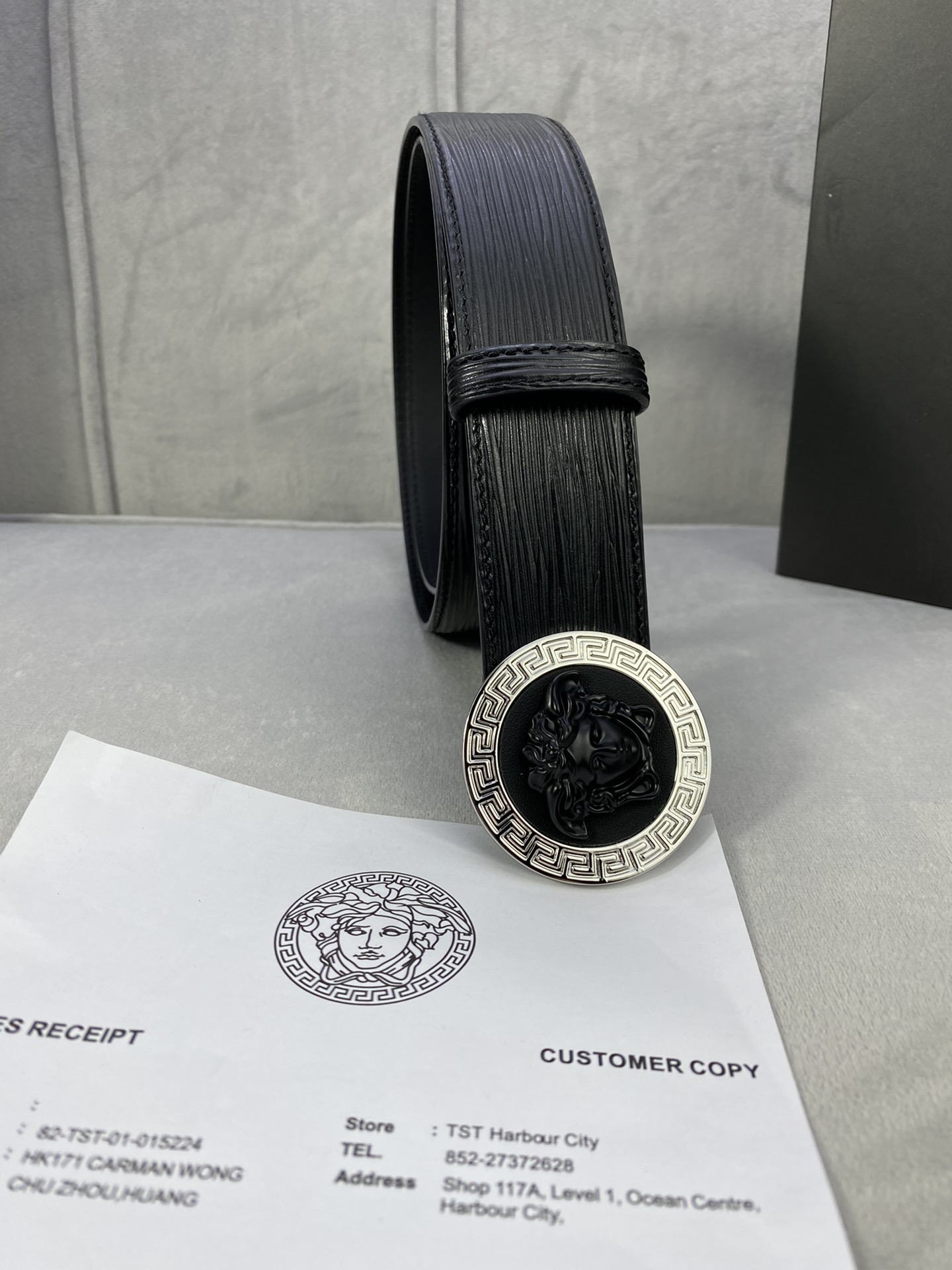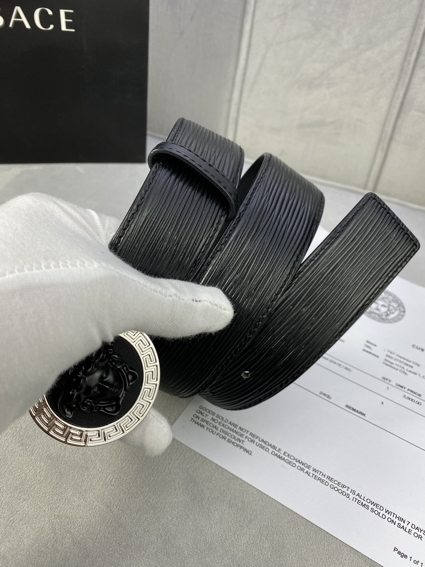 这款皮带是AAAAA 1:1 质量 (非常棒). 使用了和原版一模一样的材料. 商标部分也保持了和范思哲/Versace一样. 图片拍摄是实物皮带拍摄, 您所收到的实物保证和我们图片一模一样.