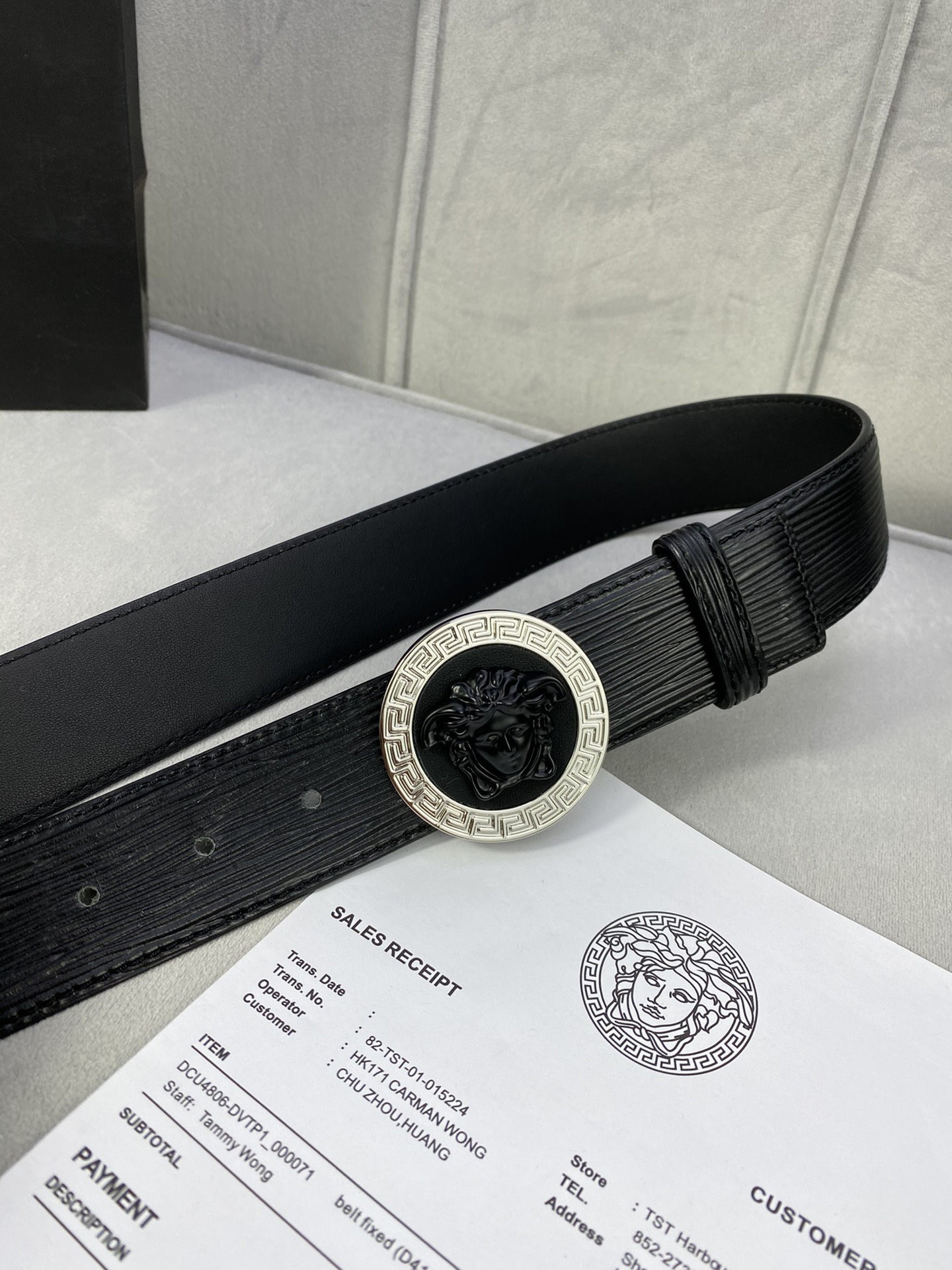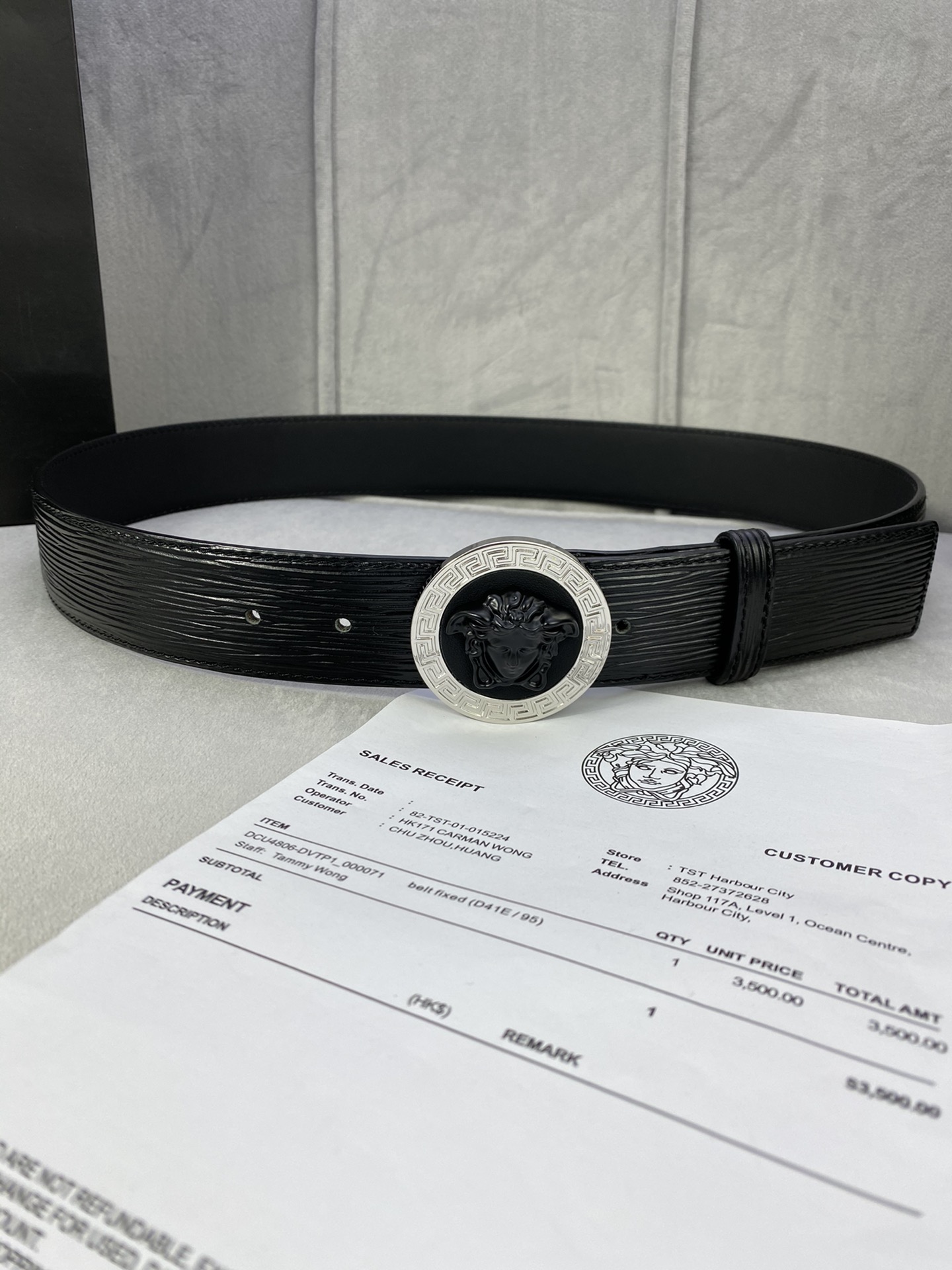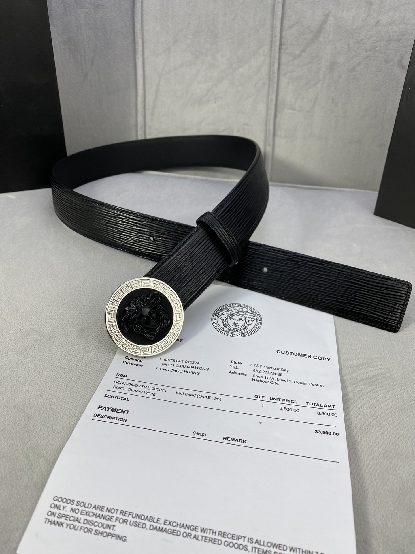 这款皮带是AAAAA 1:1 质量 (非常棒). 使用了和原版一模一样的材料. 商标部分也保持了和范思哲/Versace一样. 图片拍摄是实物皮带拍摄, 您所收到的实物保证和我们图片一模一样.