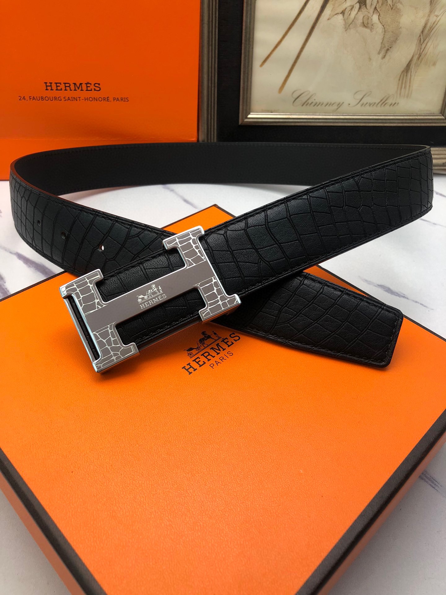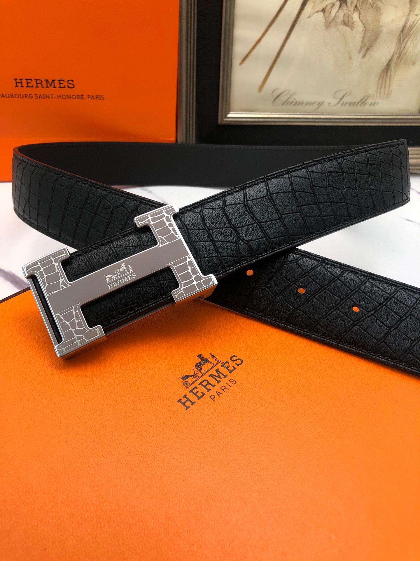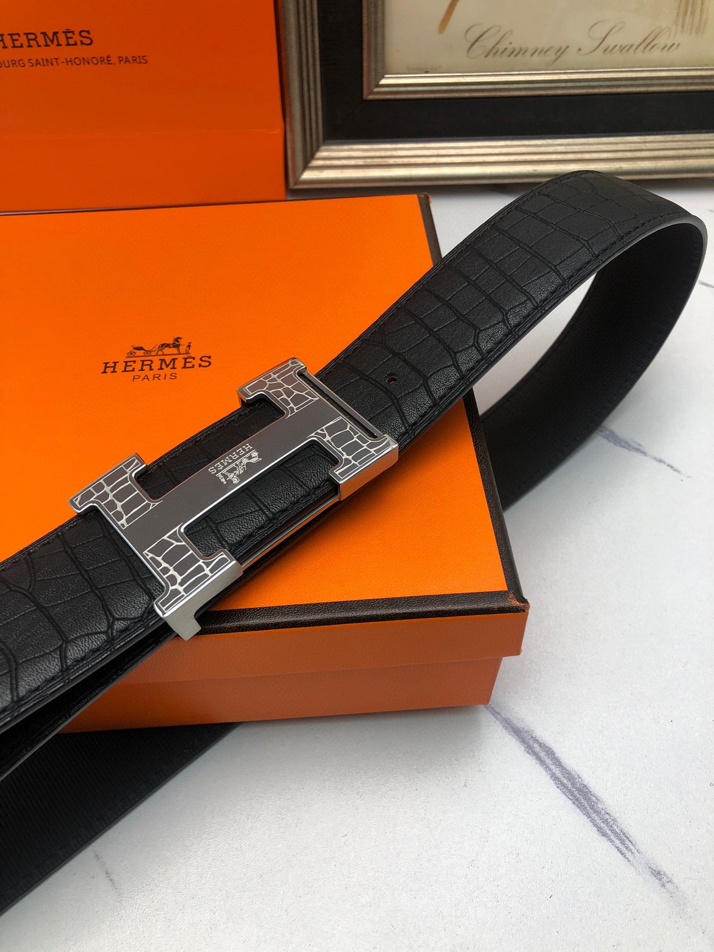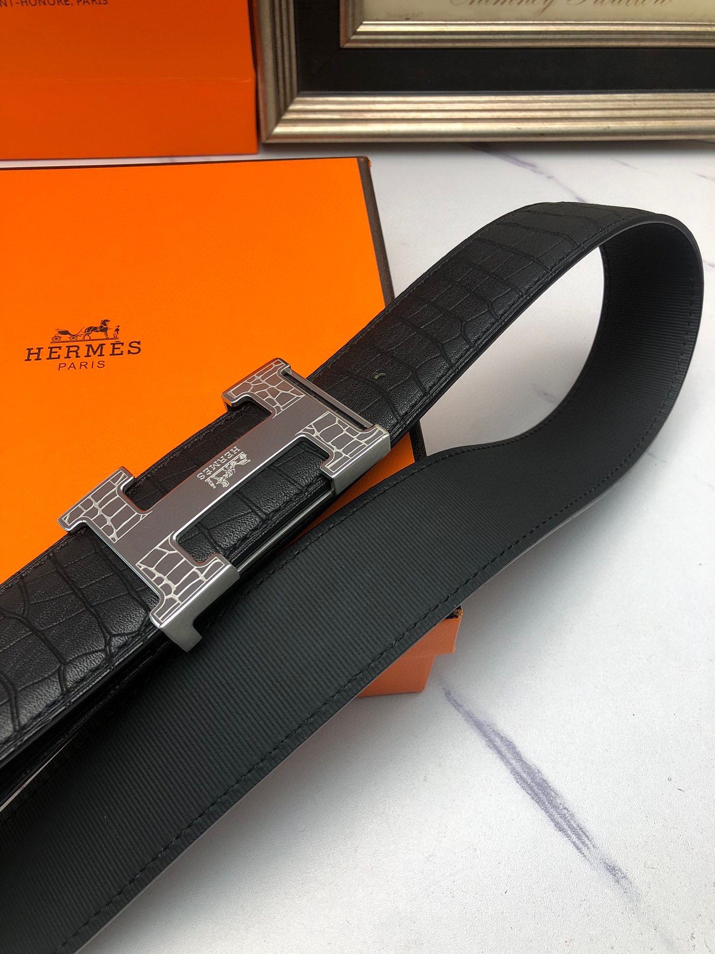 这款皮带是AAAAA 1:1 质量 (非常棒). 使用了和原版一模一样的材料. 商标部分也保持了和爱马仕/Hermes一样. 图片拍摄是实物皮带拍摄, 您所收到的实物保证和我们图片一模一样.