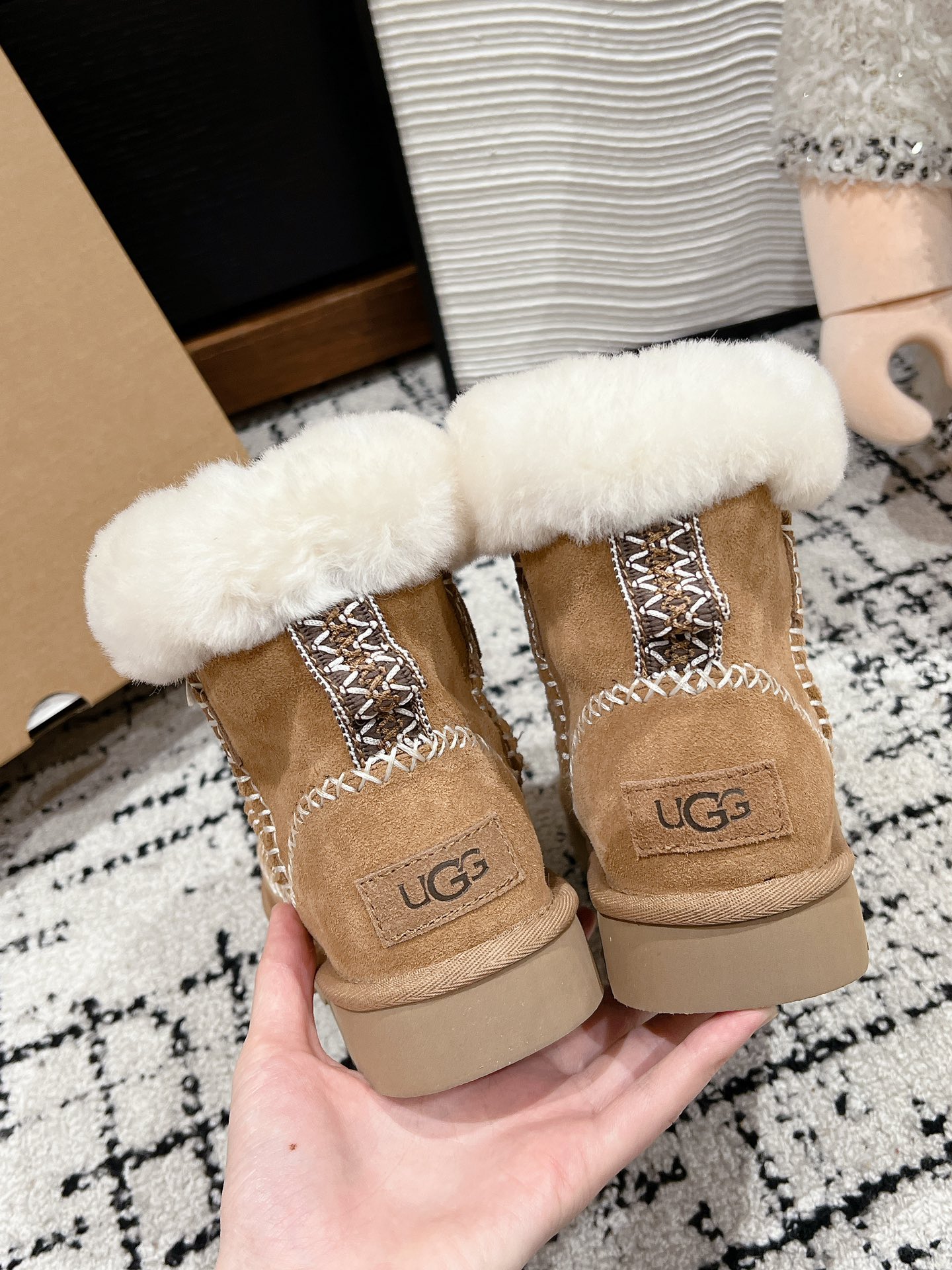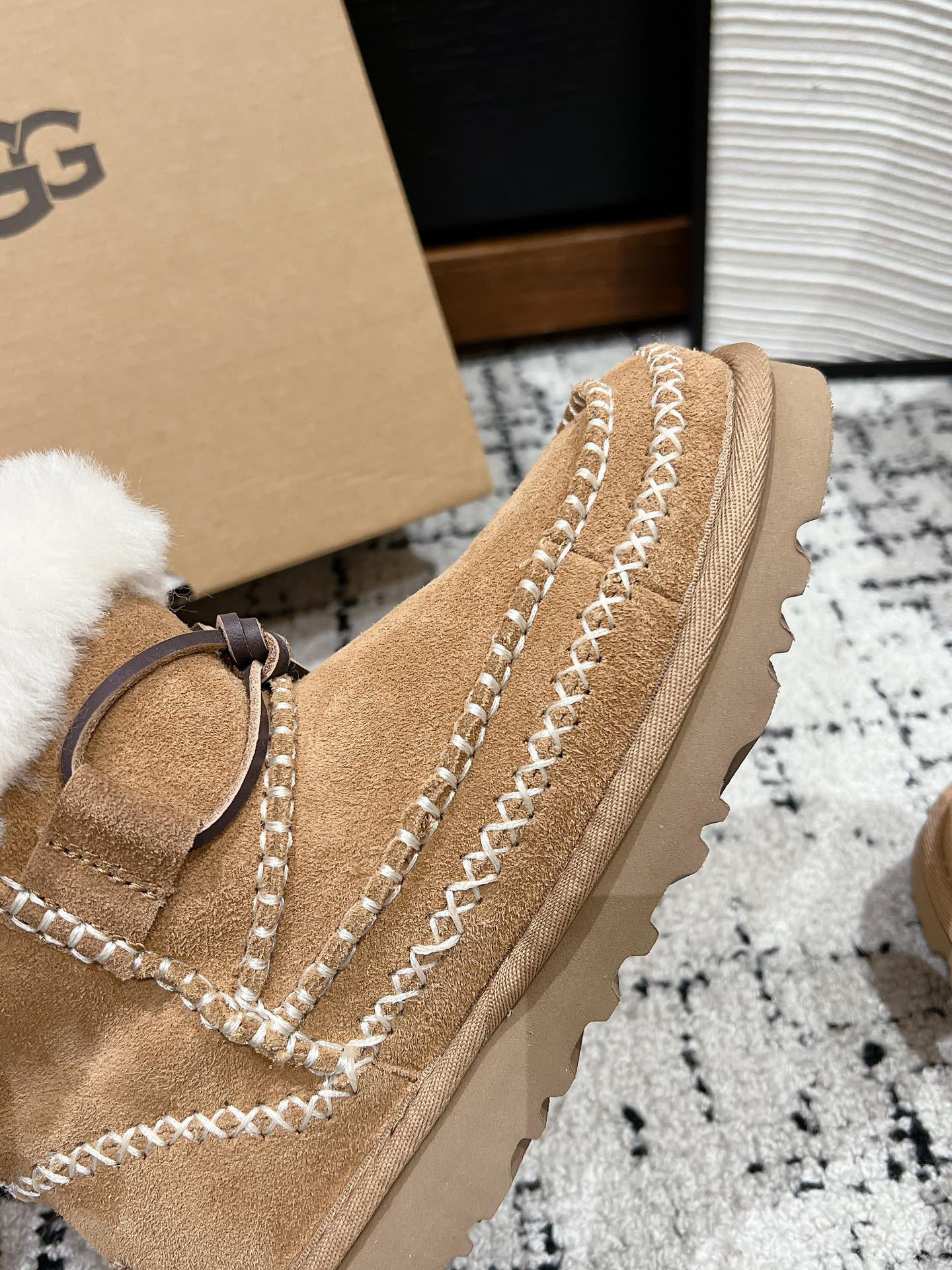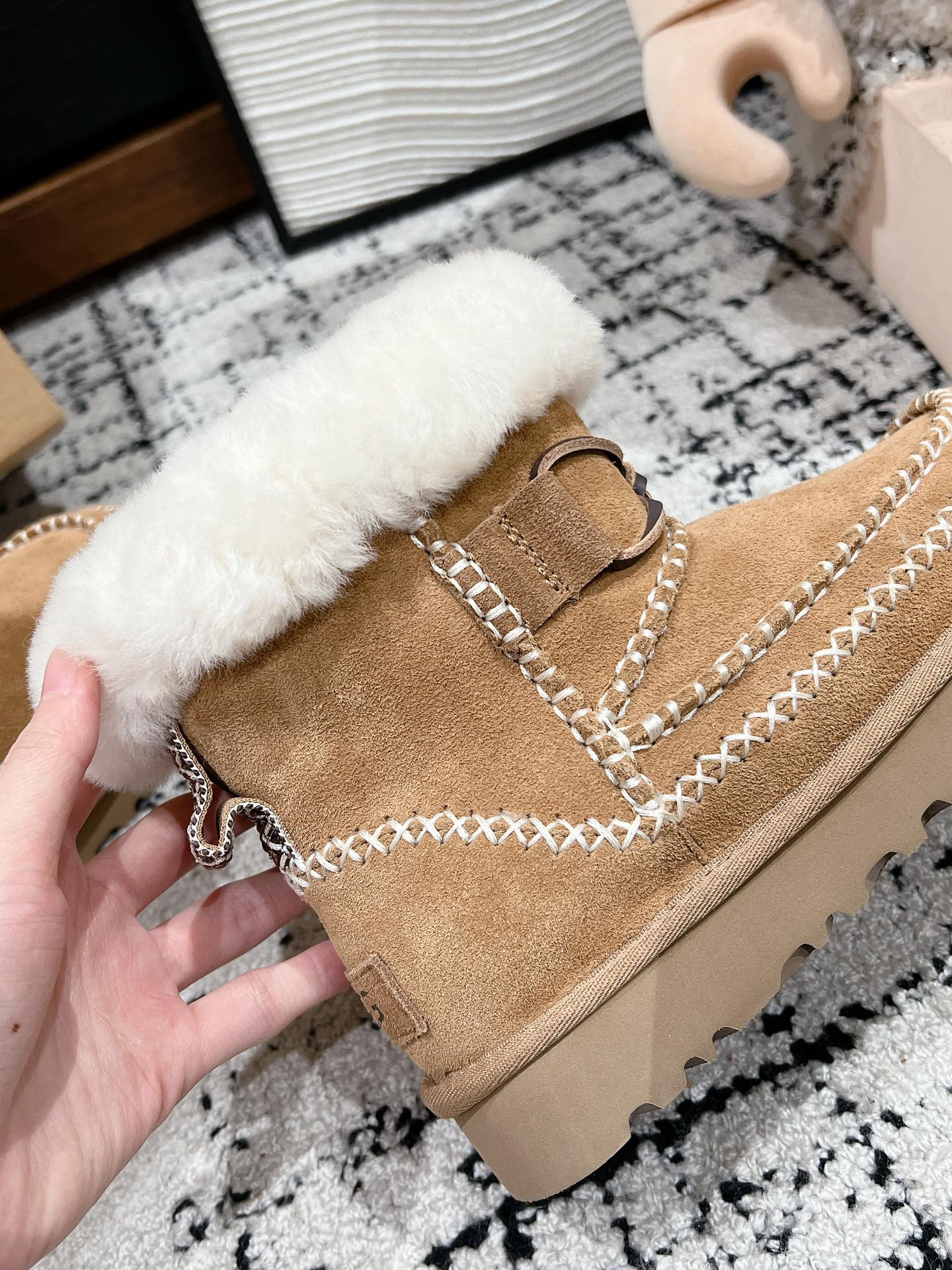 这款鞋子是AAAAA 1:1 质量 (非常棒). 使用了和原版一模一样的材料. 商标部分也保持了和UGG雪地靴一样. 图片拍摄是实物鞋子拍摄, 您所收到的实物保证和我们图片一模一样.