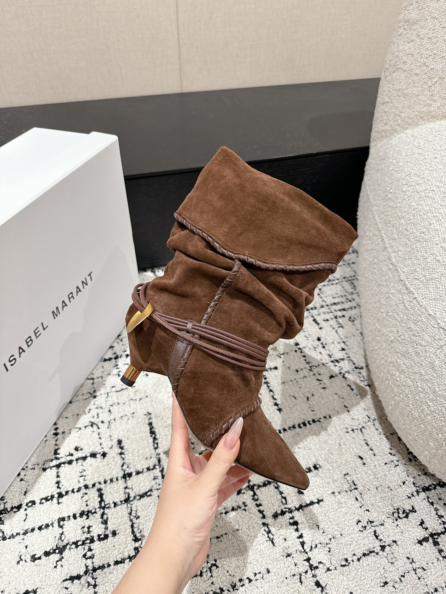 这款鞋子是AAAAA 1:1 质量 (非常棒). 使用了和原版一模一样的材料. 商标部分也保持了和伊莎贝尔·马兰特/Isabel Marant一样. 图片拍摄是实物鞋子拍摄, 您所收到的实物保证和我们图片一模一样.