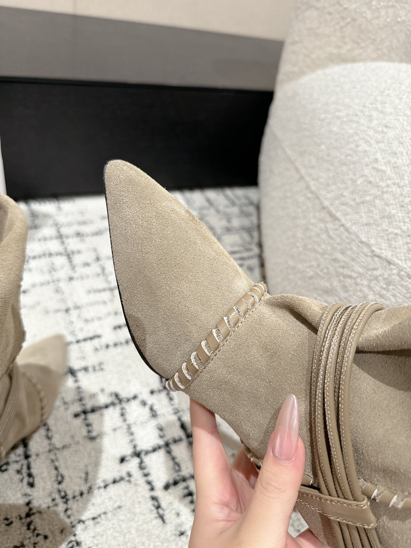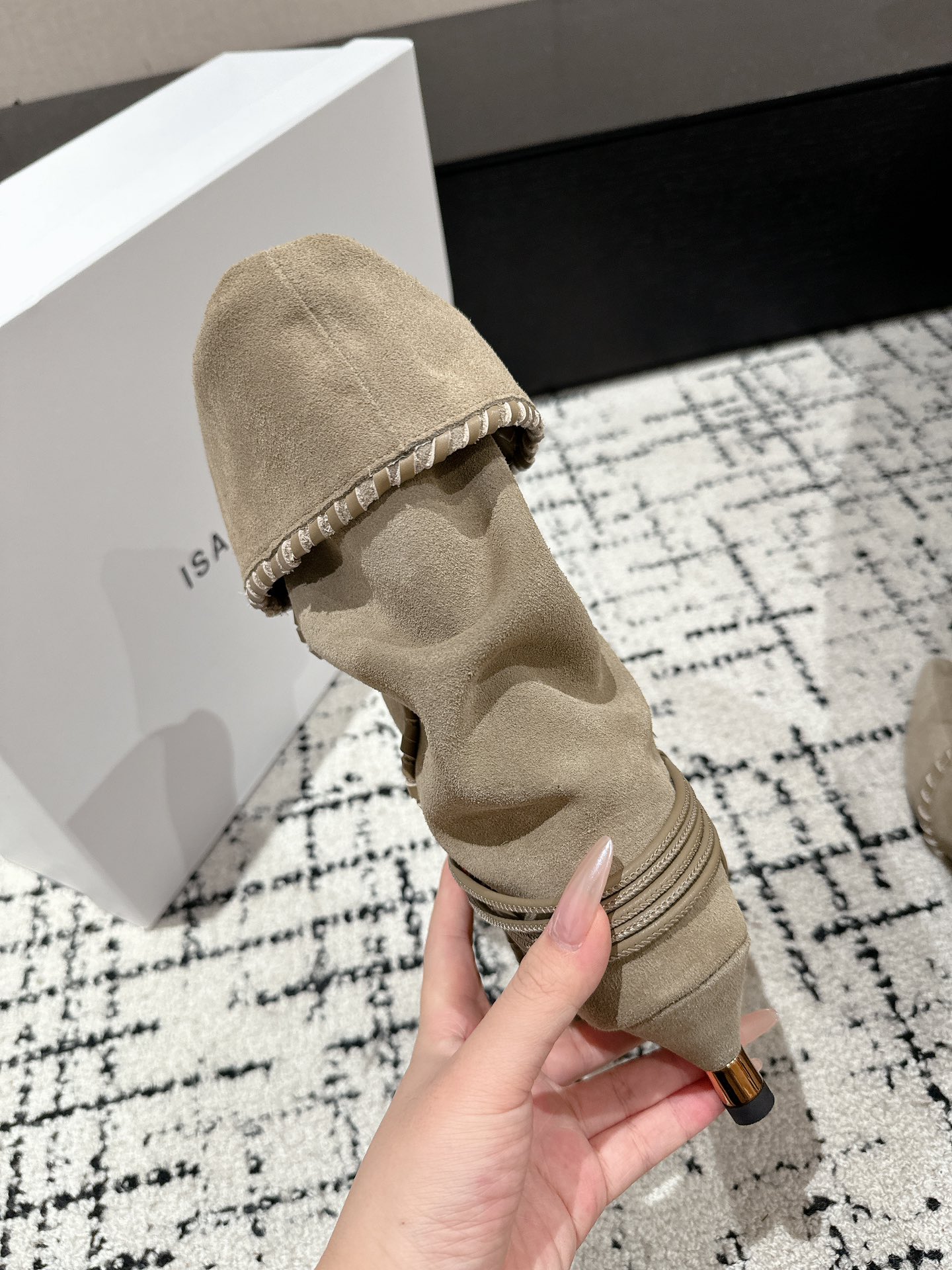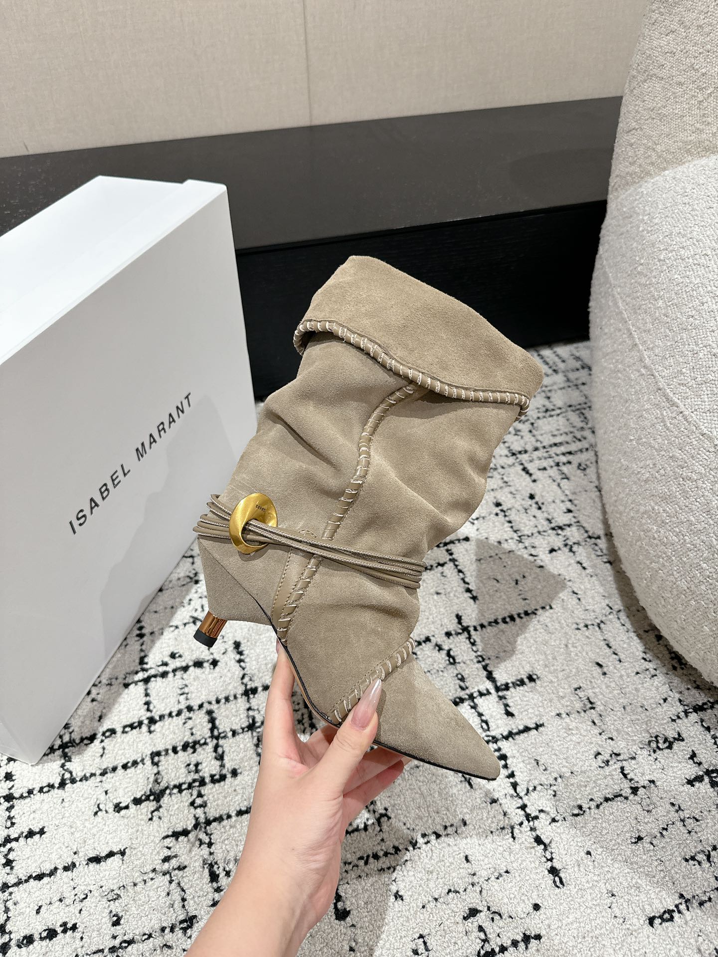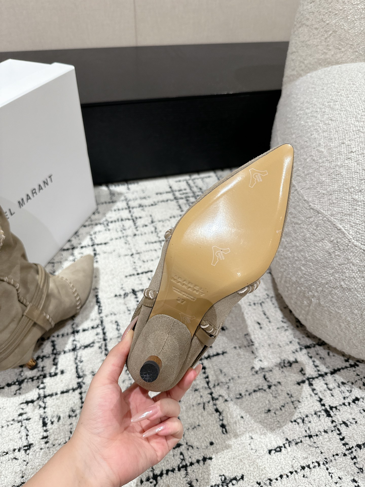 这款鞋子是AAAAA 1:1 质量 (非常棒). 使用了和原版一模一样的材料. 商标部分也保持了和伊莎贝尔·马兰特/Isabel Marant一样. 图片拍摄是实物鞋子拍摄, 您所收到的实物保证和我们图片一模一样.