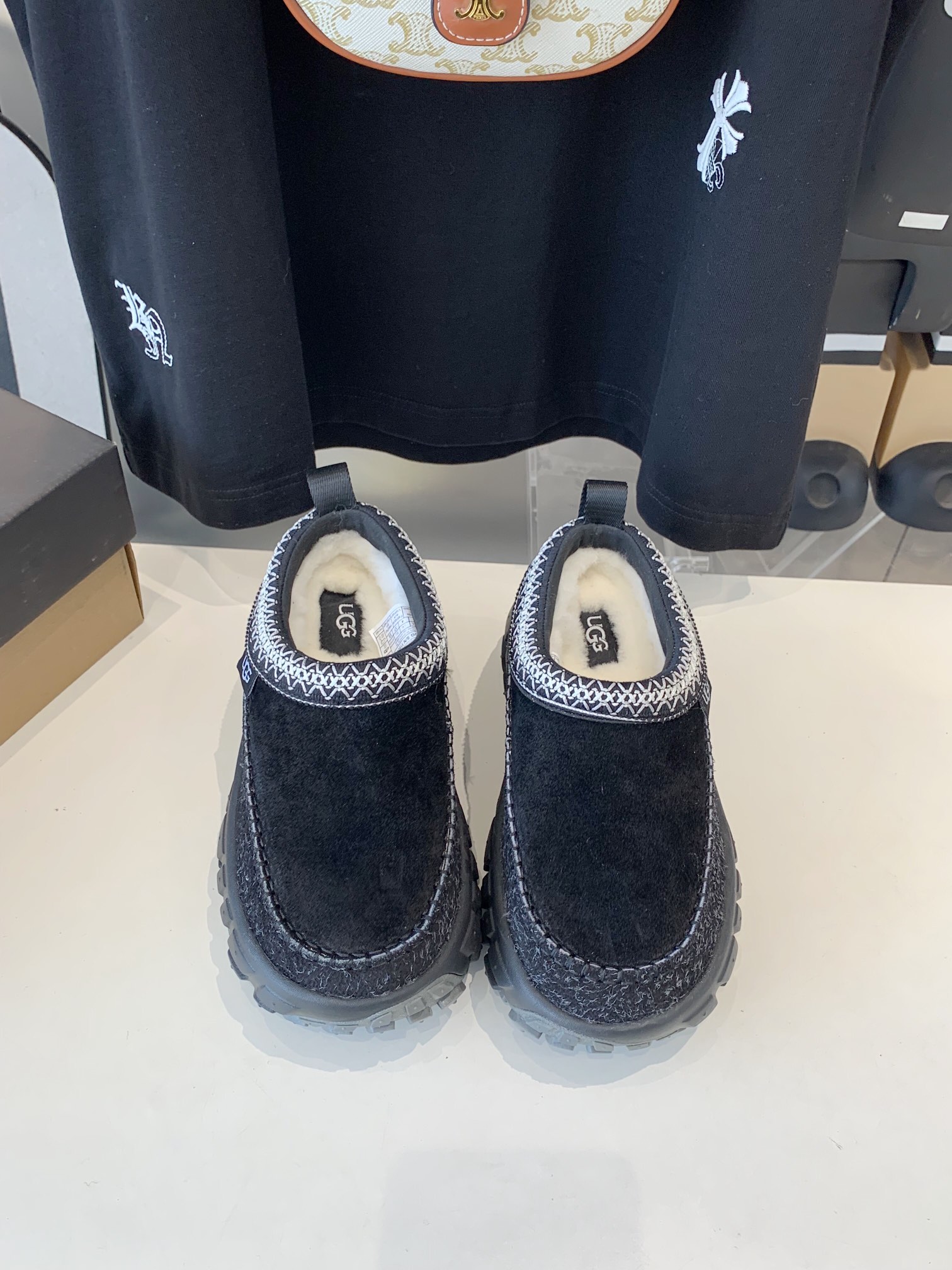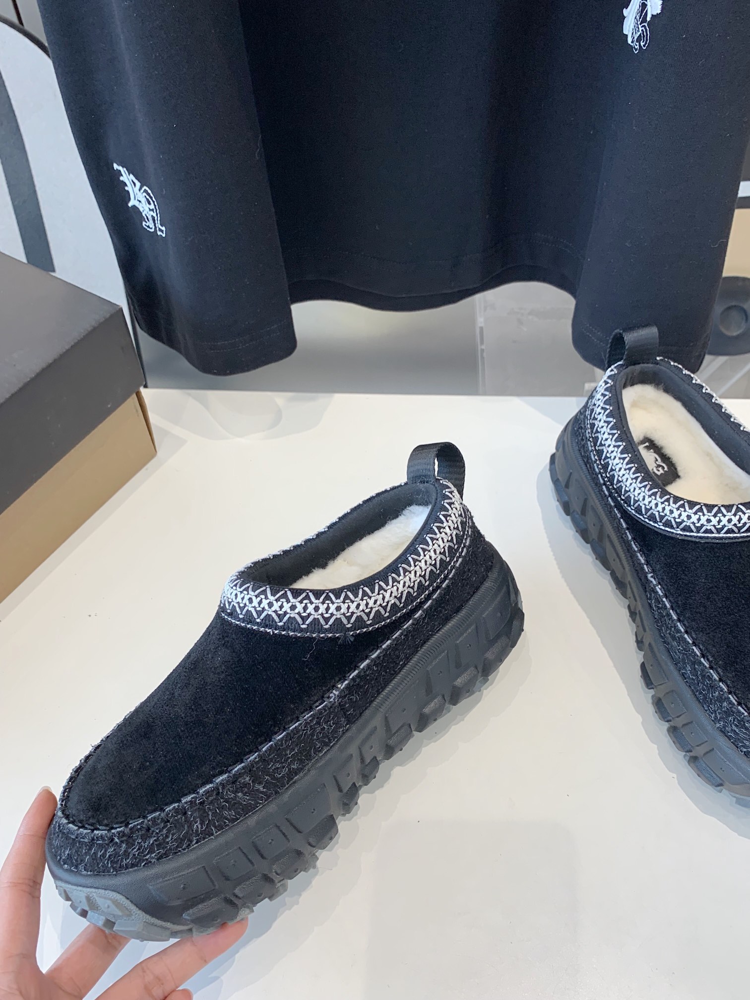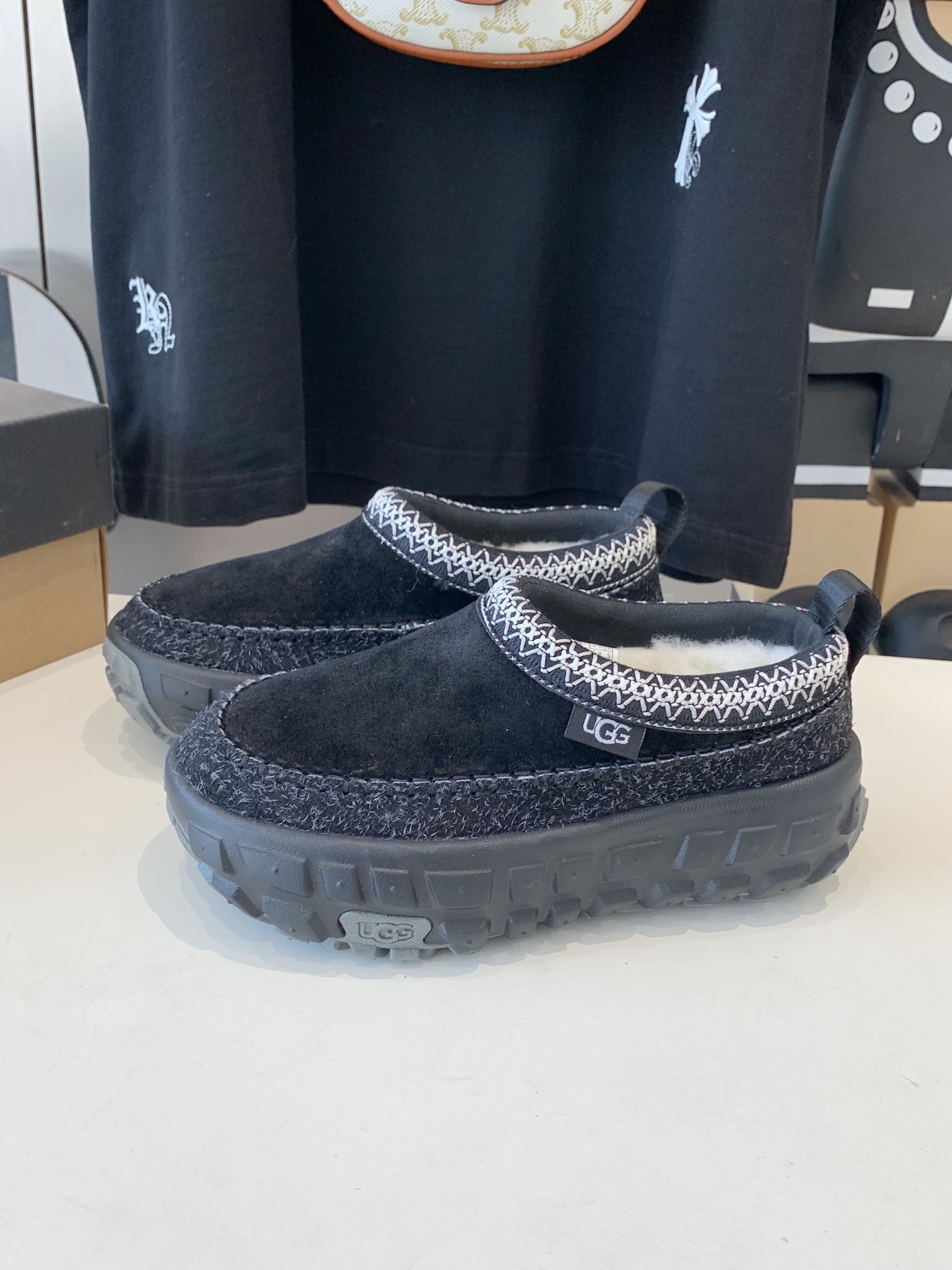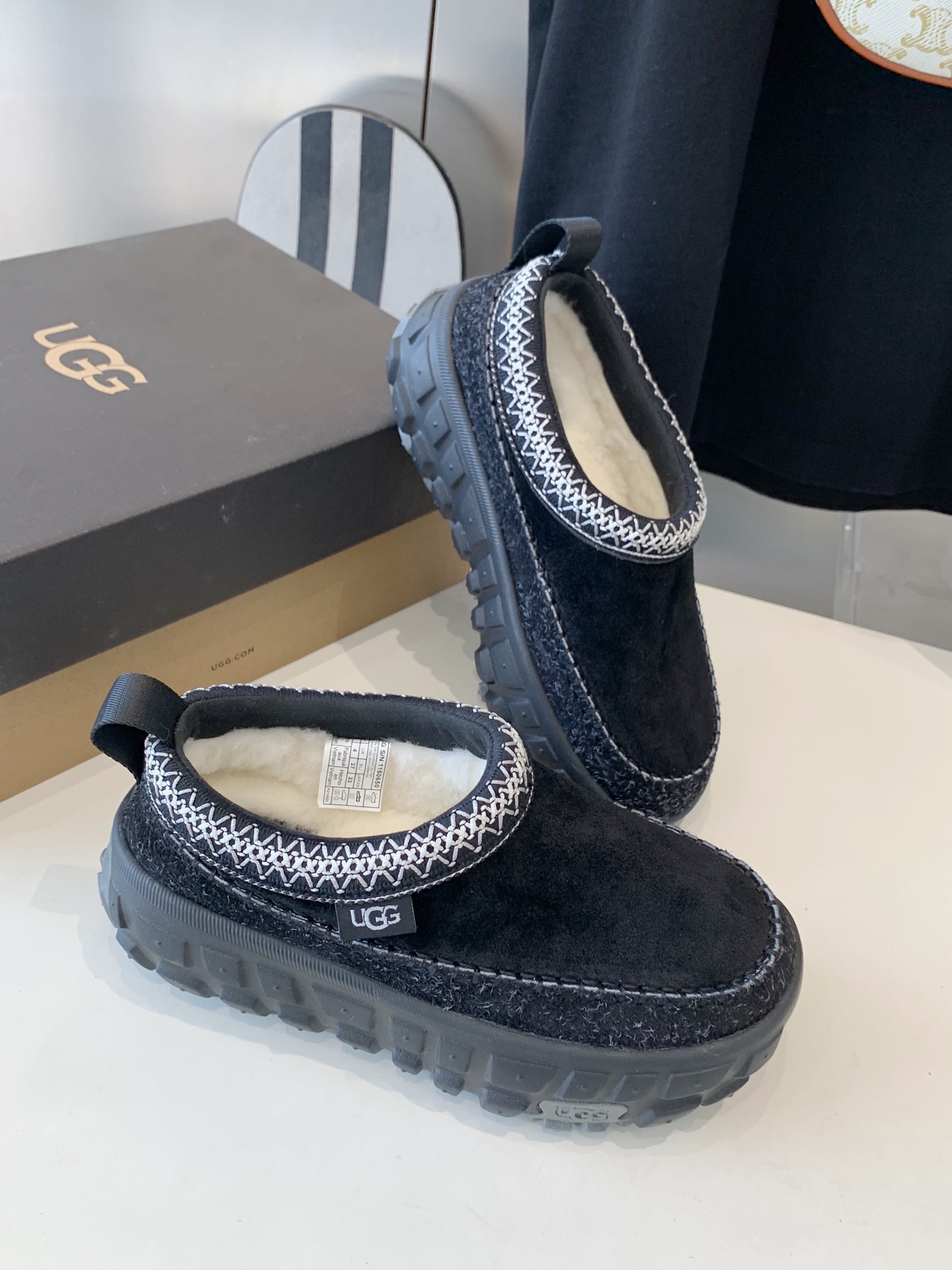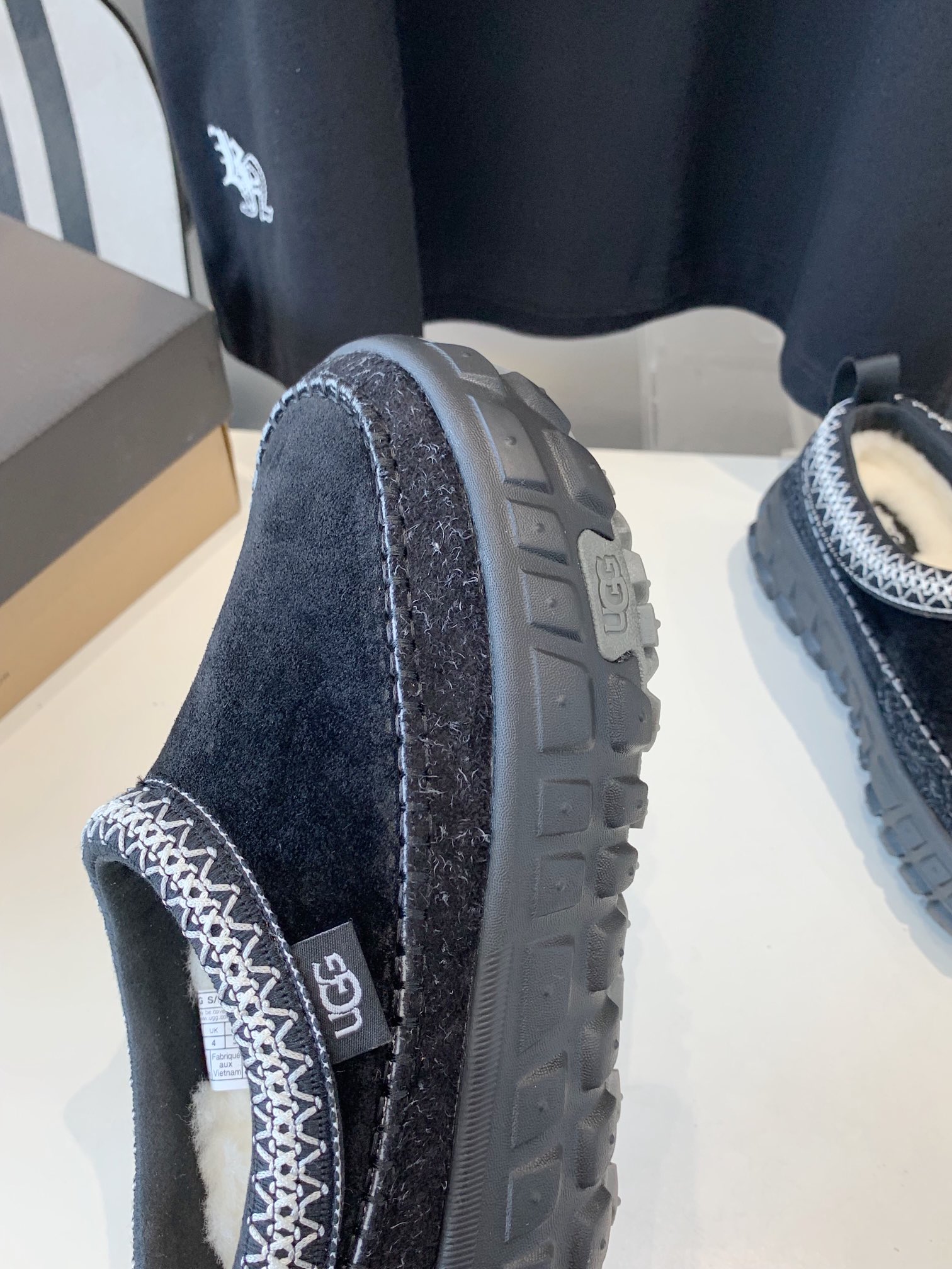 这款鞋子是AAAAA 1:1 质量 (非常棒). 使用了和原版一模一样的材料. 商标部分也保持了和UGG雪地靴一样. 图片拍摄是实物鞋子拍摄, 您所收到的实物保证和我们图片一模一样.