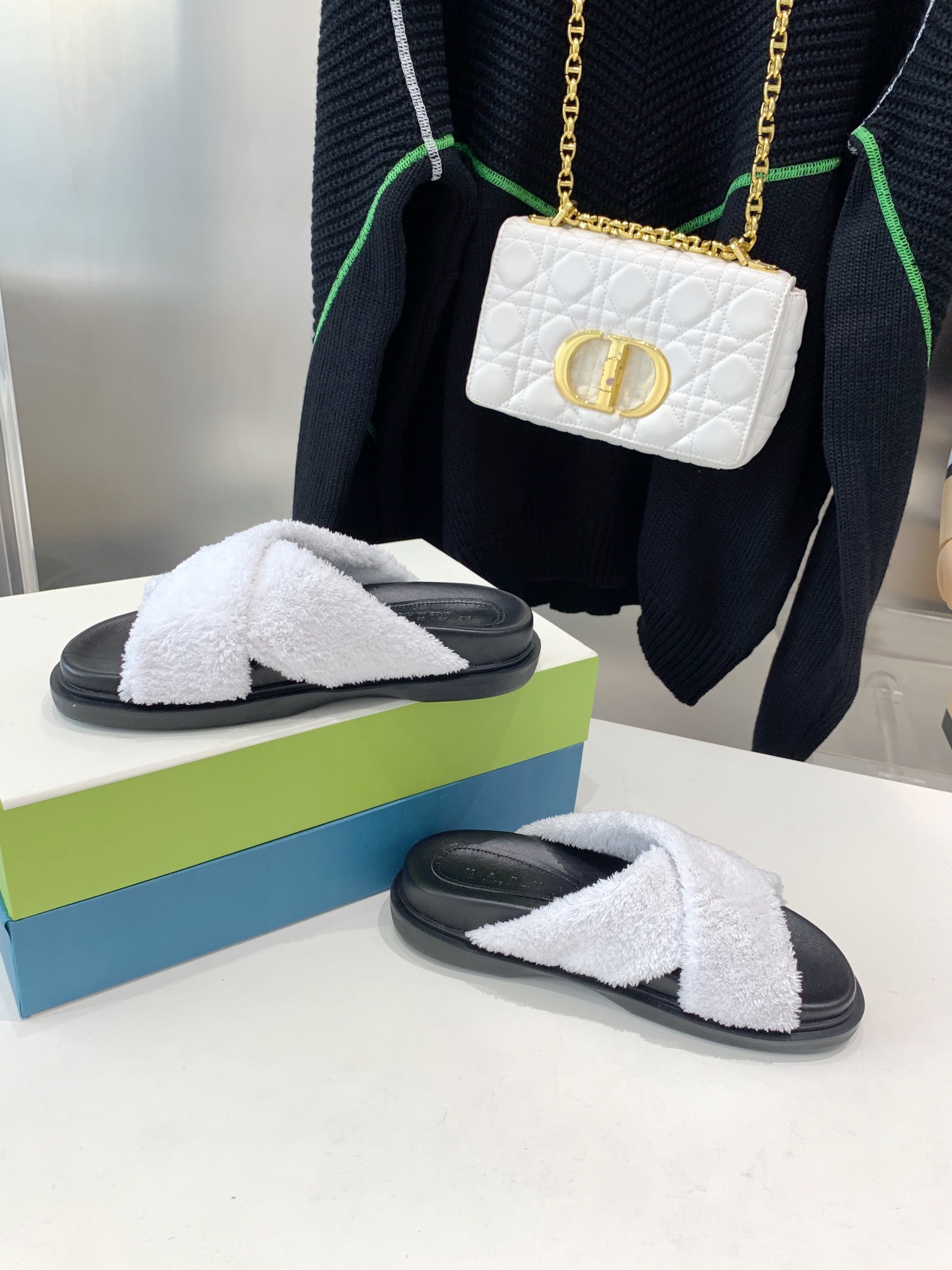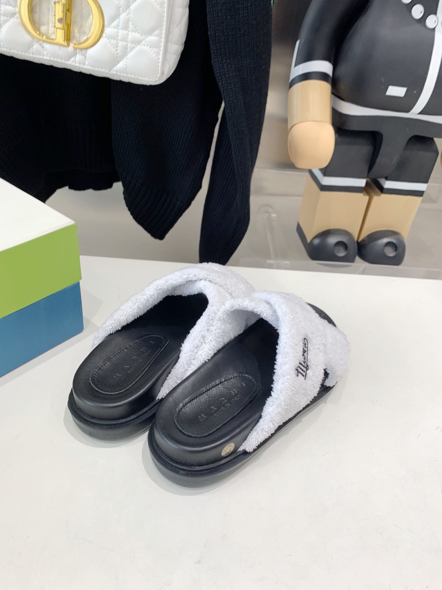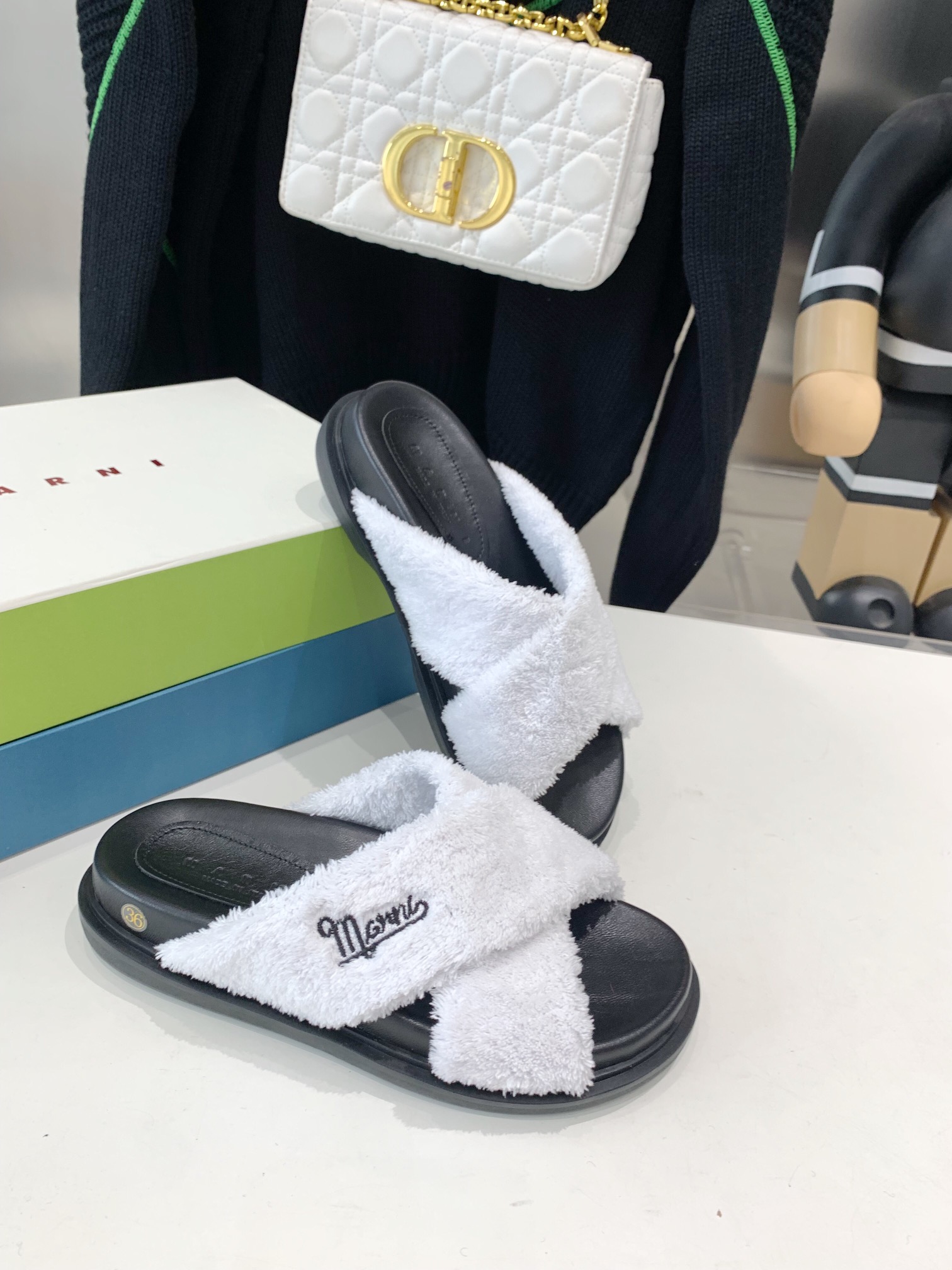 这款鞋子是AAAAA 1:1 质量 (非常棒). 使用了和原版一模一样的材料. 商标部分也保持了和马尔尼/Marni一样. 图片拍摄是实物鞋子拍摄, 您所收到的实物保证和我们图片一模一样.