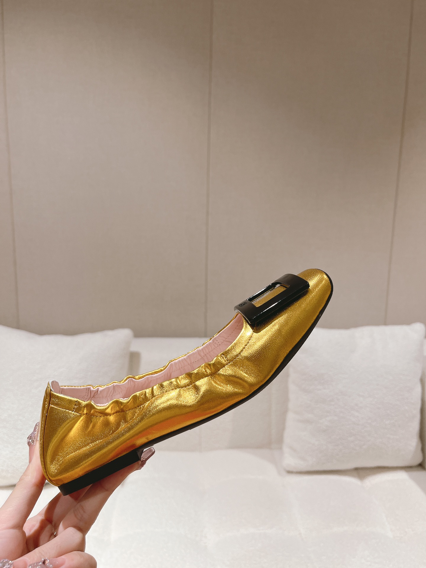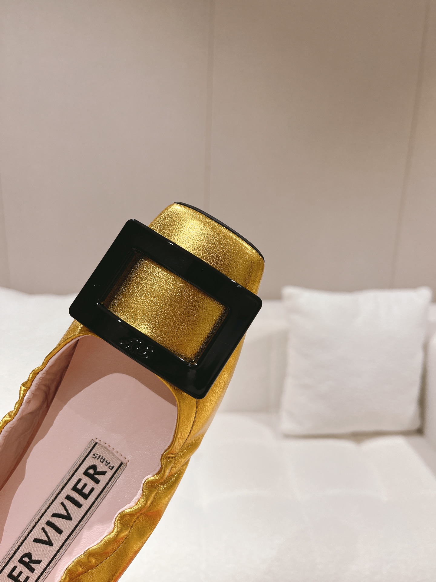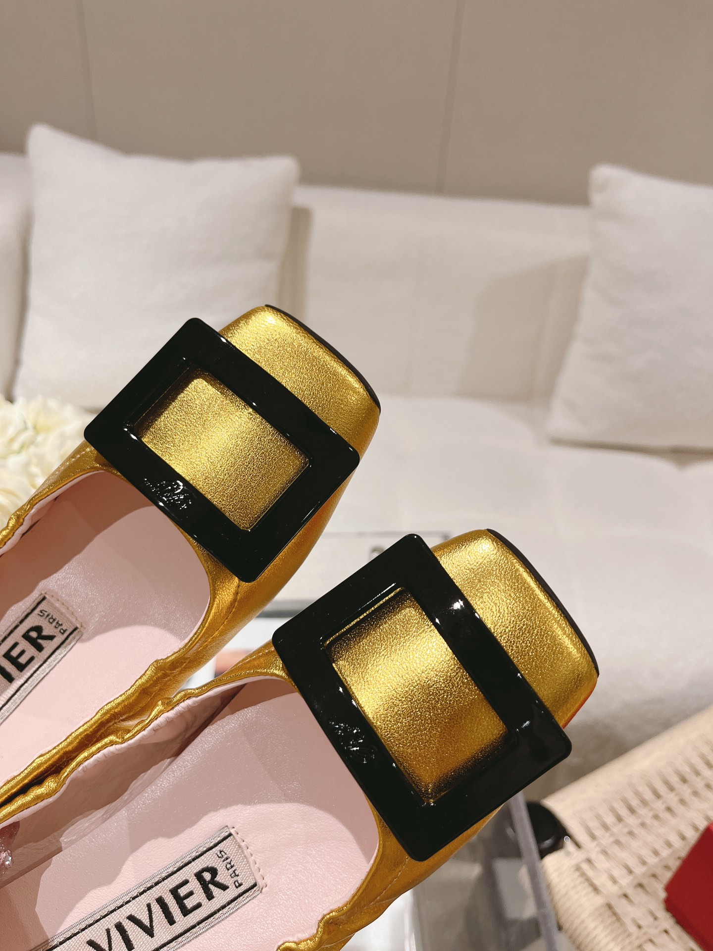 这款鞋子是AAAAA 1:1 质量 (非常棒). 使用了和原版一模一样的材料. 商标部分也保持了和罗杰维维耶/Roger Vivier一样. 图片拍摄是实物鞋子拍摄, 您所收到的实物保证和我们图片一模一样.