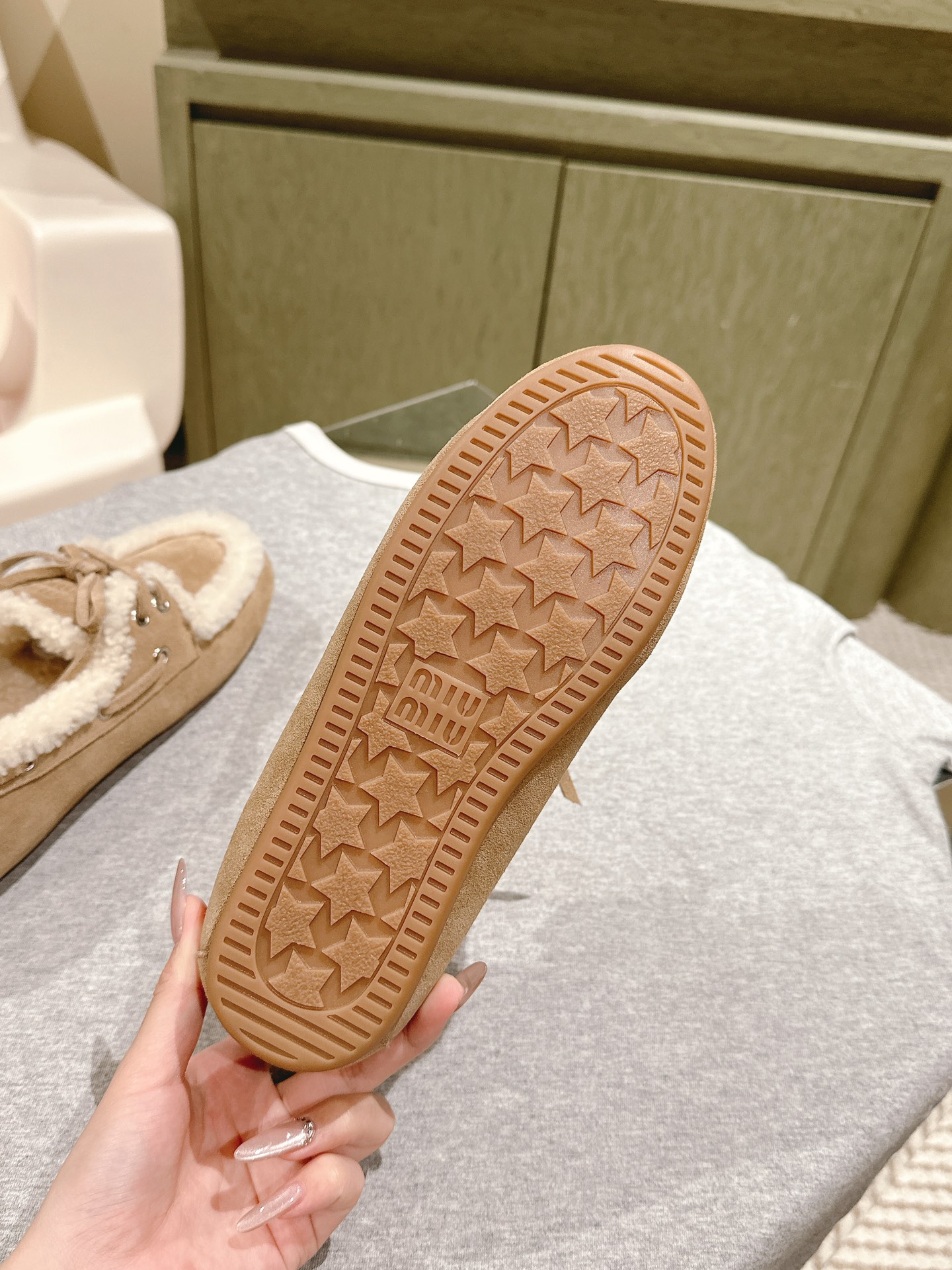 这款鞋子是AAAAA 1:1 质量 (非常棒). 使用了和原版一模一样的材料. 商标部分也保持了和缪缪/Miu Miu一样. 图片拍摄是实物鞋子拍摄, 您所收到的实物保证和我们图片一模一样.