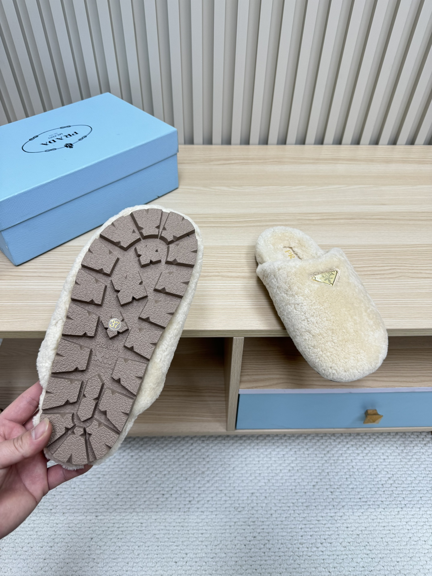 这款鞋子是AAAAA 1:1 质量 (非常棒). 使用了和原版一模一样的材料. 商标部分也保持了和普拉达/Prada一样. 图片拍摄是实物鞋子拍摄, 您所收到的实物保证和我们图片一模一样.