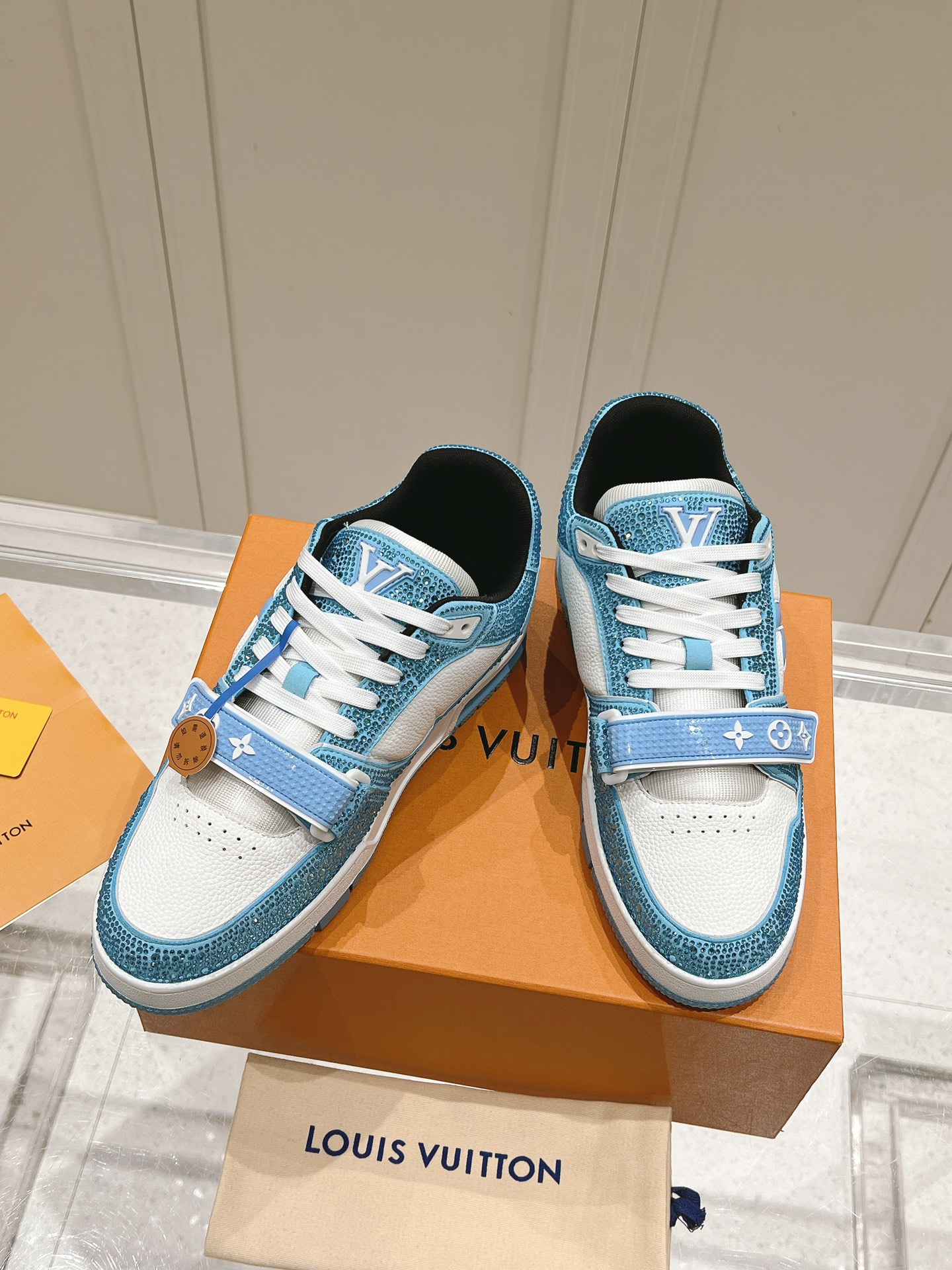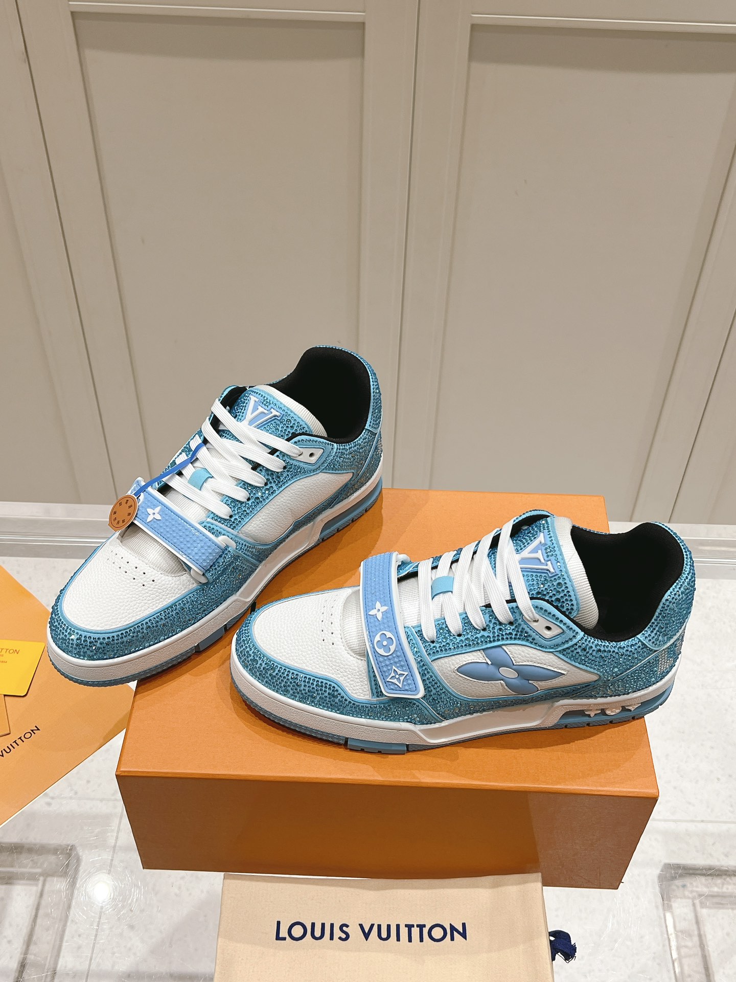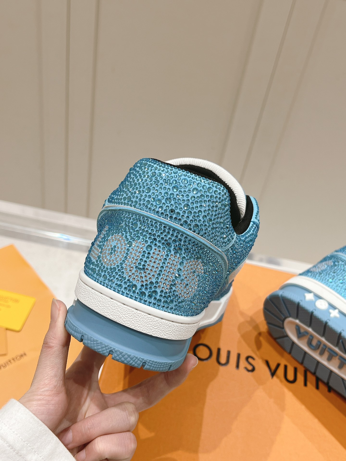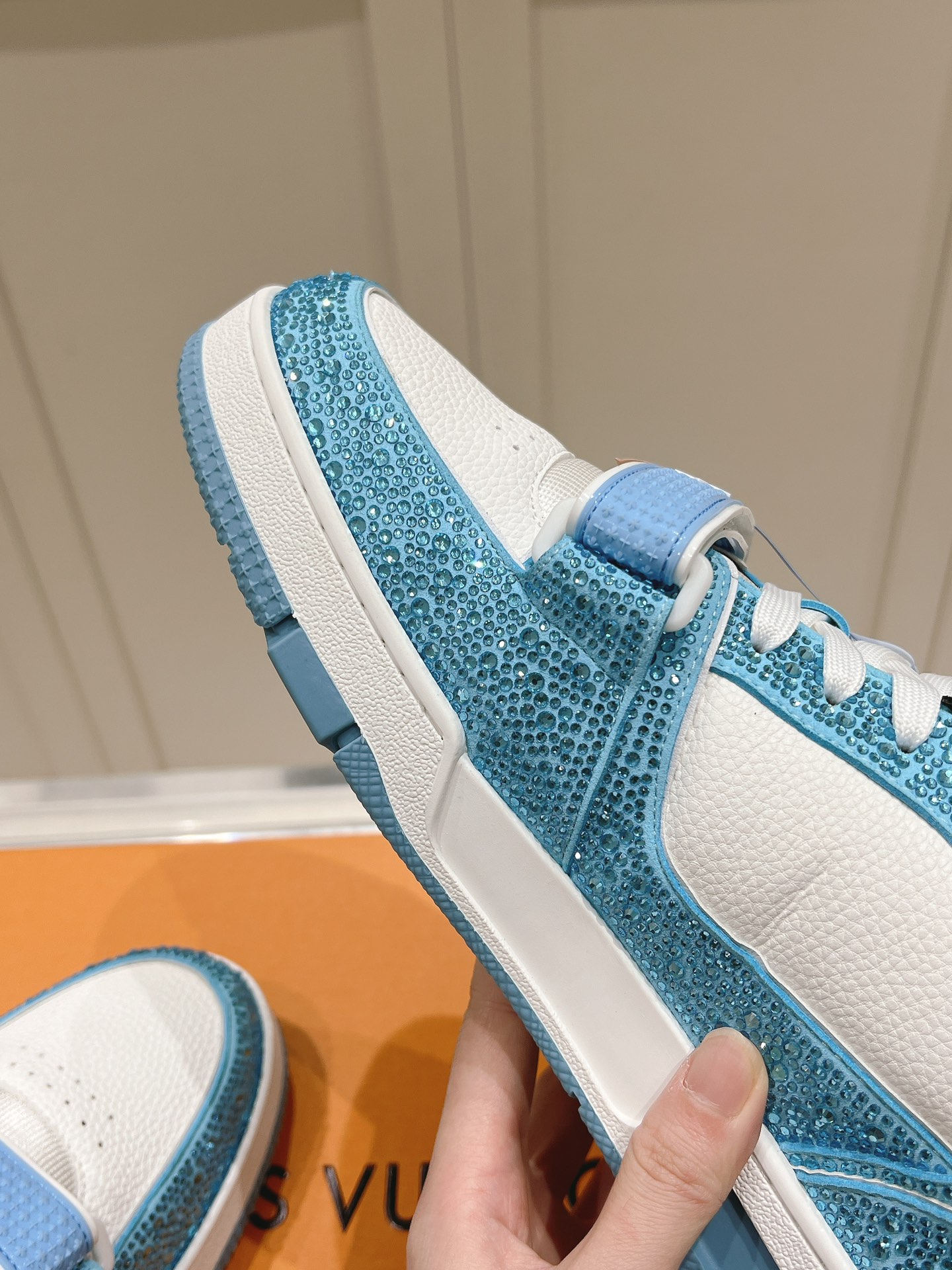 这款鞋子是AAAAA 1:1 质量 (非常棒). 使用了和原版一模一样的材料. 商标部分也保持了和路易威登/Louis Vuitton一样. 图片拍摄是实物鞋子拍摄, 您所收到的实物保证和我们图片一模一样.