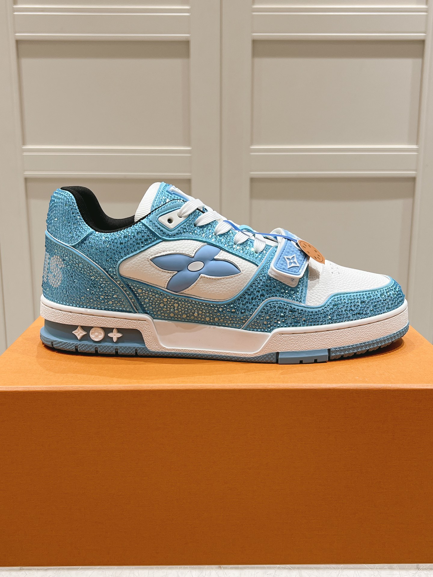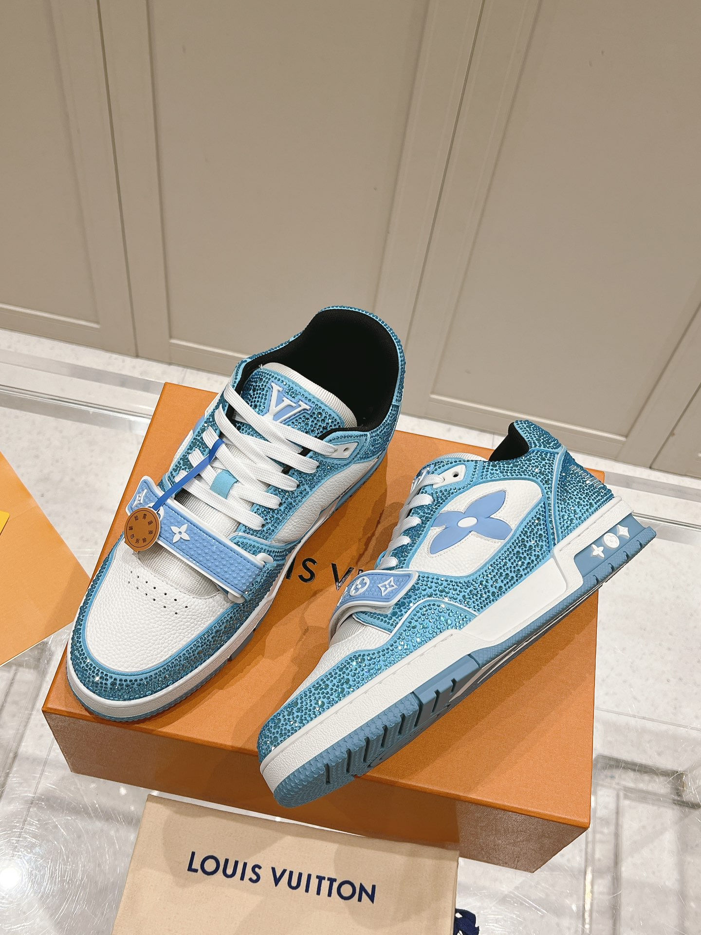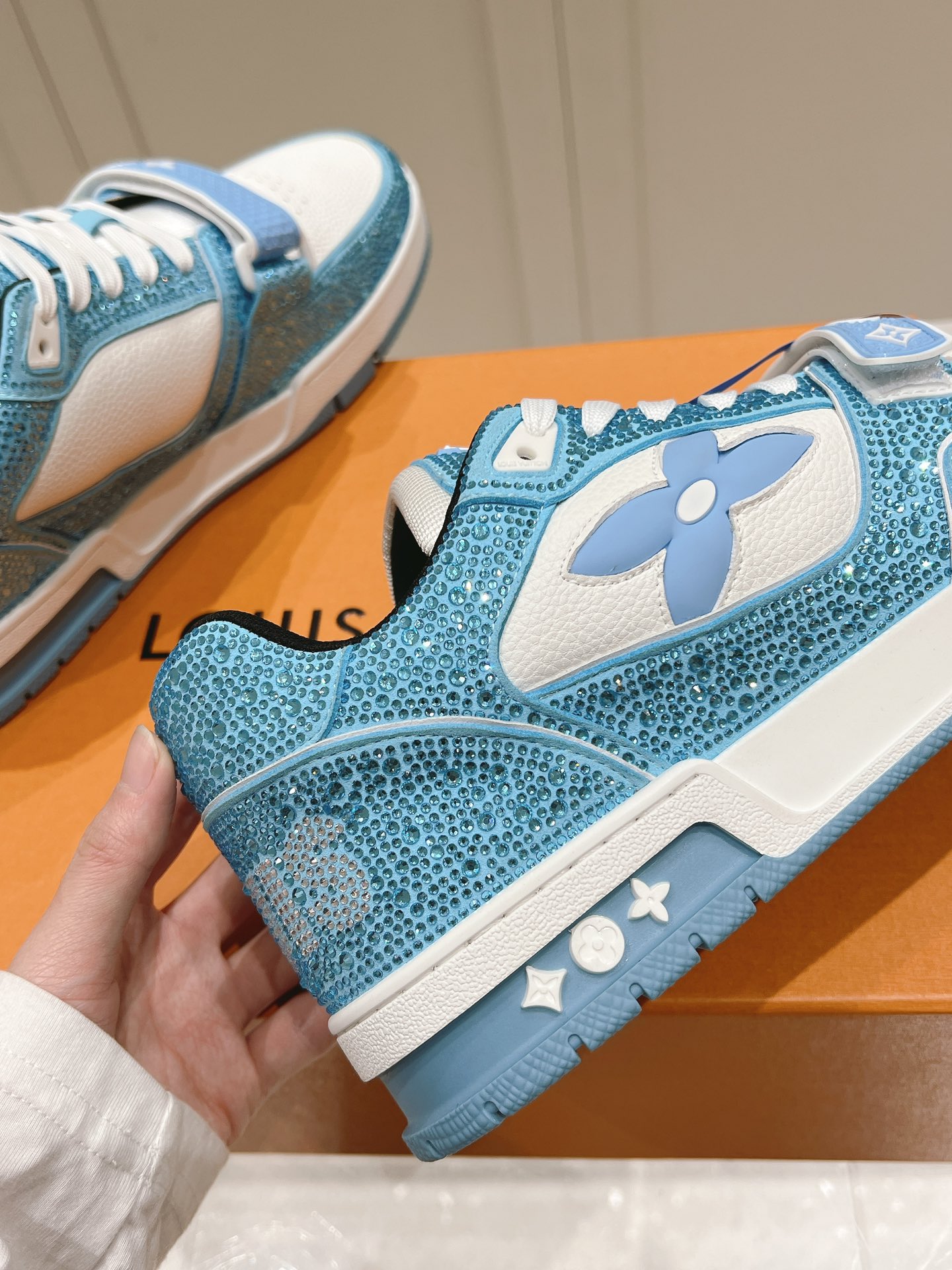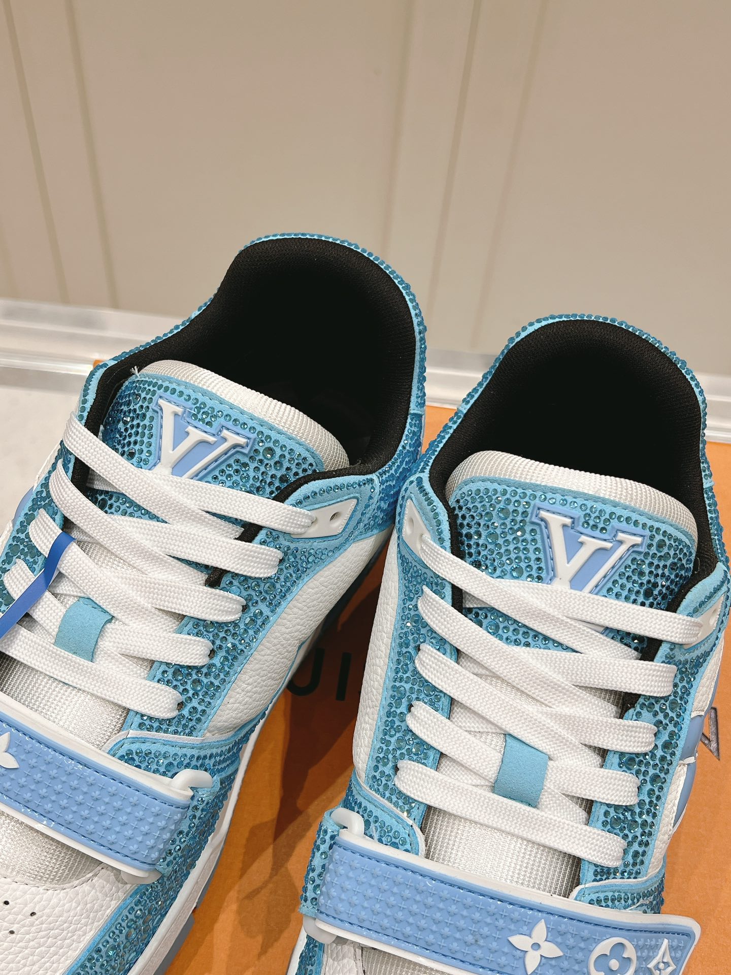 这款鞋子是AAAAA 1:1 质量 (非常棒). 使用了和原版一模一样的材料. 商标部分也保持了和路易威登/Louis Vuitton一样. 图片拍摄是实物鞋子拍摄, 您所收到的实物保证和我们图片一模一样.