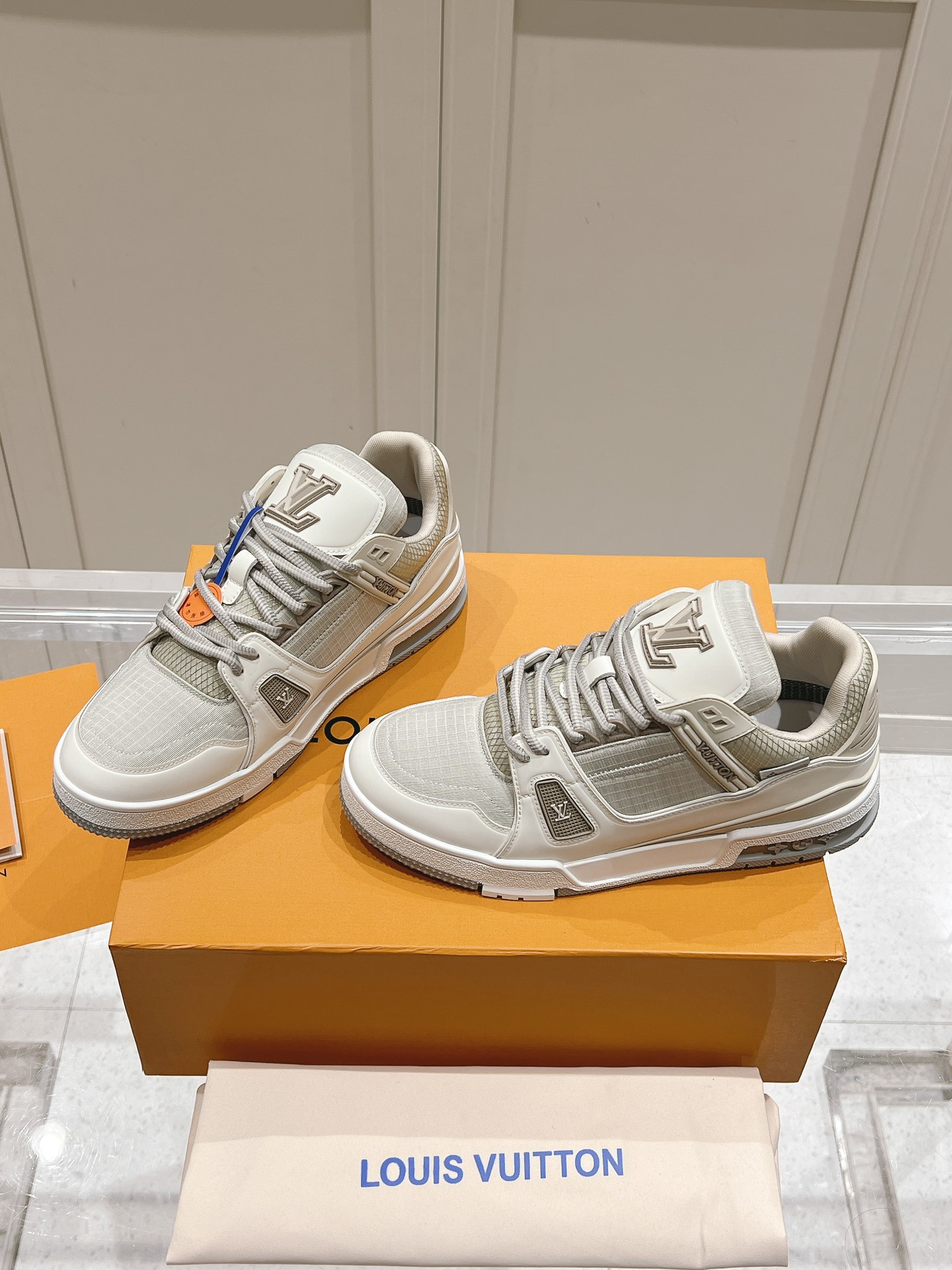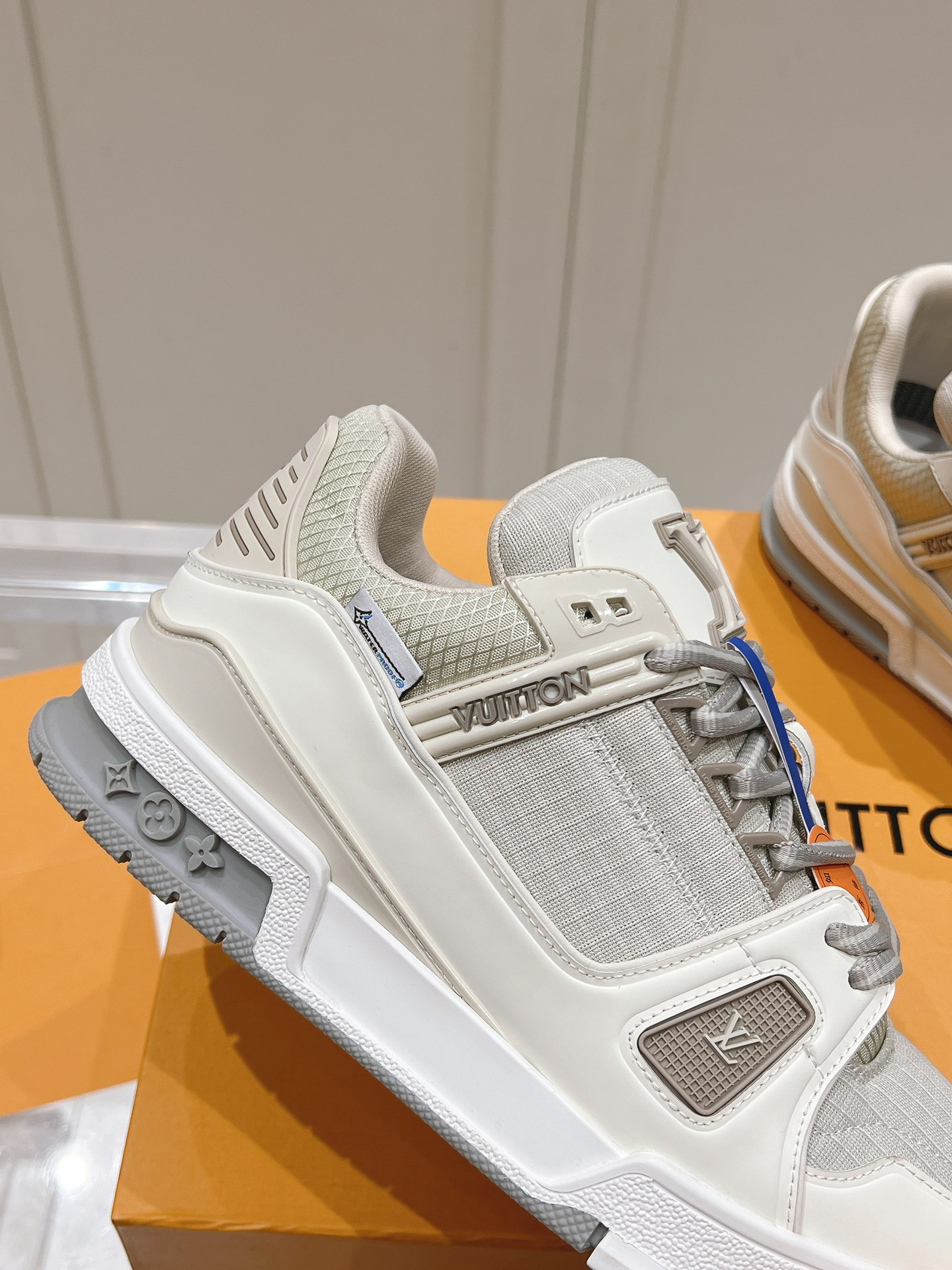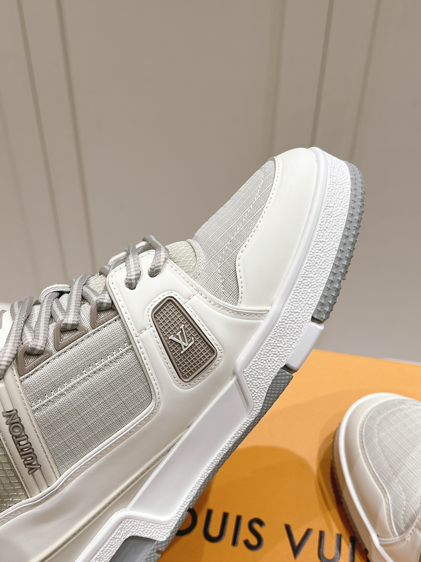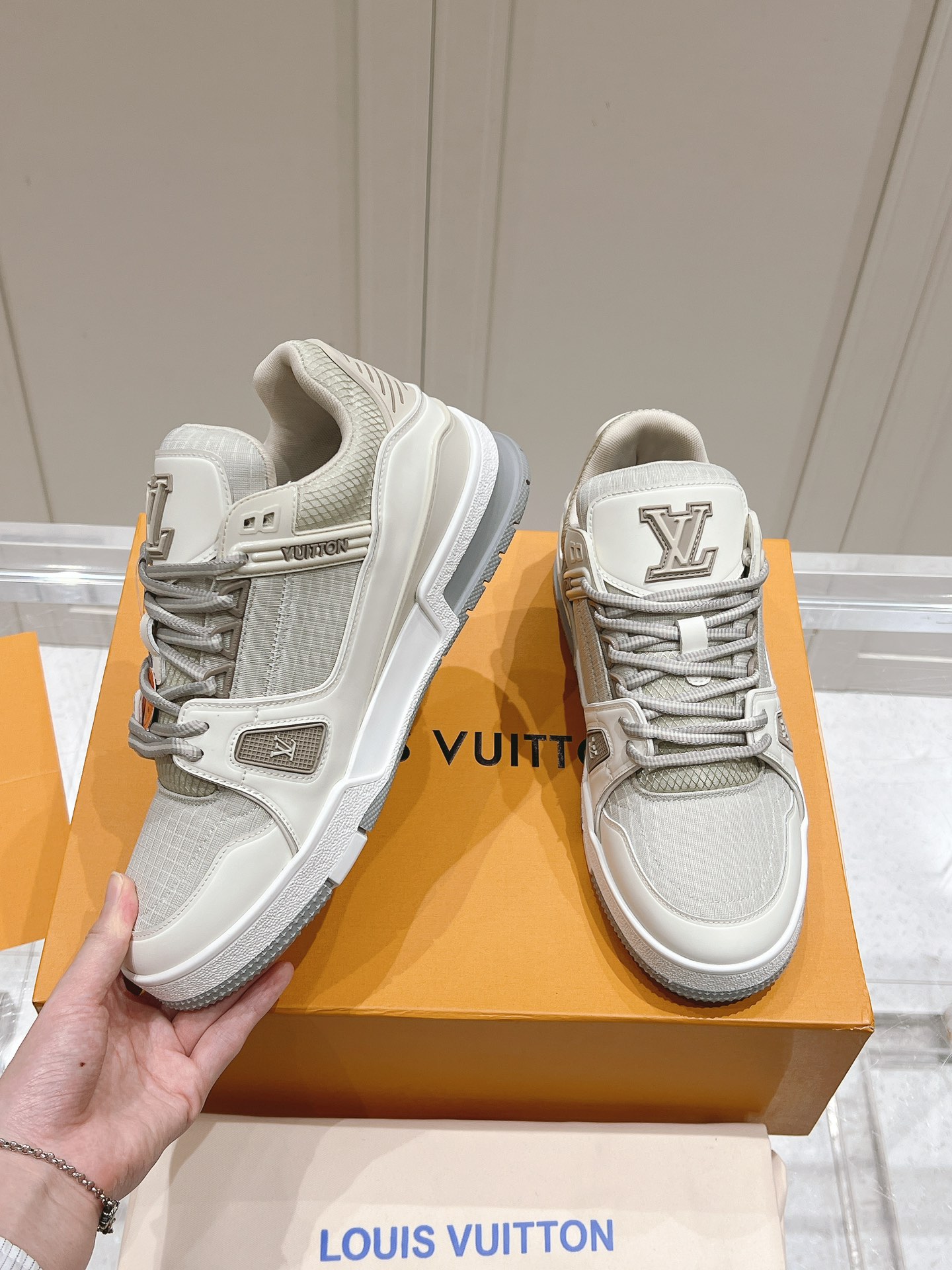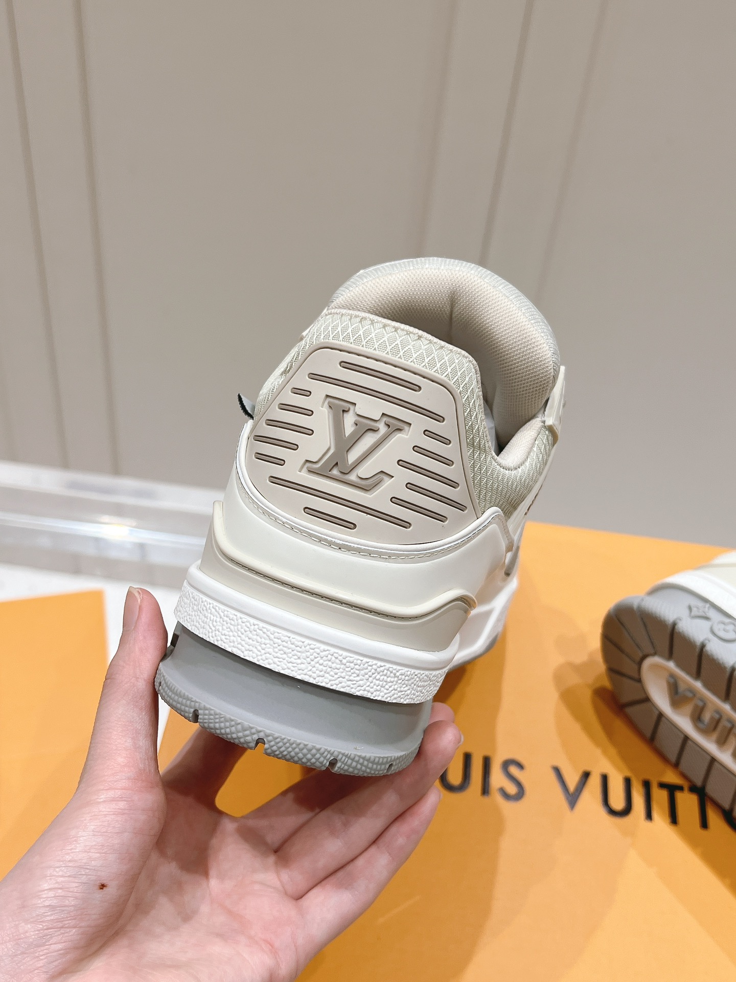这款鞋子是AAAAA 1:1 质量 (非常棒). 使用了和原版一模一样的材料. 商标部分也保持了和路易威登/Louis Vuitton一样. 图片拍摄是实物鞋子拍摄, 您所收到的实物保证和我们图片一模一样.