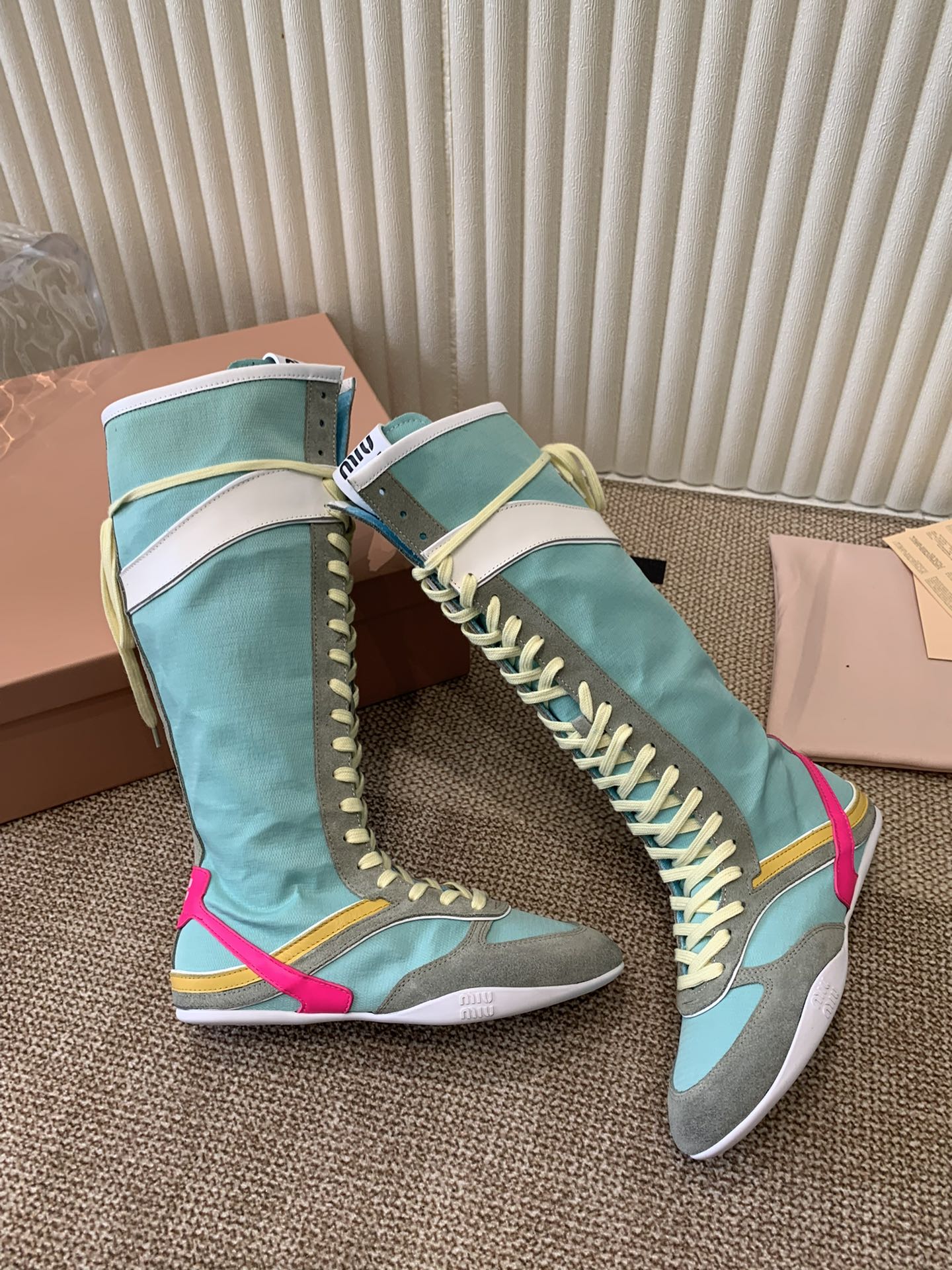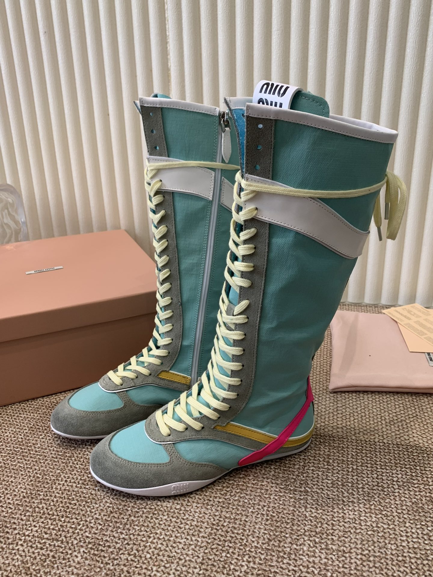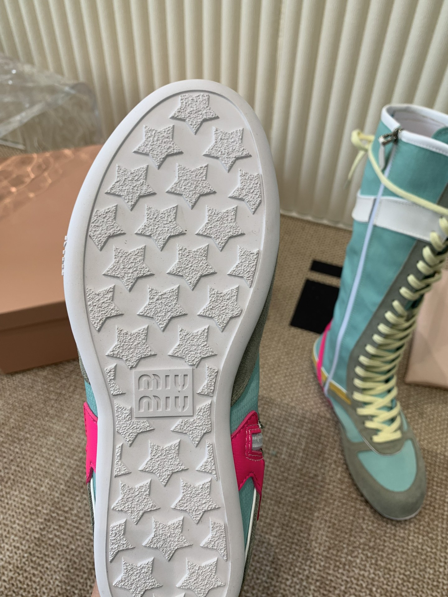 这款鞋子是AAAAA 1:1 质量 (非常棒). 使用了和原版一模一样的材料. 商标部分也保持了和缪缪/Miu Miu一样. 图片拍摄是实物鞋子拍摄, 您所收到的实物保证和我们图片一模一样.