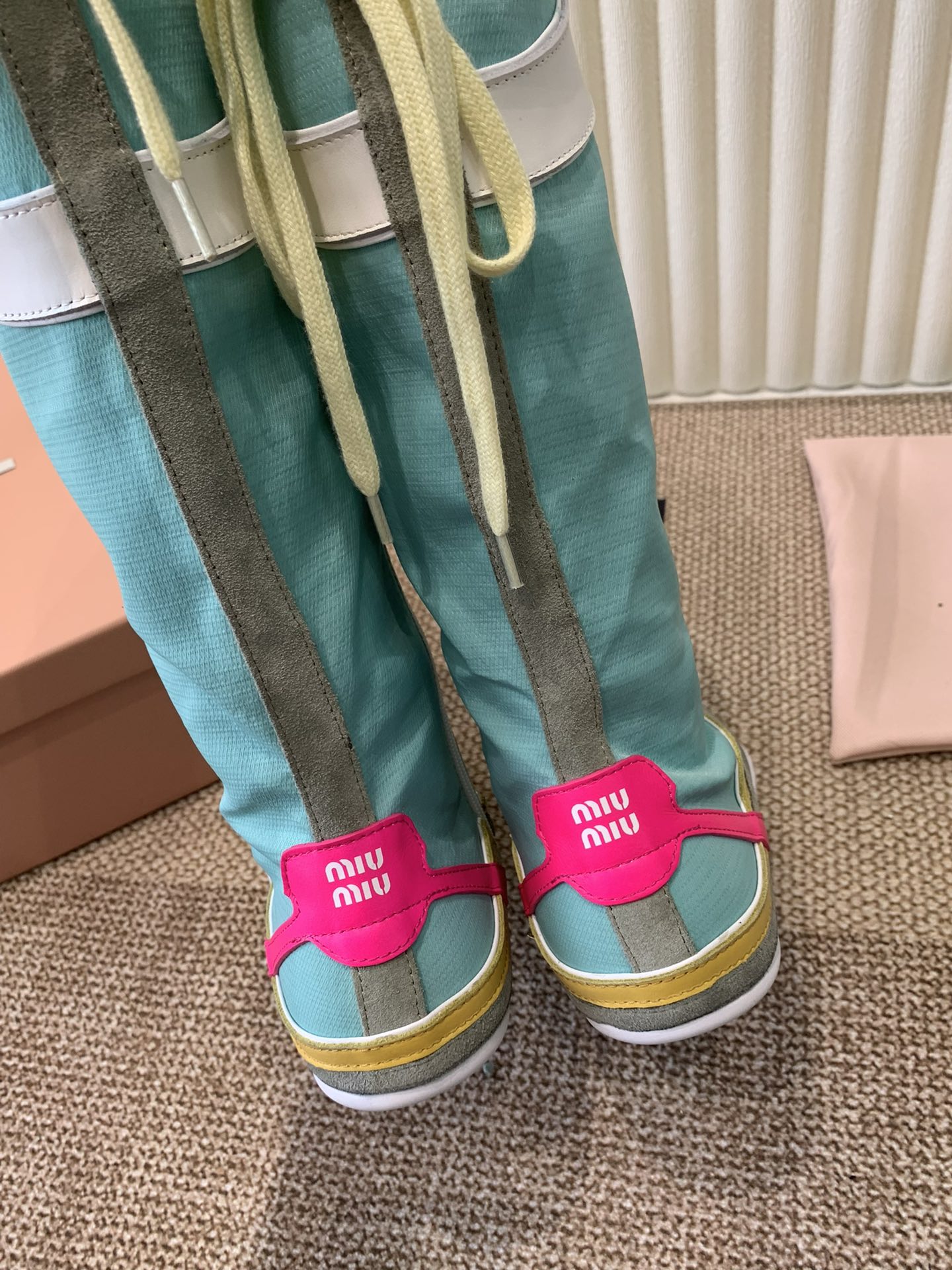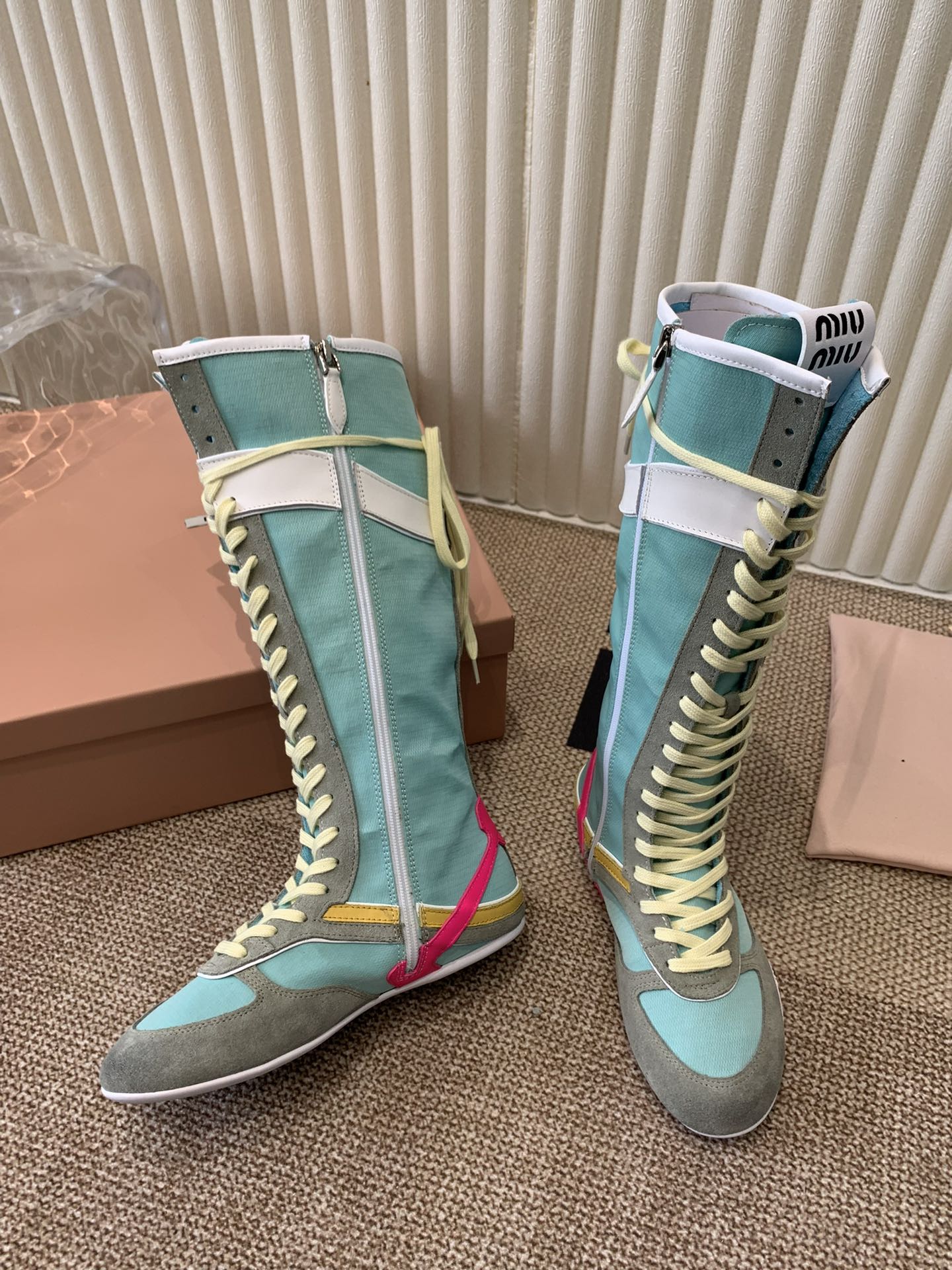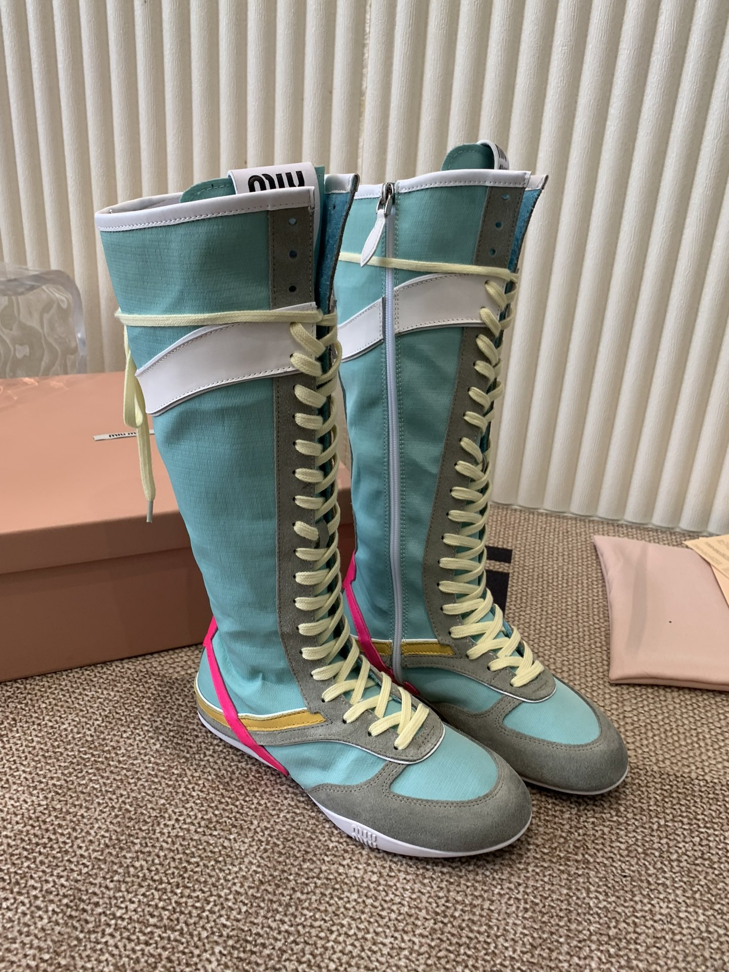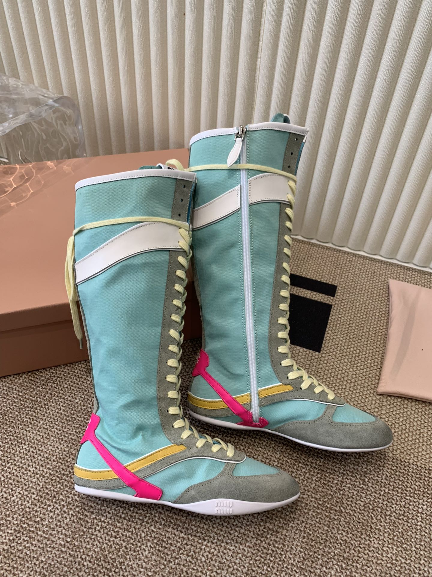 这款鞋子是AAAAA 1:1 质量 (非常棒). 使用了和原版一模一样的材料. 商标部分也保持了和缪缪/Miu Miu一样. 图片拍摄是实物鞋子拍摄, 您所收到的实物保证和我们图片一模一样.