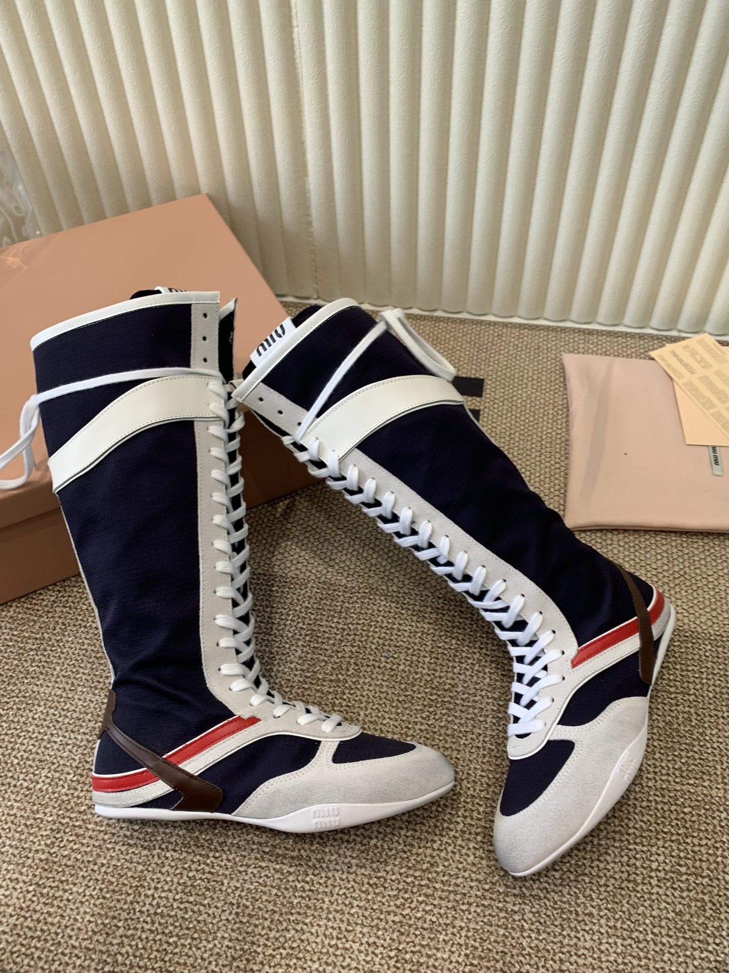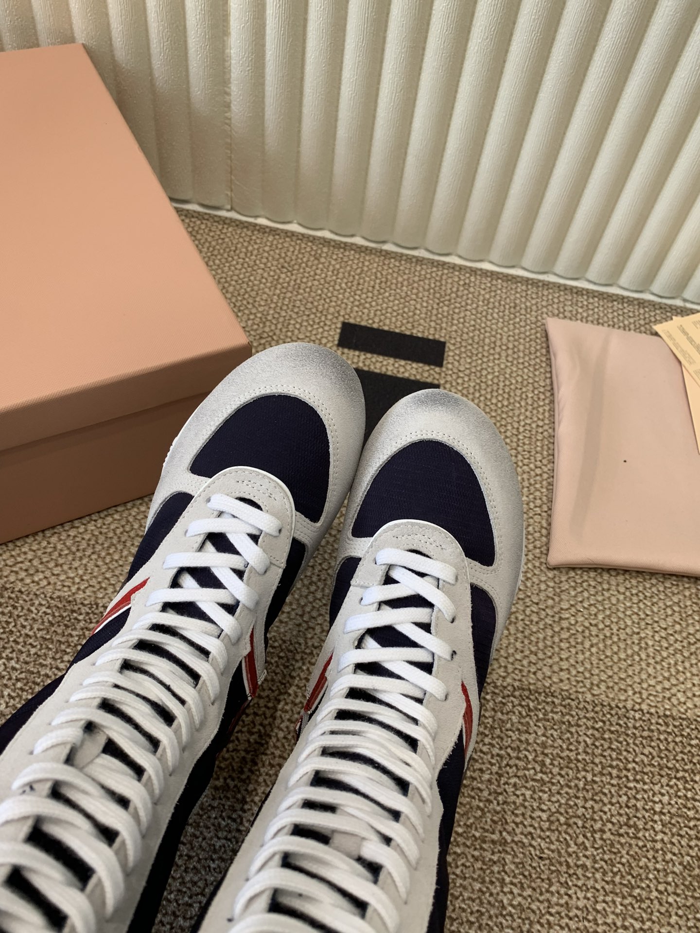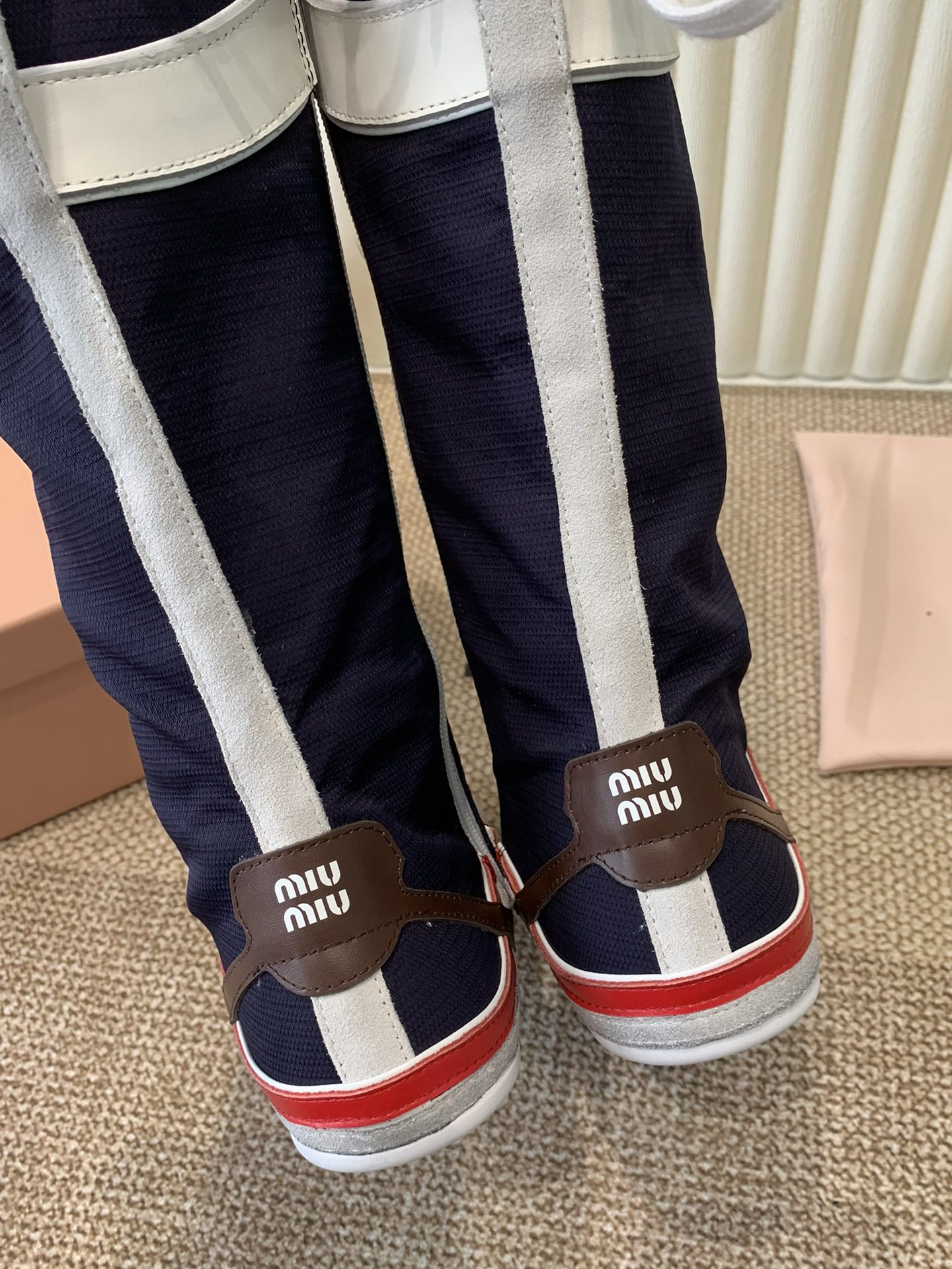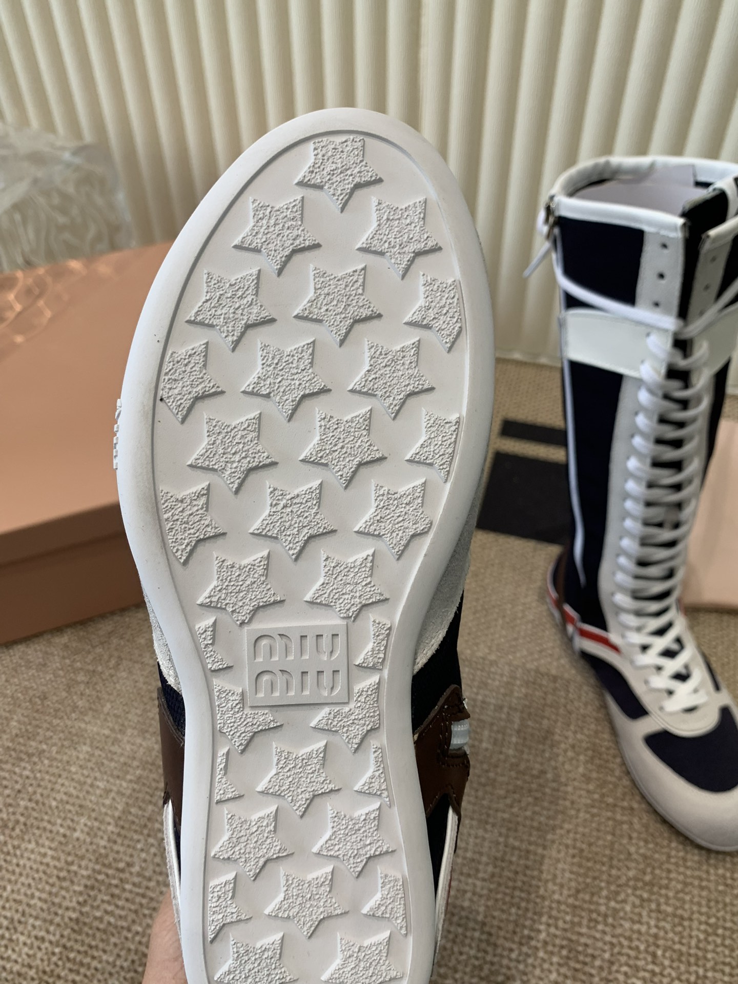 这款鞋子是AAAAA 1:1 质量 (非常棒). 使用了和原版一模一样的材料. 商标部分也保持了和缪缪/Miu Miu一样. 图片拍摄是实物鞋子拍摄, 您所收到的实物保证和我们图片一模一样.