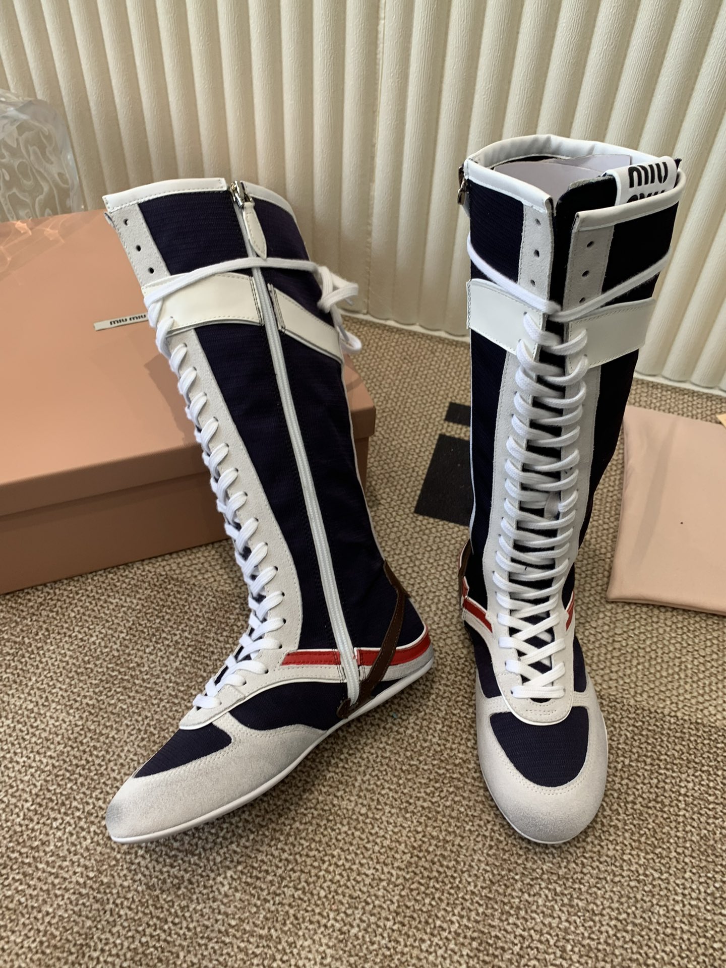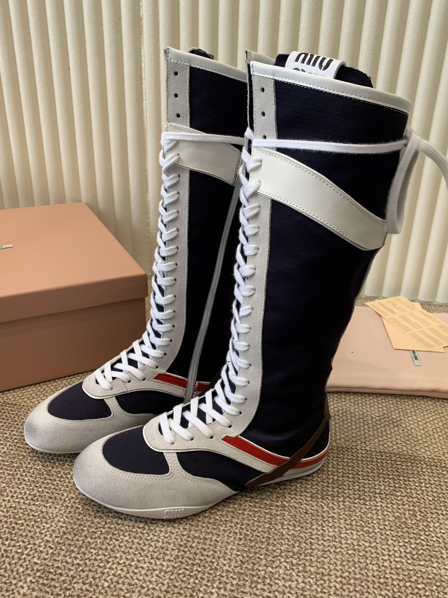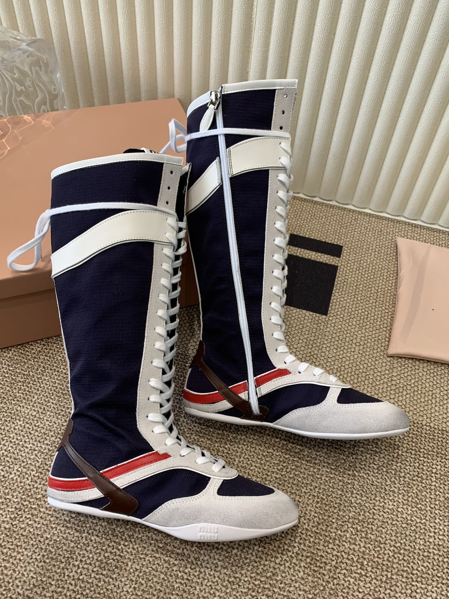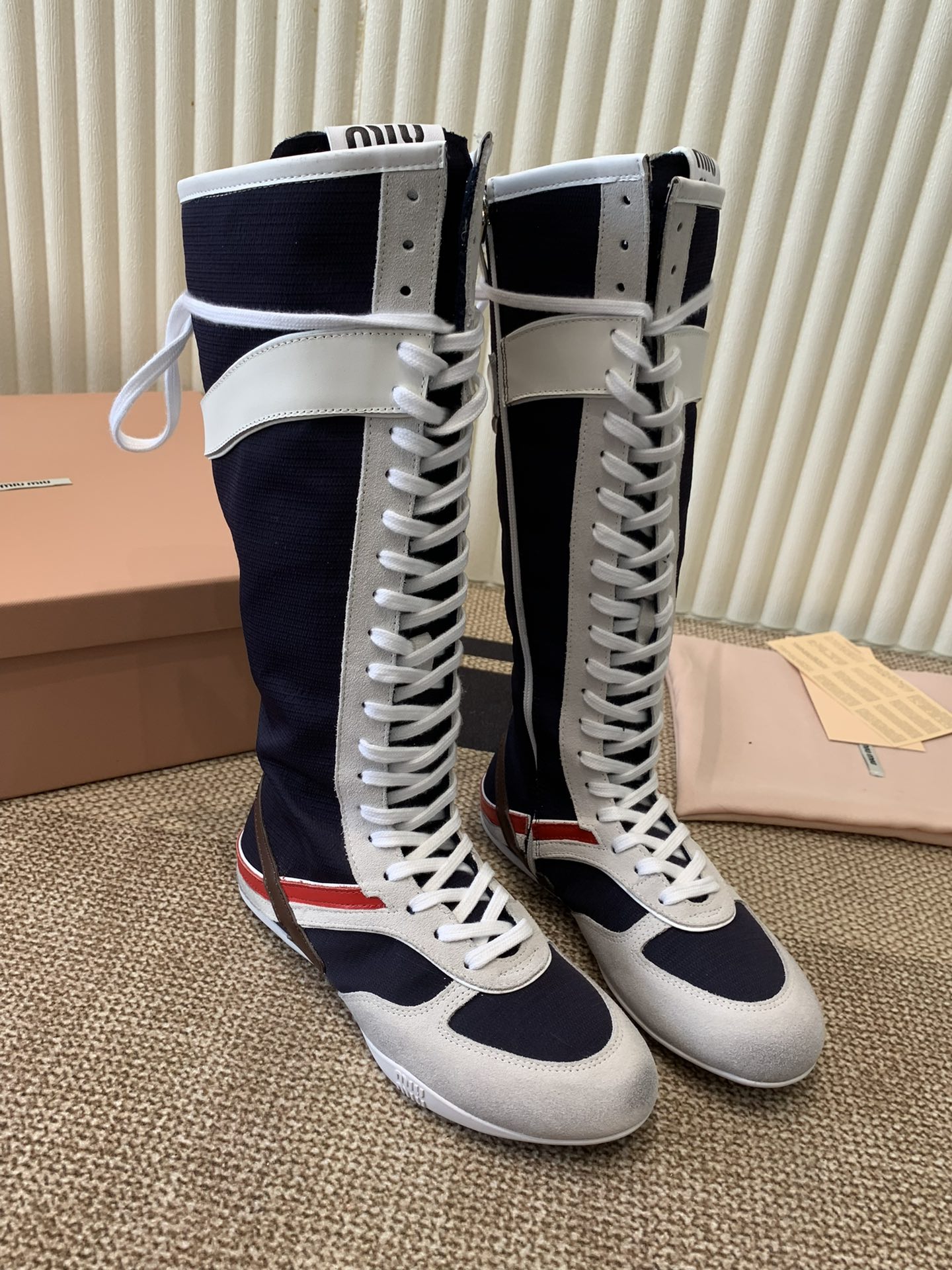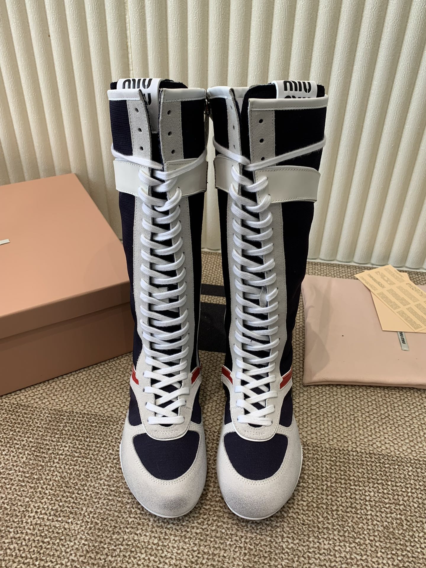 这款鞋子是AAAAA 1:1 质量 (非常棒). 使用了和原版一模一样的材料. 商标部分也保持了和缪缪/Miu Miu一样. 图片拍摄是实物鞋子拍摄, 您所收到的实物保证和我们图片一模一样.