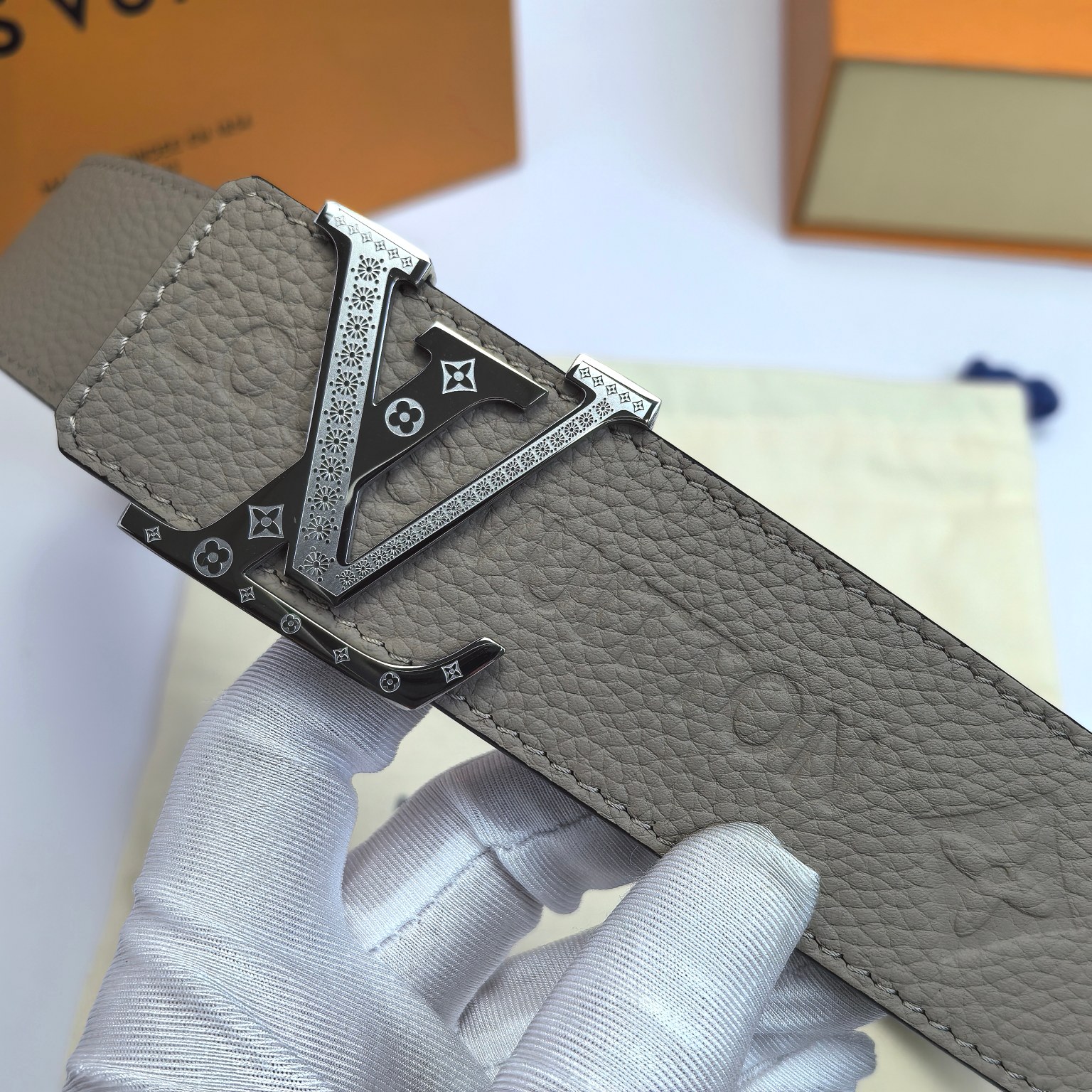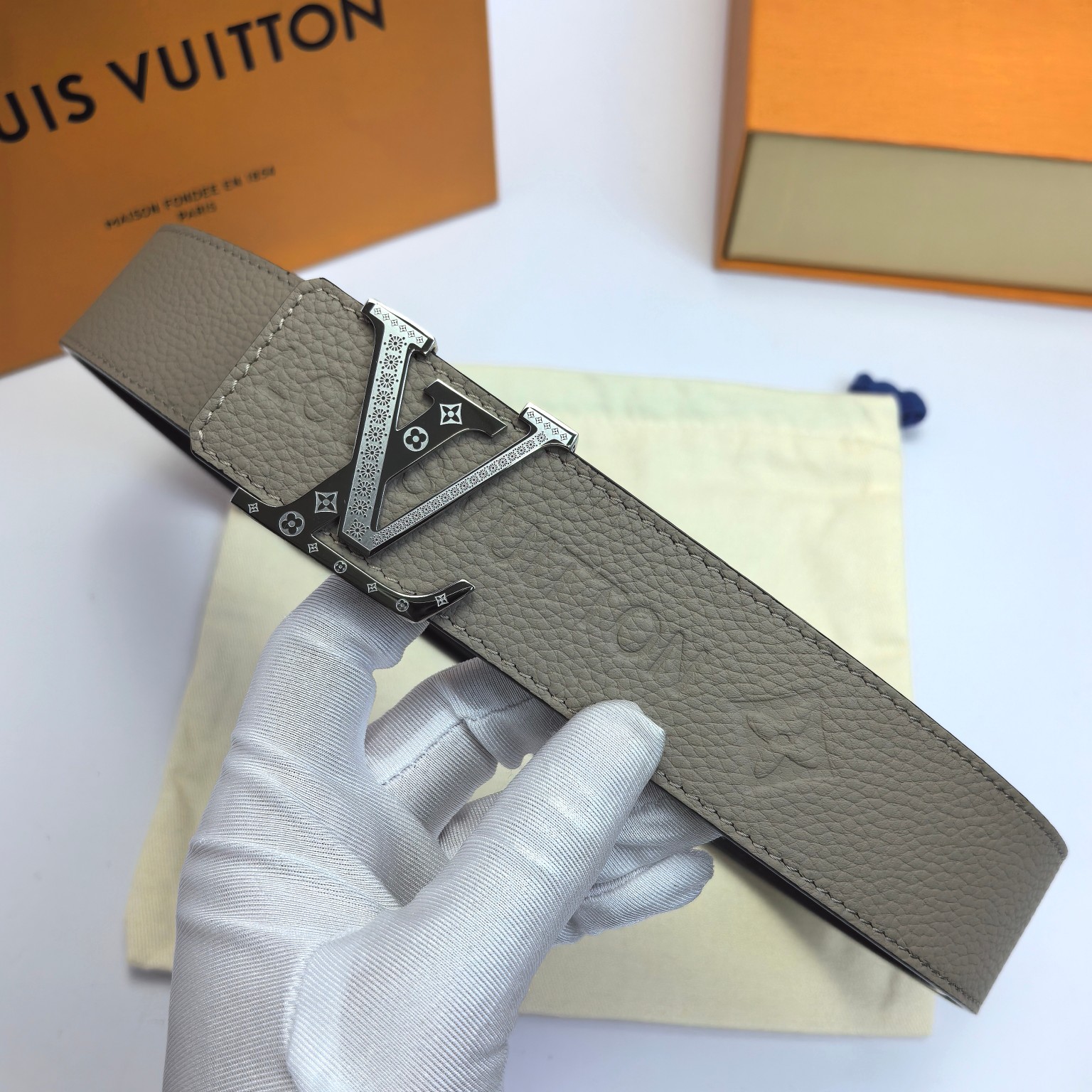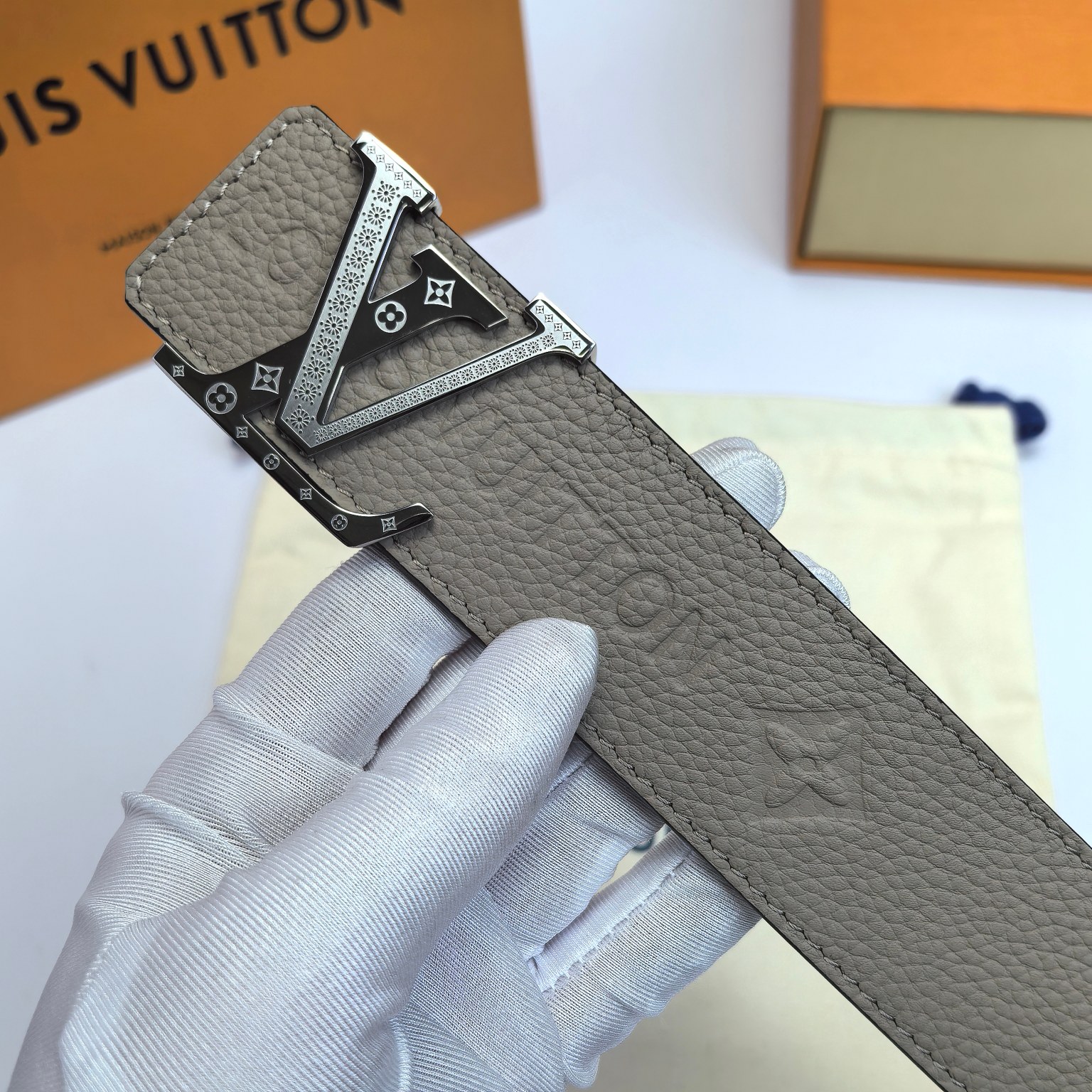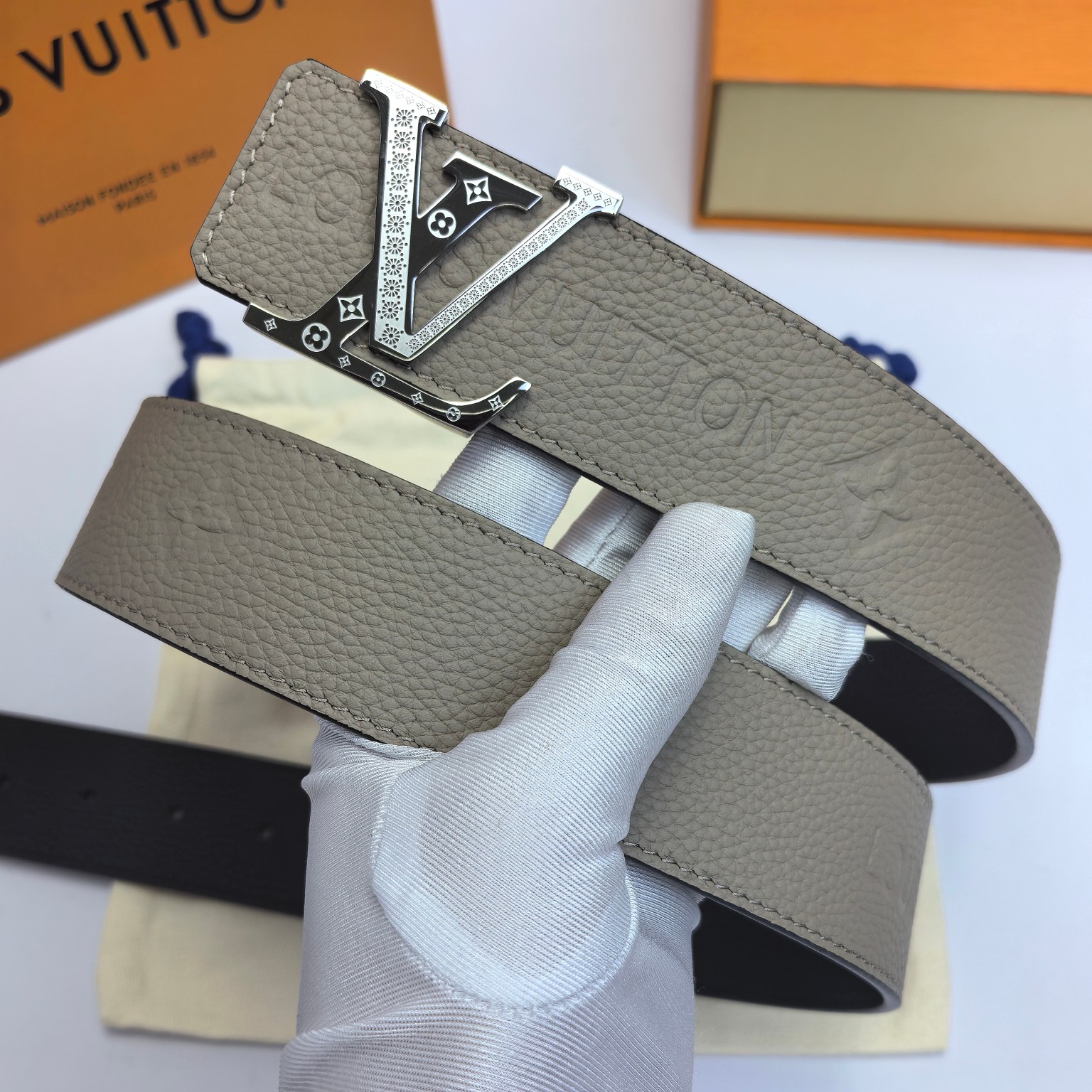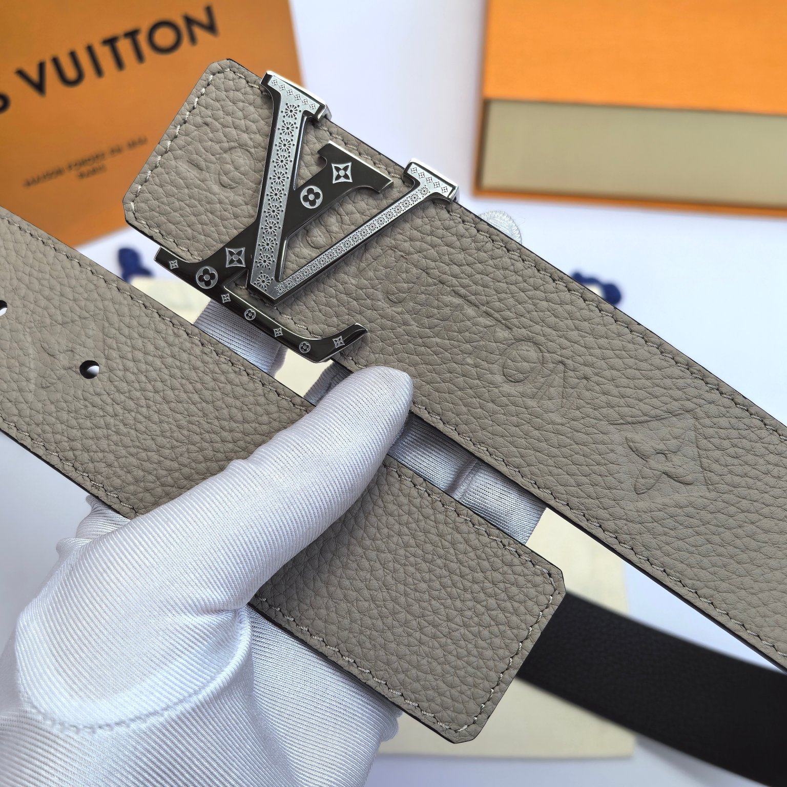 这款皮带是AAAAA 1:1 质量 (非常棒). 使用了和原版一模一样的材料. 商标部分也保持了和路易威登/Louis Vuitton一样. 图片拍摄是实物皮带拍摄, 您所收到的实物保证和我们图片一模一样.