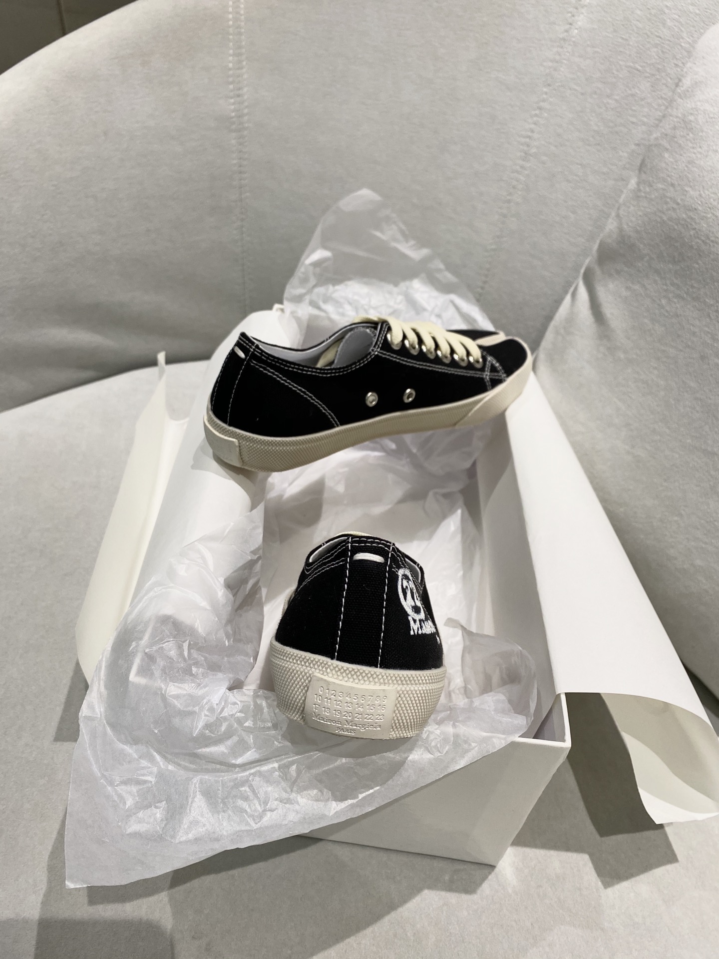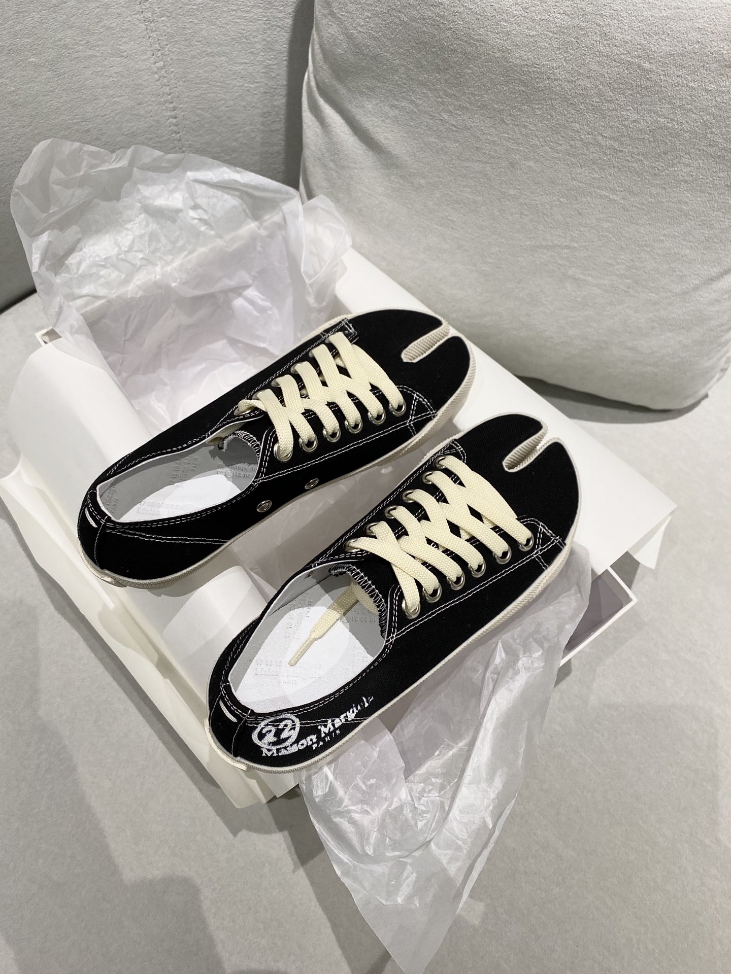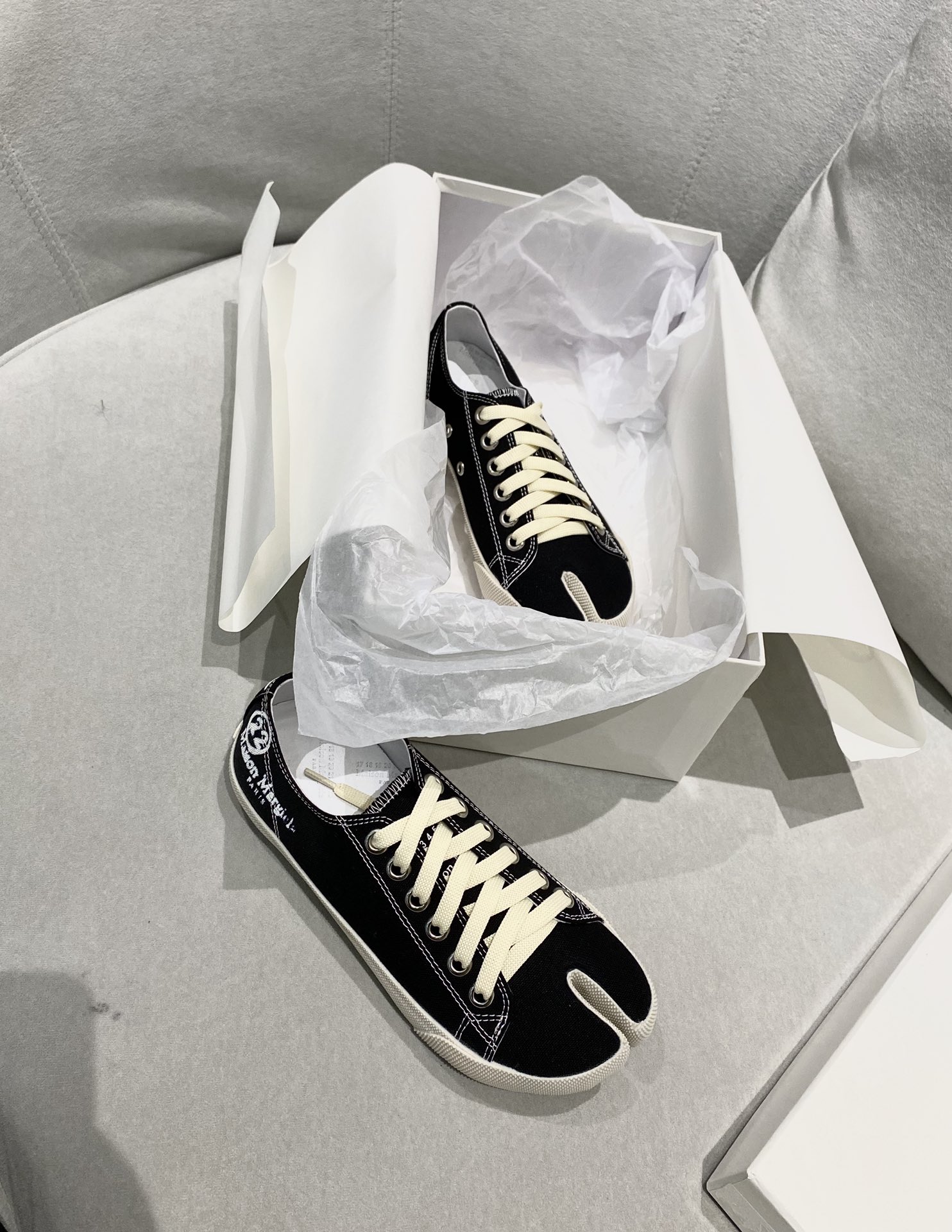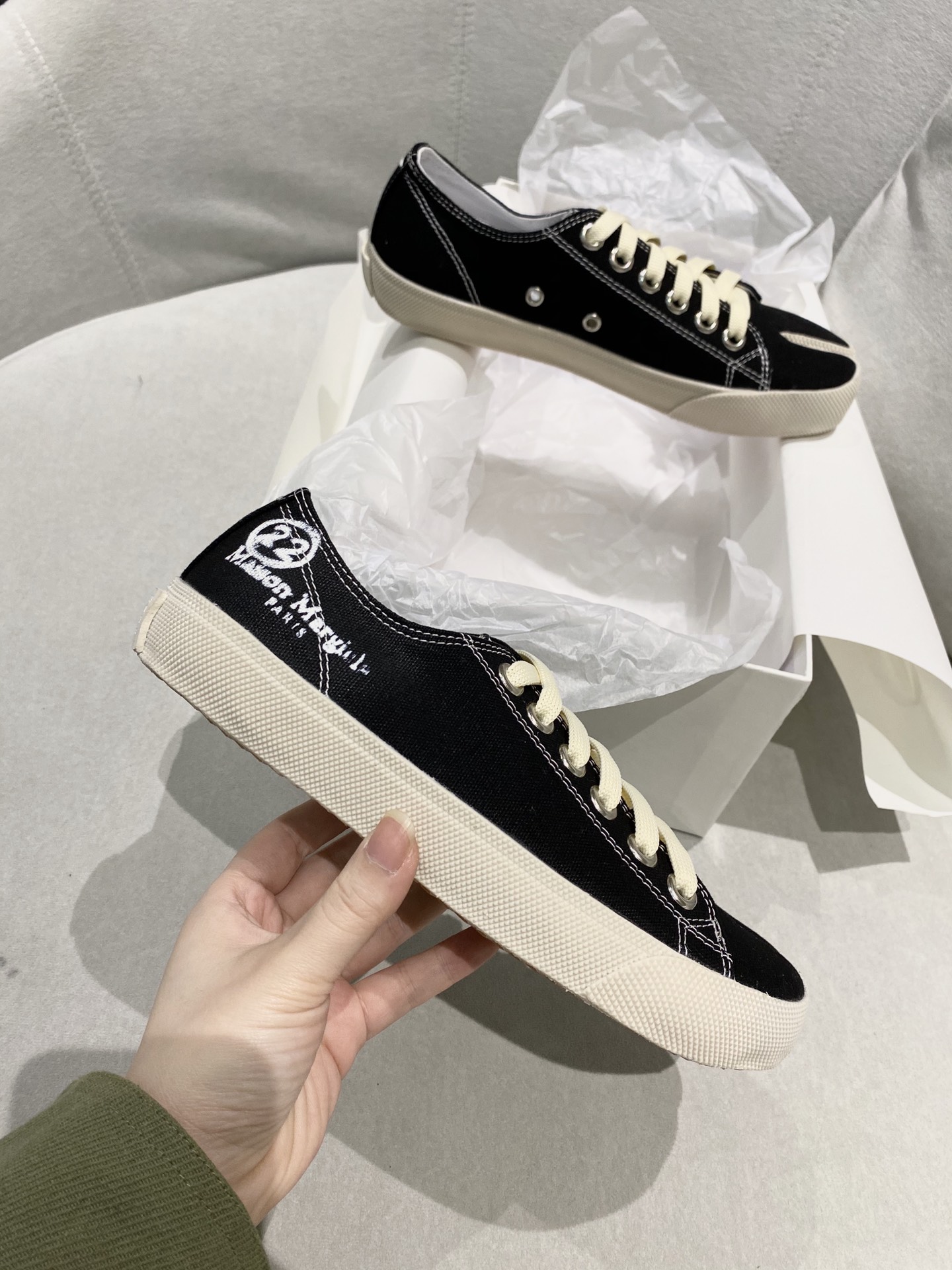 这款鞋子是AAAAA 1:1 质量 (非常棒). 使用了和原版一模一样的材料. 商标部分也保持了和Maison Margiela一样. 图片拍摄是实物鞋子拍摄, 您所收到的实物保证和我们图片一模一样.